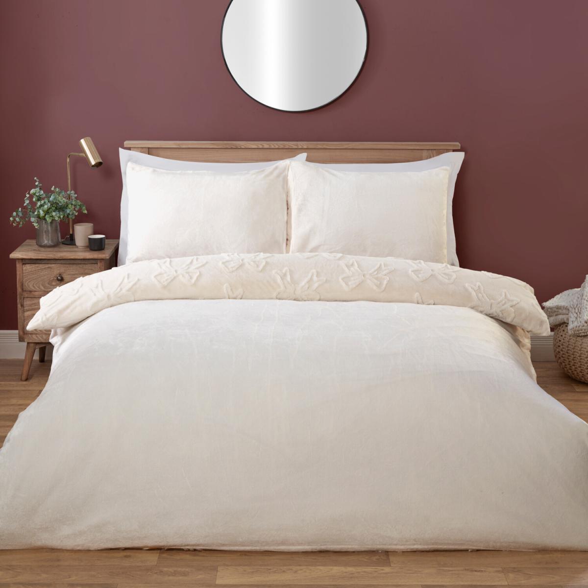 Bow Faux Fur Duvet Set - Ivory / Double