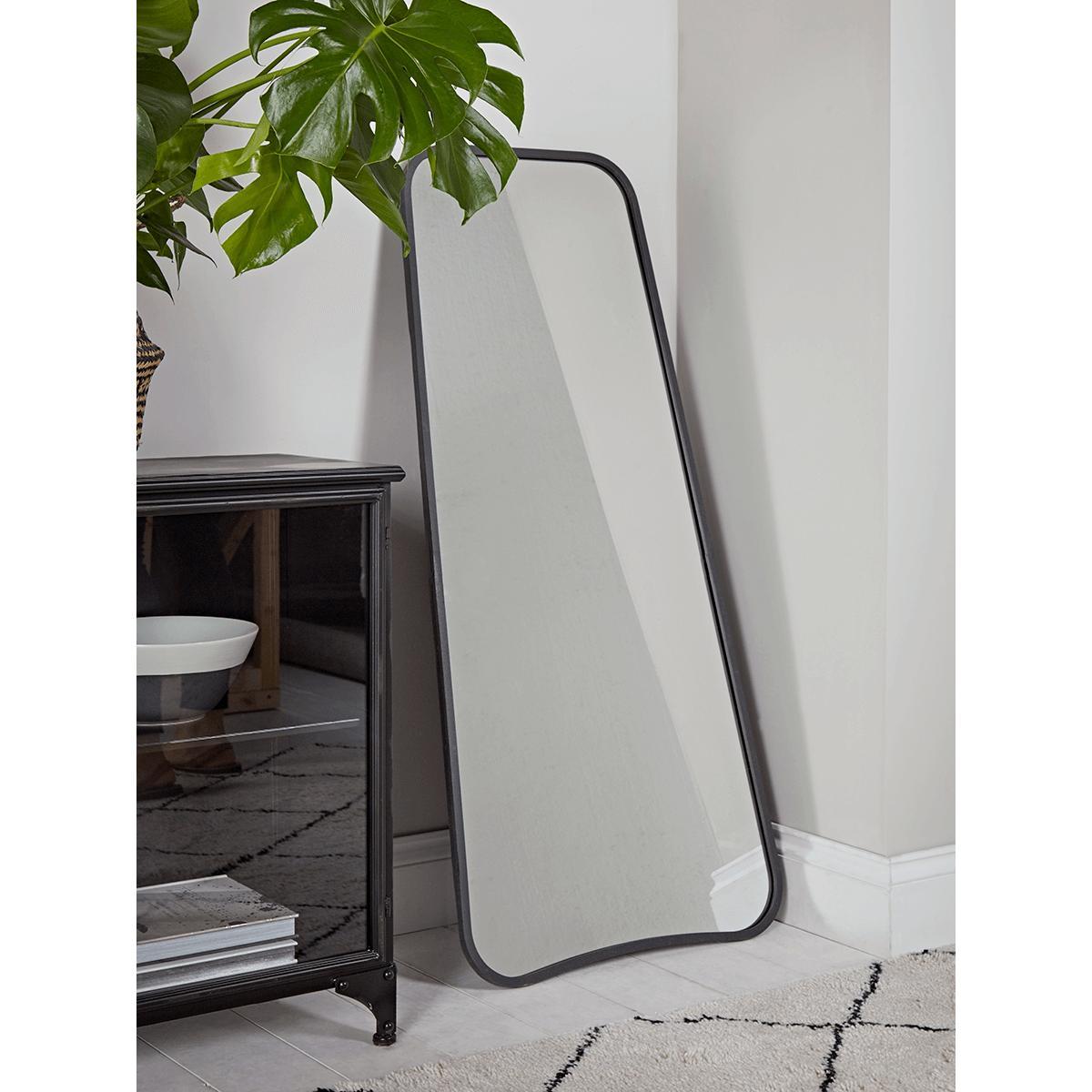 A beautifully feminine twist on traditional full length mirrors, this simple, elegant design has a statement black frame and curved bottom edge. Also available in. Brass.