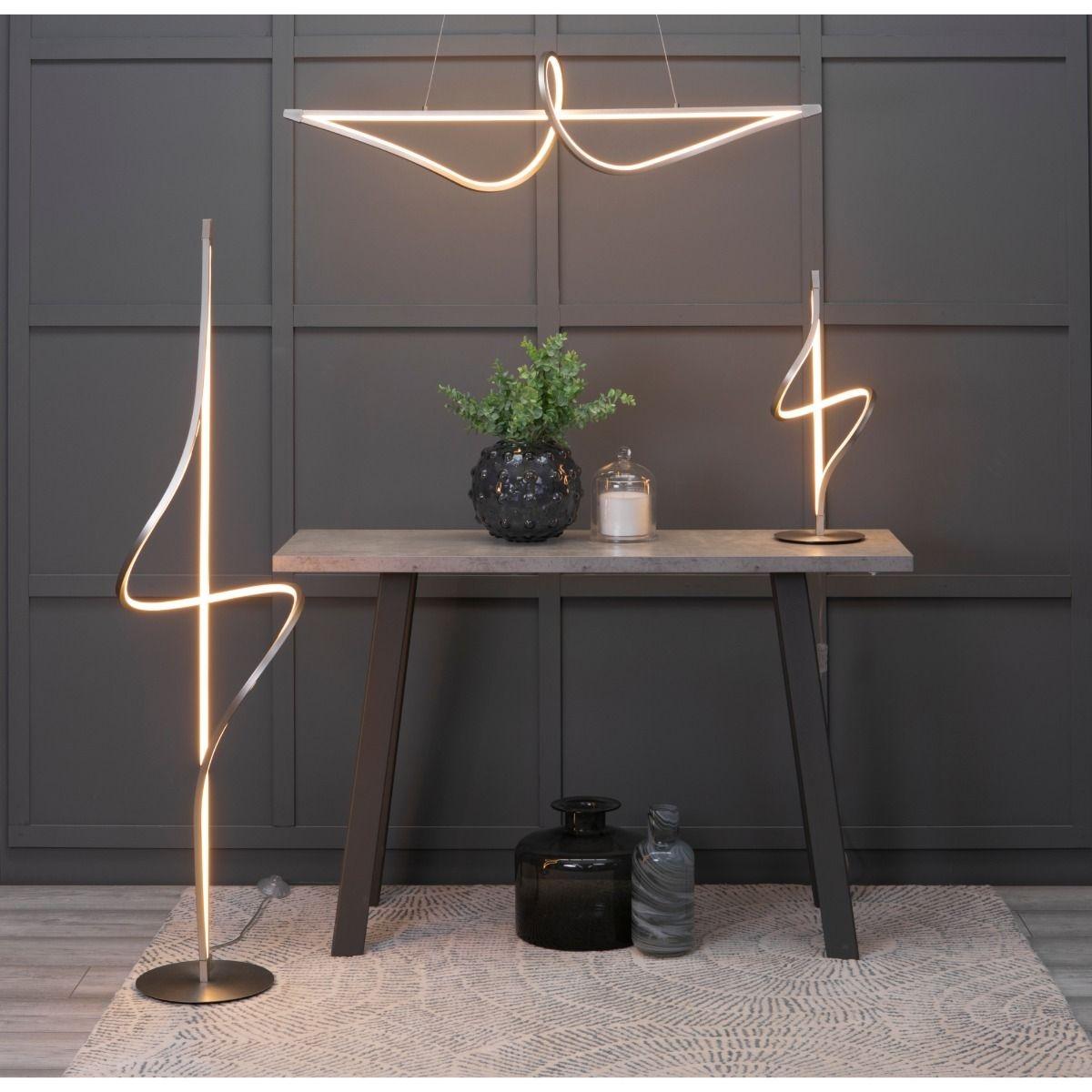 Stunning satin nickel LED warm white table lamp. Update any living space with this stunning Bower LED table lamp, with its unique twisted design. The satin nickel and warm white LED style lends itself tremendously to modern decor, enhancing contemporary features and drawing the eye in any room. This is fantastic for living rooms, dining rooms or hallways and can be purchased on its own or alongside the Bower range for a gorgeous, seamless theme throughout the room.