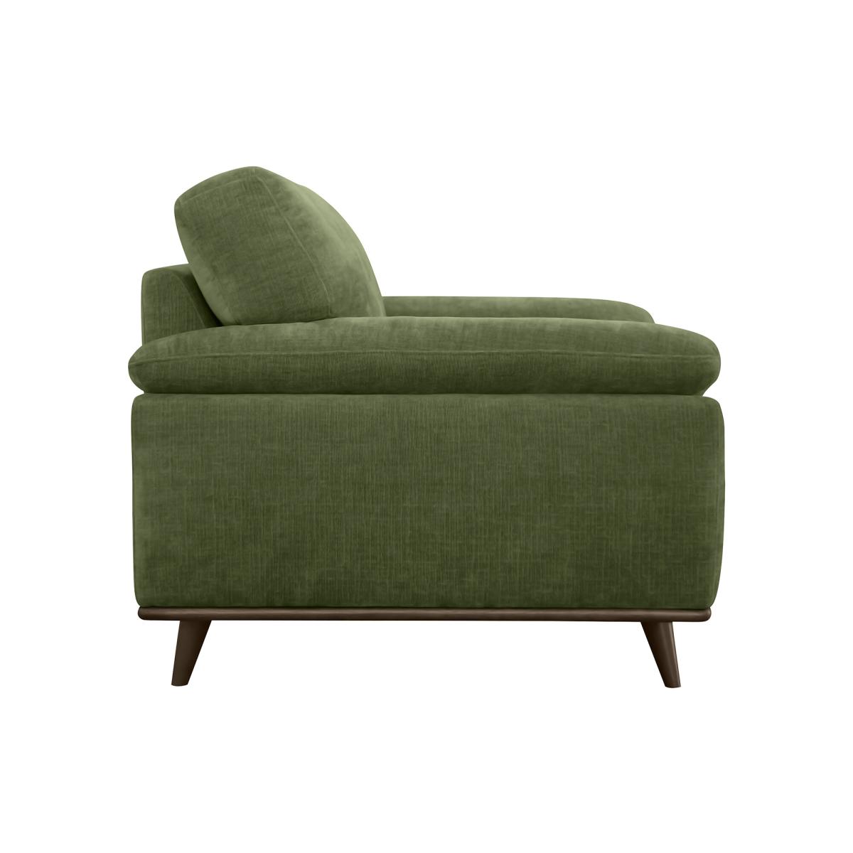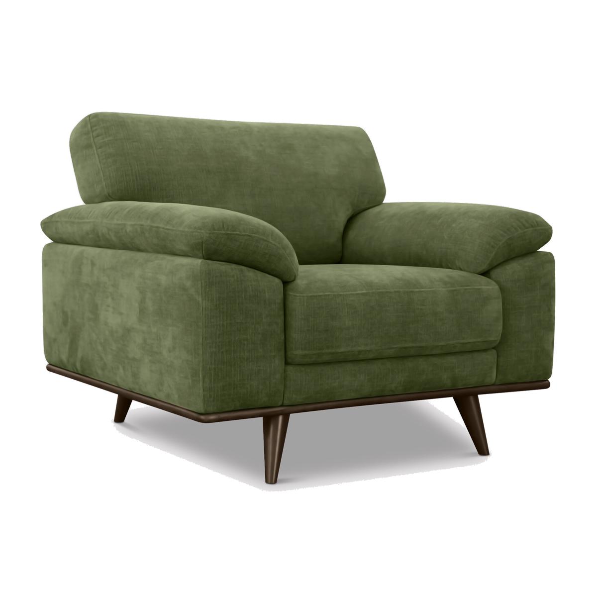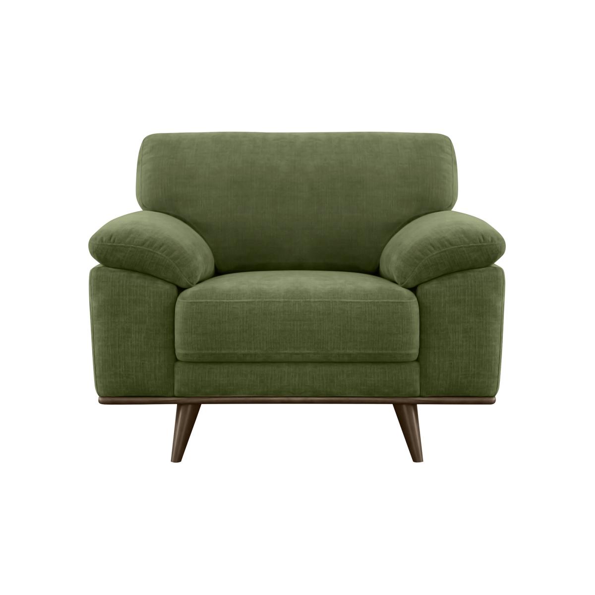 Add a touch of nature to your space with our green armchair. Its rich, inviting fabric pairs perfectly with sturdy espresso wooden legs, creating a warm and stylish accent for any room. Designed for comfort and durability, this chair is ideal for relaxing with a book or enjoying everyday moments. With its timeless colour and elegant silhouette, it effortlessly complements any decor, bringing a cosy yet sophisticated vibe to your home.