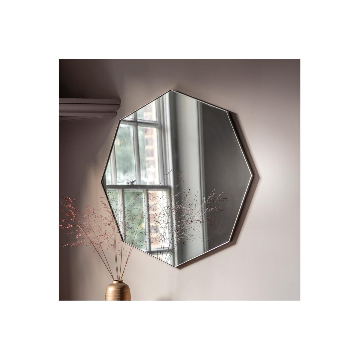 I love this octagonal mirror for its contemporary flair and clean lines, making it a versatile piece in many interiors. It works particularly well in modern or minimalist spaces, adding a geometric touch that can act as a statement piece without overpowering the room. Practical styling tips include placing it above a console or sideboard to reflect light and create an illusion of space, or using it as a focal point in an entryway to make a stylish impact. Its silver finish lends a subtle sophistication, so pairing it with muted colour palettes or metallic accents can enhance its aesthetic. Just ensure it’s positioned at eye level for the best visual effect and to maximise its reflective function.