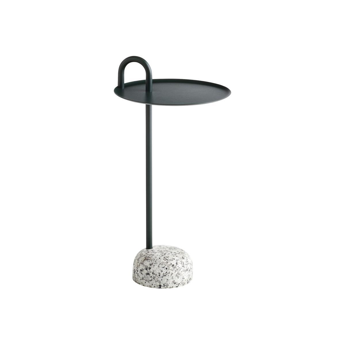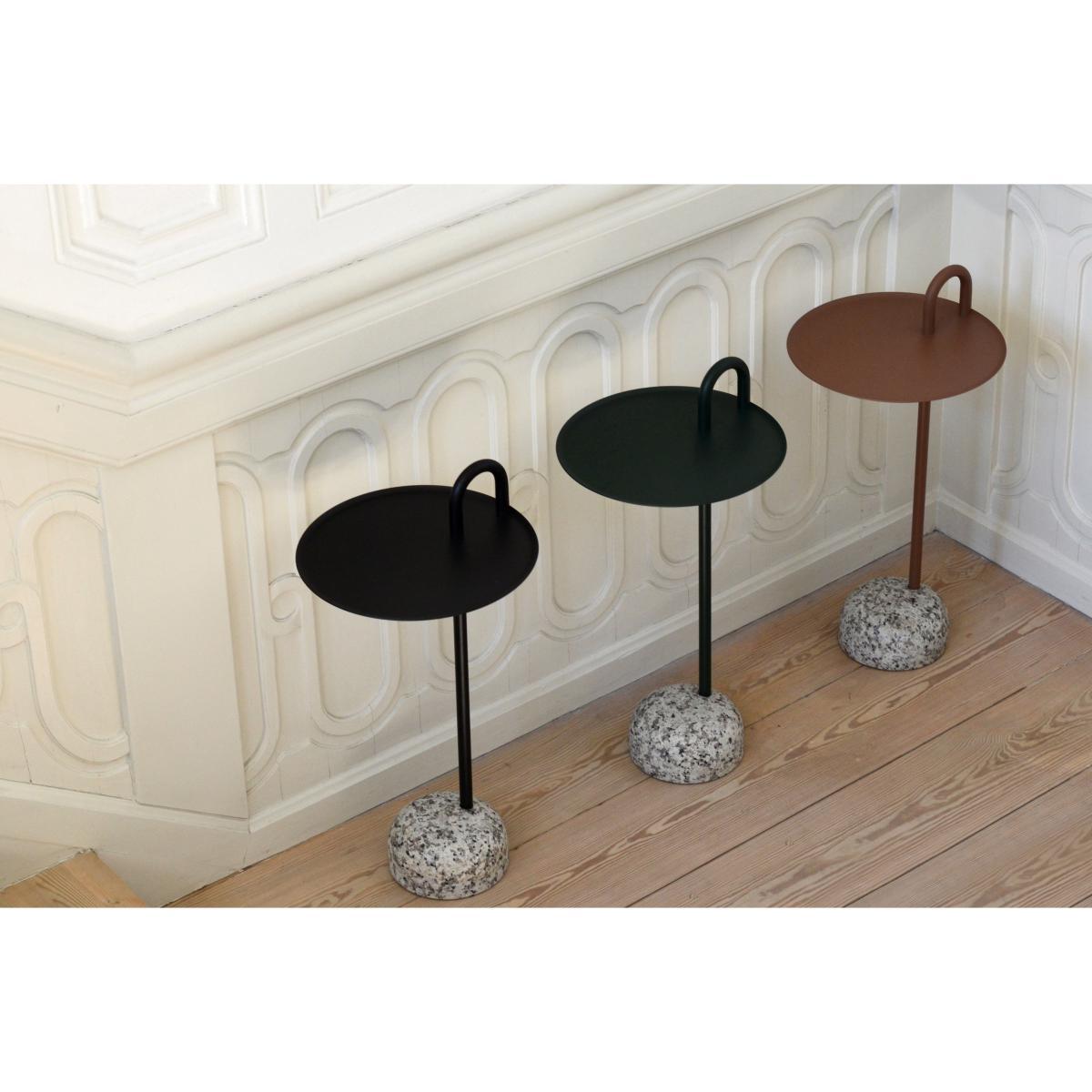 Designed by the American designer, Shane Schneck, Bowler is a compact end table, ideal for small spaces. Its charismatic outline and its combination of materials make it an impactful and original piece. With a perfect balance, the solid granite base counteracts the lightness of the lacquered metal frame. The off-centre legs which rise from the base cross the top and extend over to form a practical handle. The very solid granite base ensures perfect stability, all the while remaining sufficiently light to be moved. Comes flat, the Bowler end table is easy to assemble.