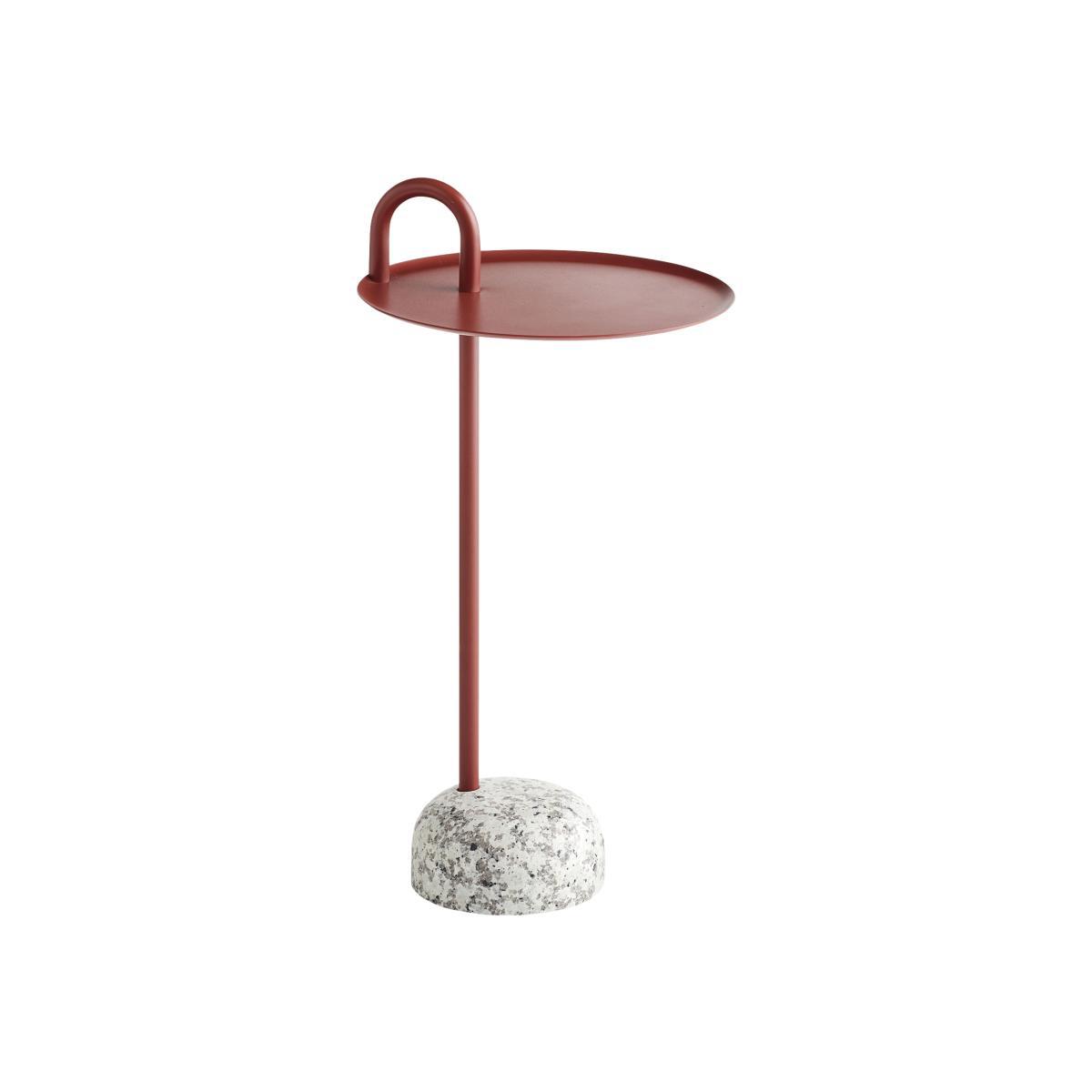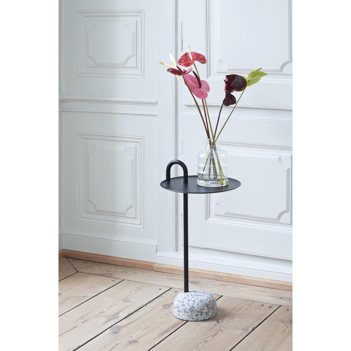 Designed by the American designer, Shane Schneck, Bowler is a compact end table, ideal for small spaces. Its charismatic outline and its combination of materials make it an impactful and original piece. With a perfect balance, the solid granite base counteracts the lightness of the lacquered metal frame. The off-centre legs which rise from the base cross the top and extend over to form a practical handle. The very solid granite base ensures perfect stability, all the while remaining sufficiently light to be moved. Comes flat, the Bowler end table is easy to assemble.
