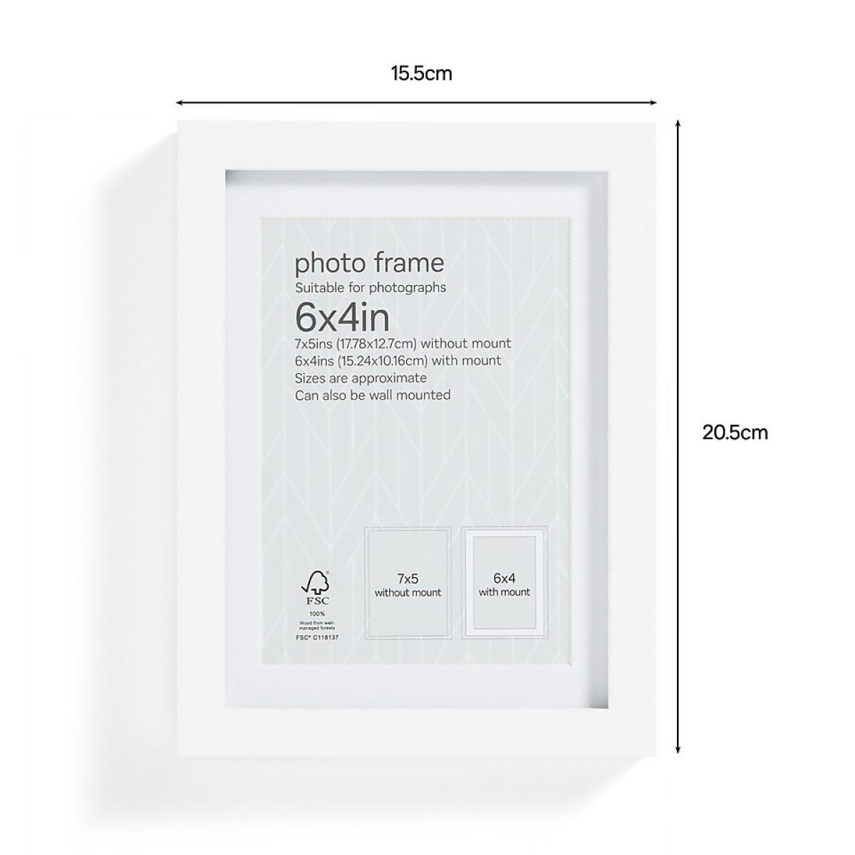 Display those treasured times. With this 6x4" box photo frame, you can beautifully showcase those happy moments, whether that's your latest adventure or a little one's birthday. The white frame will suit any room style. It's wall mountable but if DIY is not your forte, it can be freestanding and will sit pretty on a table or sideboard. Use it as a standalone frame or group multiple together to create a wall gallery bursting with memories.
