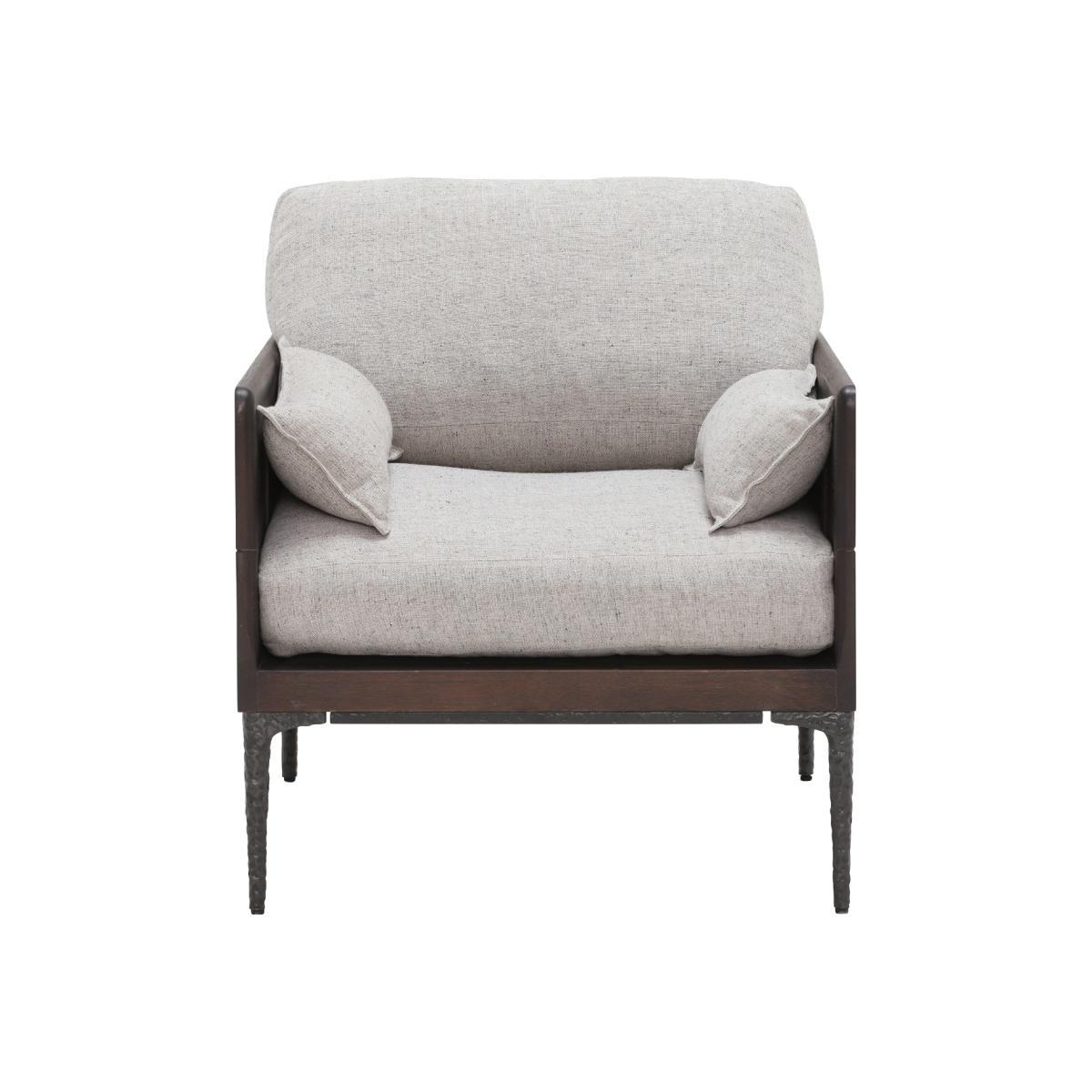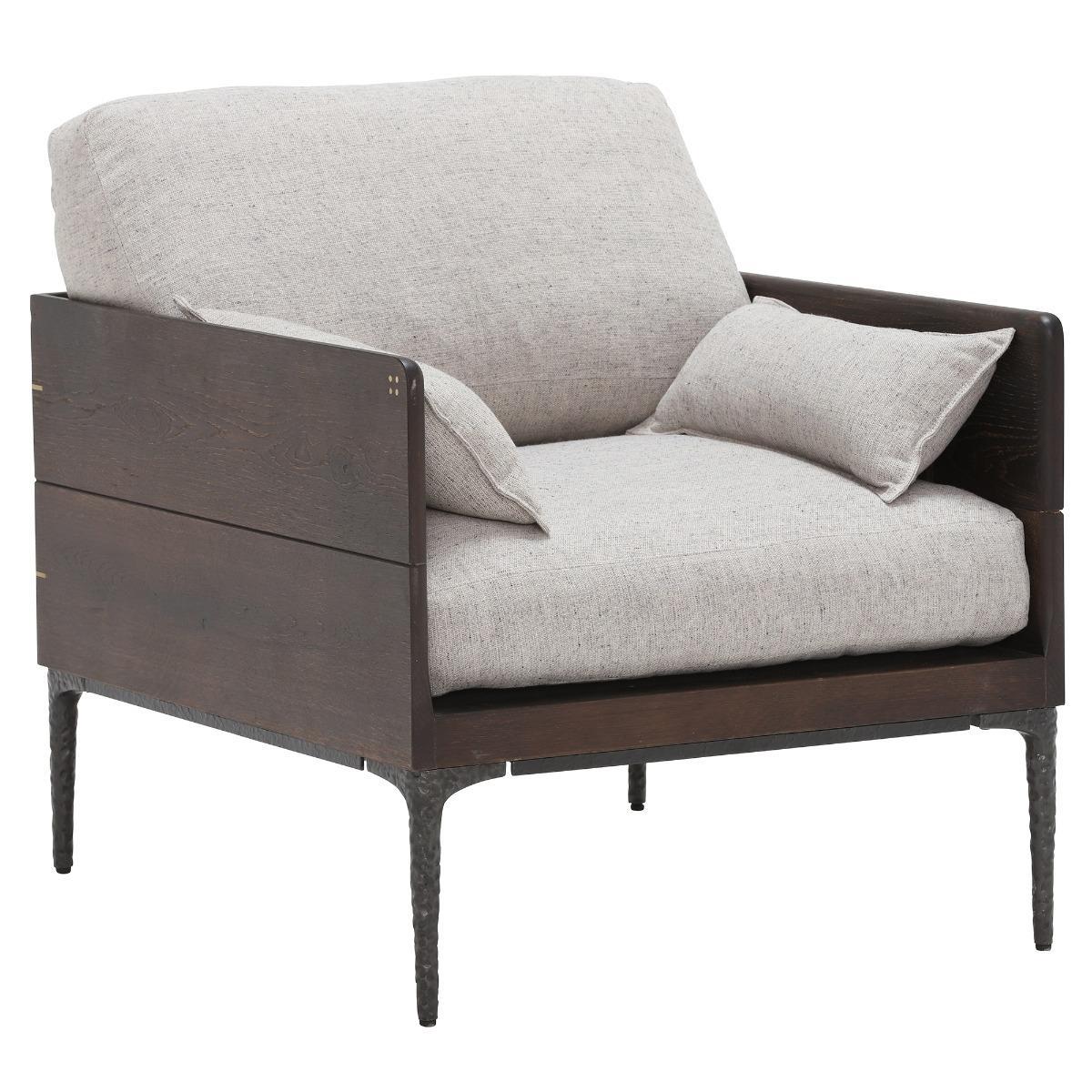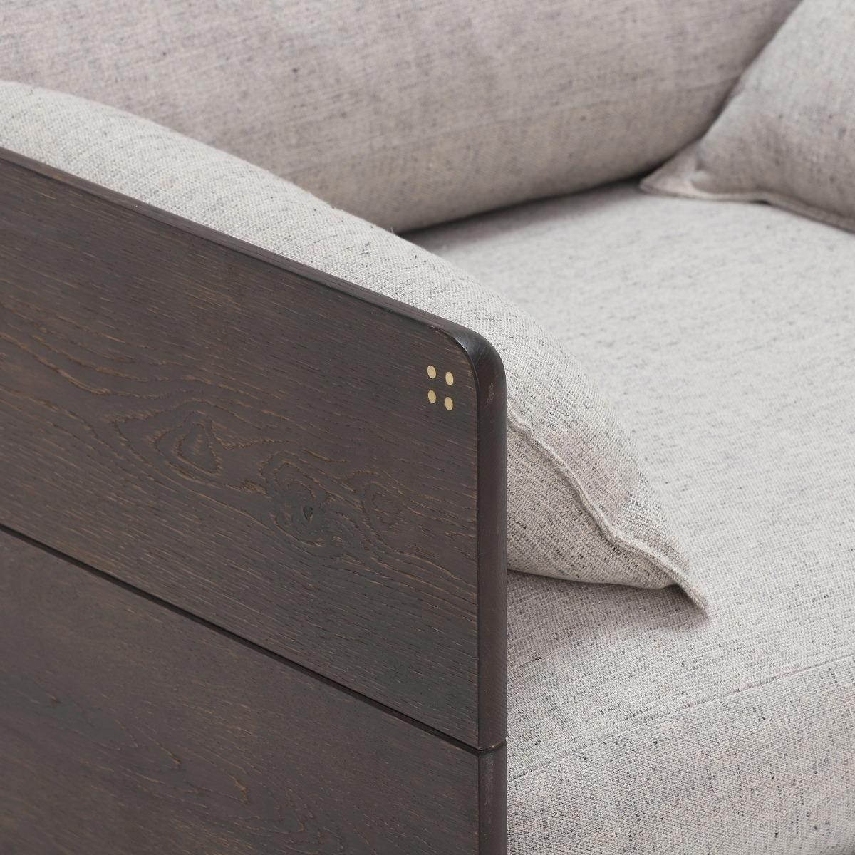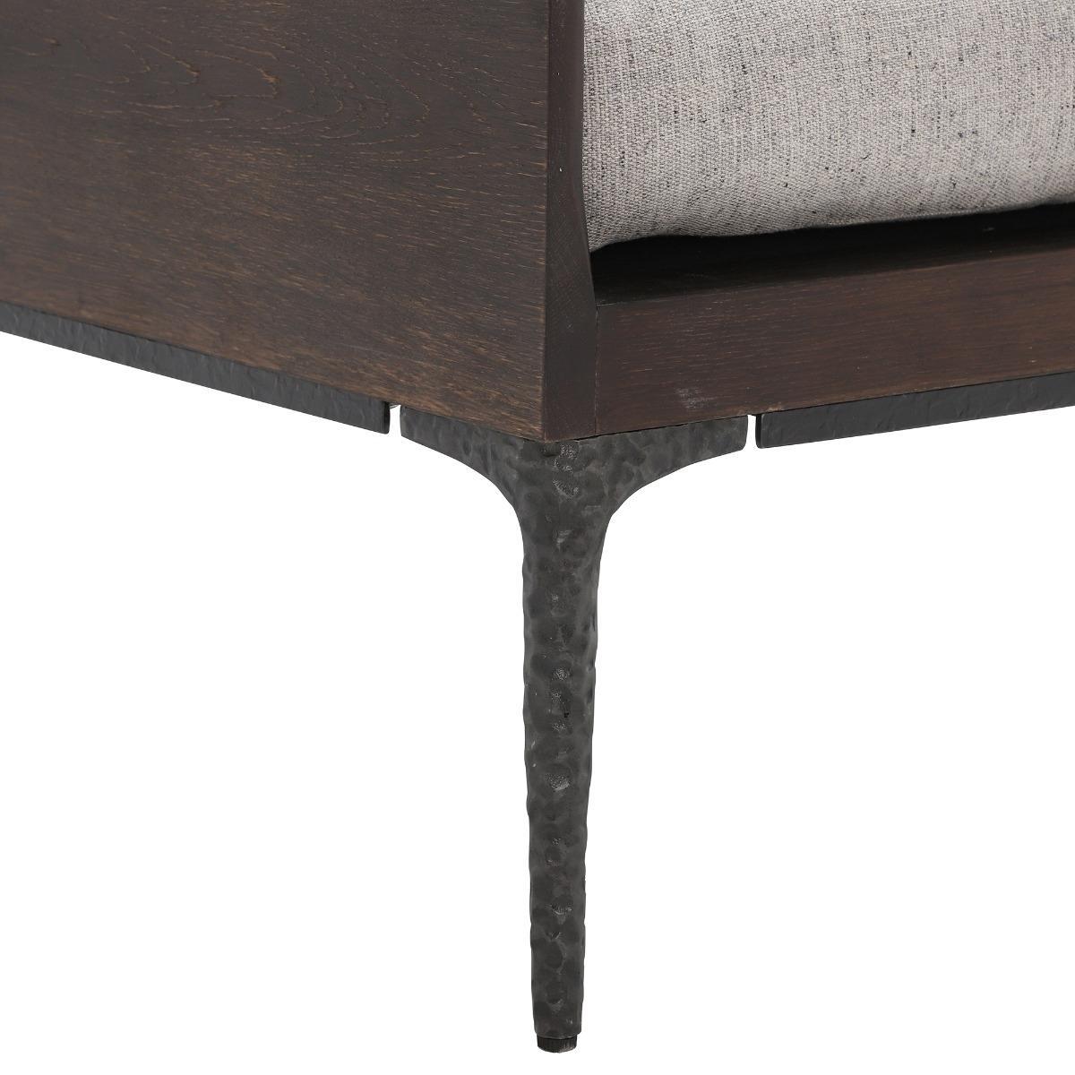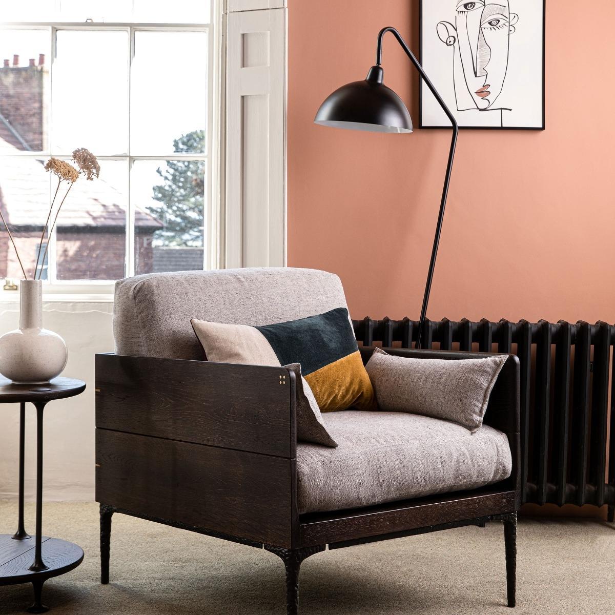 Packed with plenty of rustic charm, the Bozan Armchair is a lovely choice that combines boho with downtown urban design. Hand-crafted cast iron legs with a textured finish are a great design feature, adding to the natural feel of this piece. Comprising solid French oak boards that make up the framework for this chair are made using traditional dovetail joinery, with butterfly details, inlaid by hand. The cosy fabric cushions are deep-filled and in a neutral grey tone