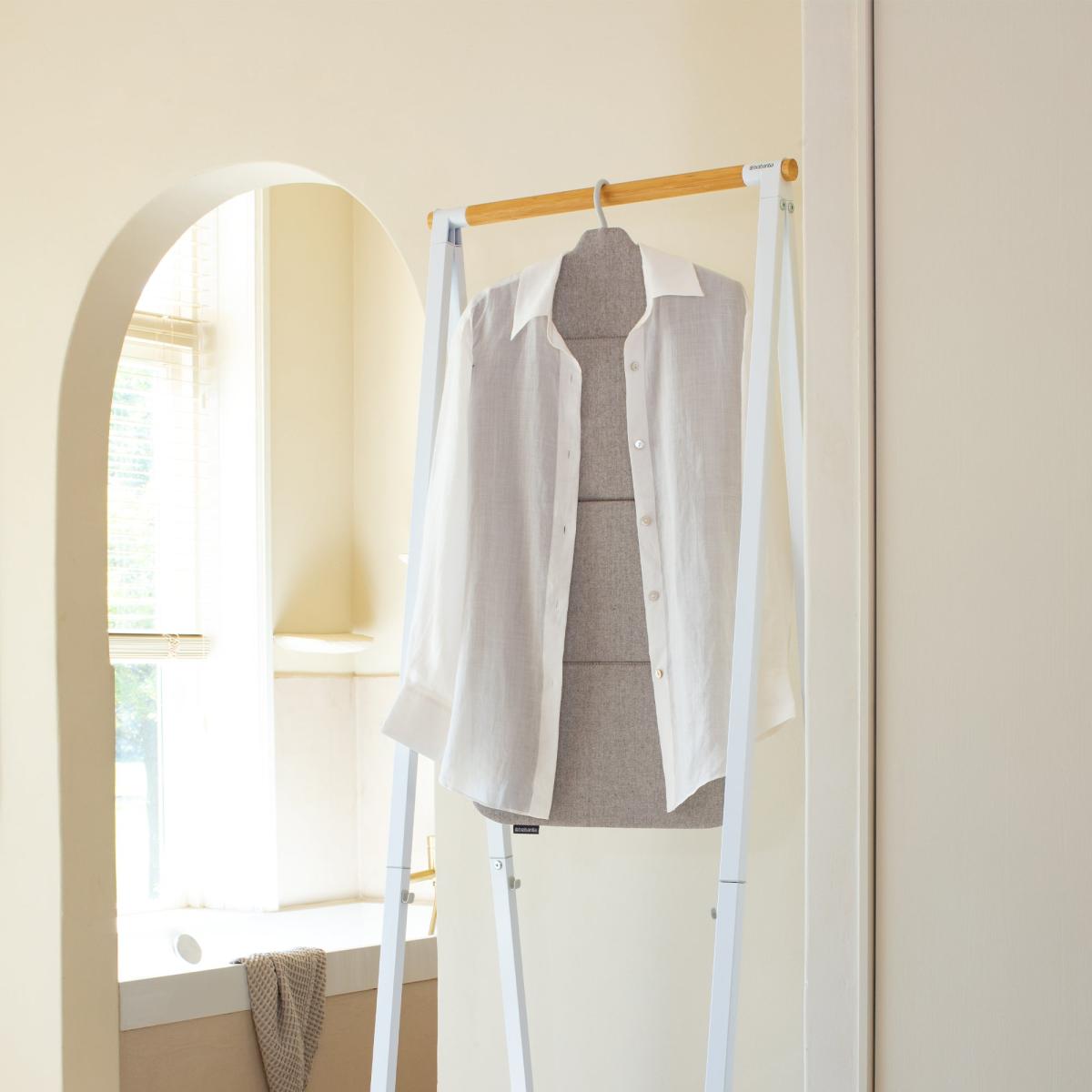 I’m a fan of this foldable steam board because it combines ironing and airing in one neat unit, perfect for smaller spaces or spare rooms. Its muted grey finish and light-wood bar slot seamlessly into Scandi-inspired, modern minimalist or industrial-leaning interiors without drawing too much attention. Styling tips: hang garments by category or colour to keep things organised and visually calm, and use slim-profile hangers so you don’t overload the bar. When not in use, simply fold it away - or add a woven basket underneath to house extra cushions or throws and make the most of the floor space.