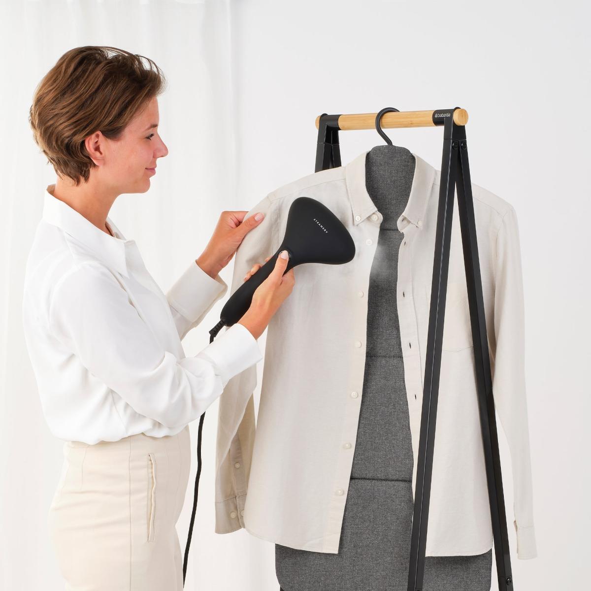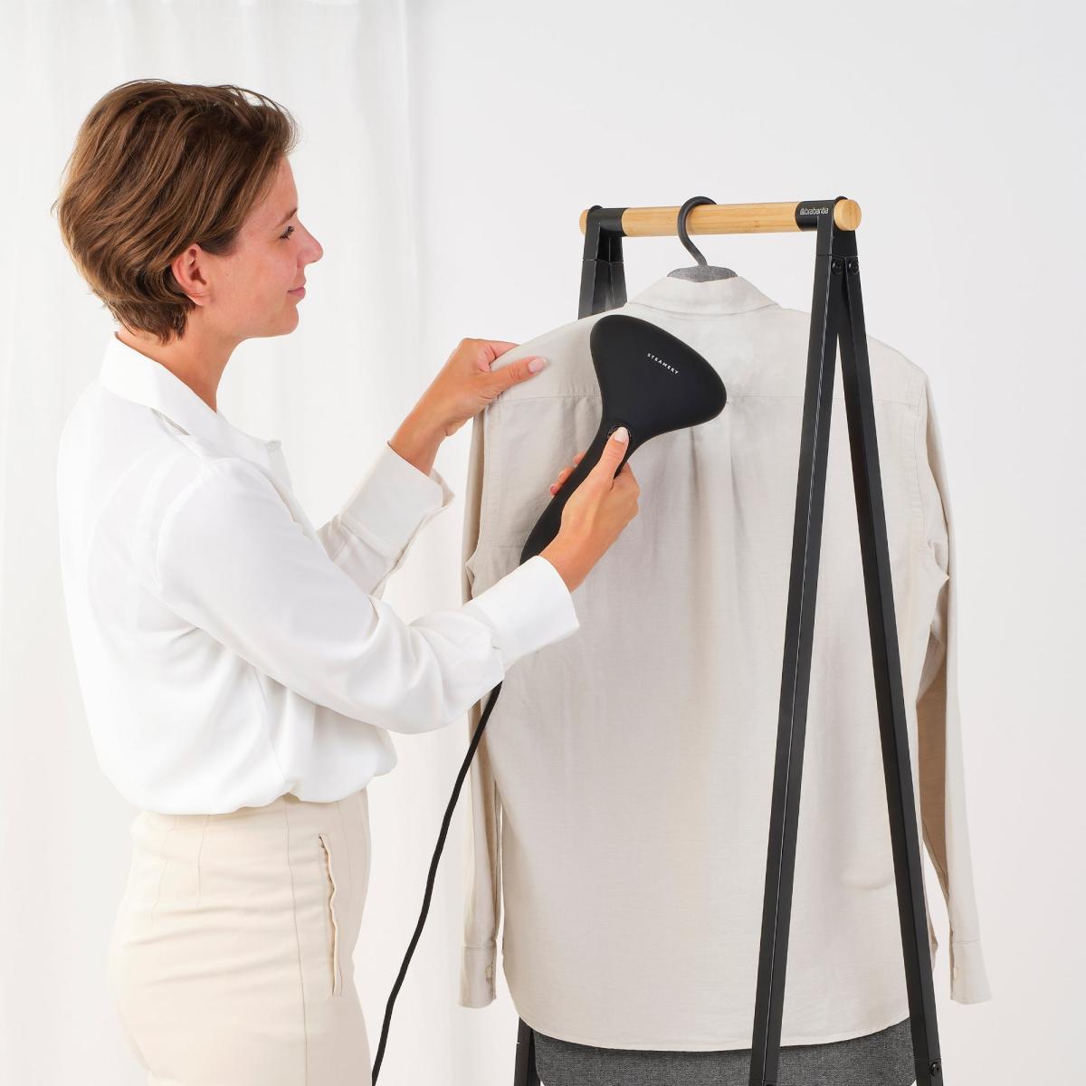 I’m a fan of the Pepper steam board for its clean, black frame and light beech bar - it slots straight into Scandi, minimalist or industrial-style spaces without fuss. The height and shape work well in utility rooms, spare bedrooms or compact city flats, and the fold-away design means it tucks out of sight when you don’t need it. Styling tip: stick to matching black slimline hangers and arrange garments by colour or weight (shirts at the front, heavier jackets behind) for a curated look. Pop a woven basket or fabric box on the lower bar for folded linens or quick-access accessories, and keep a small plant or simple print nearby to soften the utilitarian feel.