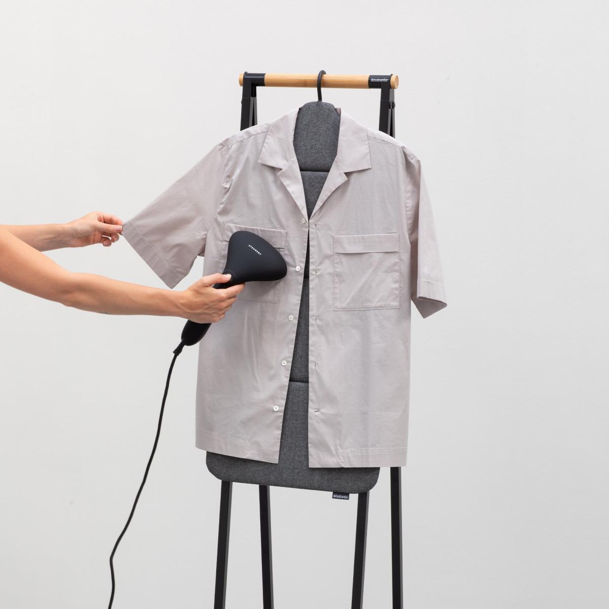 * Solid surface for easy steaming* 360° rotating hook* Double-sided use* Compact storage* 2 year guarantee Streamline your steaming routine with the Brabantia foldable steam board. The solid surface ensures faster and more effective steaming, and the 360° rotating hook adds versatility. The smart shoulder shape simplifies steaming collars and shoulders, and double-sided use allows you to steam both front and back separately. After use, fold it away for compact storage. Experience problem-free usage with a 2-year guarantee and service.