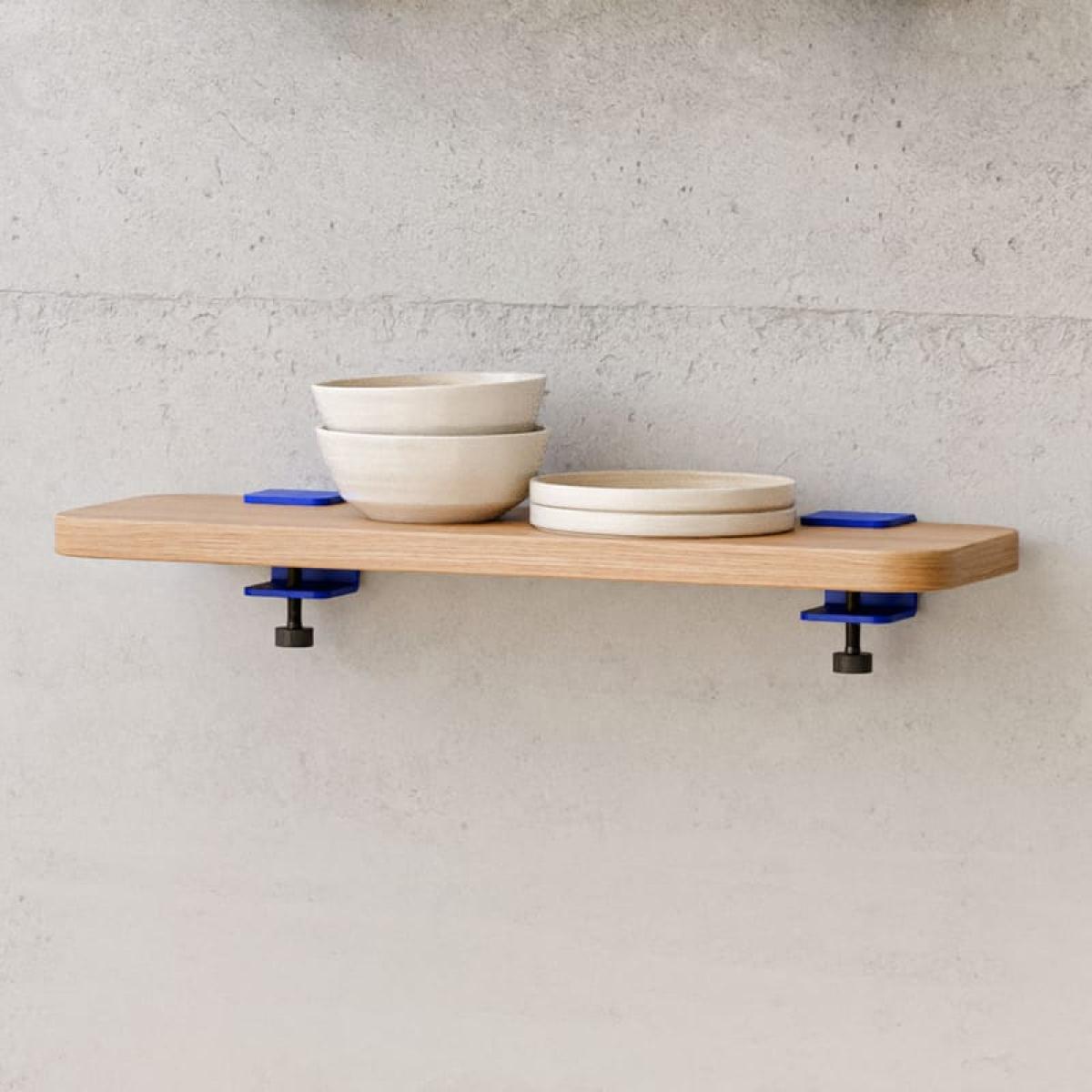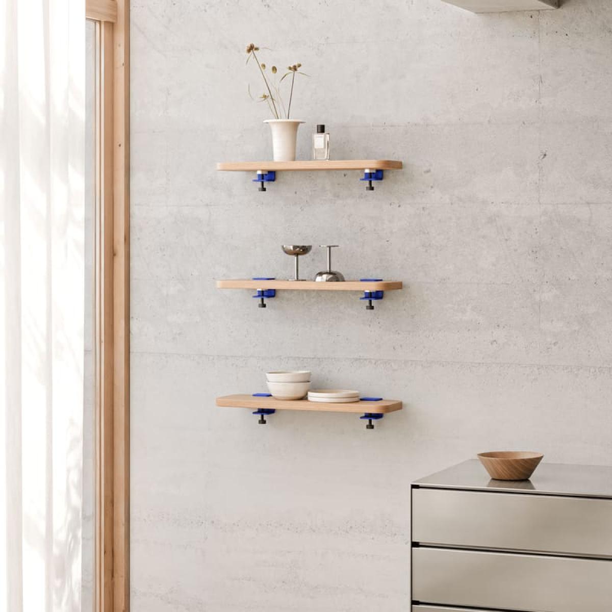 I love the Klein Blue wall fitting for its bold colour and industrial vibe, making it a standout piece in any shelving setup. It works particularly well in modern, minimalist interiors or spaces that mix raw materials like concrete and metal. Practical styling tips include pairing it with open shelving or combining it with colourful or monochrome accessories to highlight its striking hue. Its functional vice and sturdy metal construction also make it ideal for creating customised, flexible shelving solutions in the kitchen, home office, or even a creative studio. Keep the surrounding décor simple to let the bracket do the talking, and consider stacking objects with varying heights for visual interest.
