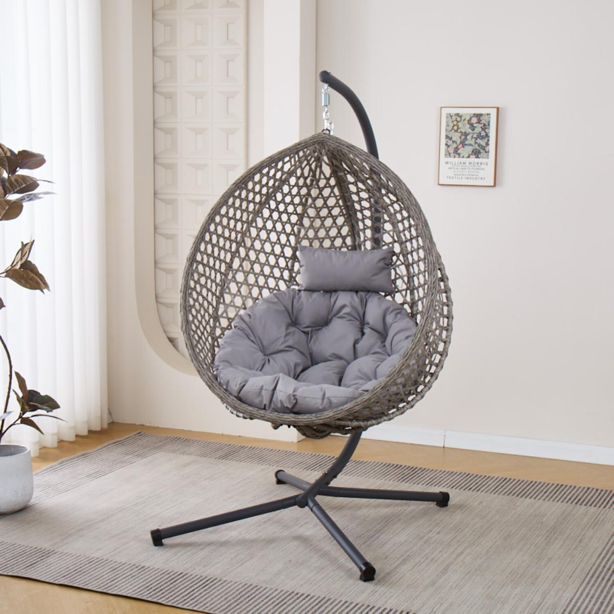 Unwind in style with the Bradshaw Hanging Swing Chair, the ultimate addition to your outdoor space. Perfect for relaxing on a warm, sunny day, this garden swing invites you to bask in comfort and luxury. Imagine yourself gently swaying in the breeze, immersed in your favourite book, or simply enjoying the tranquillity of your garden. The Bradshaw Swing Chair boasts a solid, powder-coated metal frame, ensuring robust stability and long-lasting durability. Its rattan effect hanging basket adds a touch of elegance and charm, blending seamlessly with any outdoor decor. The soft, fibre-filled seat and headrest cushions are water-resistant, providing exceptional comfort and resilience against the elements. Designed with your relaxation in mind, the Bradshaw features a spring support system that delivers a smooth and soothing rocking motion. Tested to a 150kg user weight limit, this swing chair guarantees strength and safety for users of all sizes. Plus, our dedicated two-man delivery team will deliver and assemble your Bradshaw Swing Chair, ensuring it's ready for use without any hassle. Elevate your outdoor living experience with the Bradshaw Hanging Swing Chair. Whether you're seeking a peaceful solo retreat or a cosy spot for intimate gatherings, this swing chair promises hours of luxurious comfort and enjoyment. Transform your garden into a haven of relaxation and style with the Bradshaw Hanging Swing Chair and create lasting memories in your outdoor sanctuary. Invest in your al fresco lifestyle today with the Bradshaw Hanging Swing Chair and experience outdoor leisure like never before.