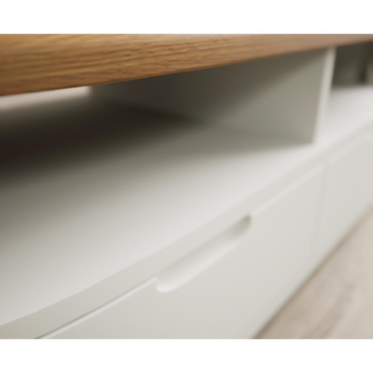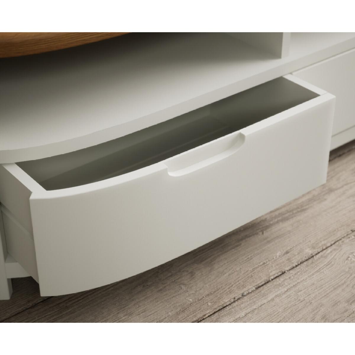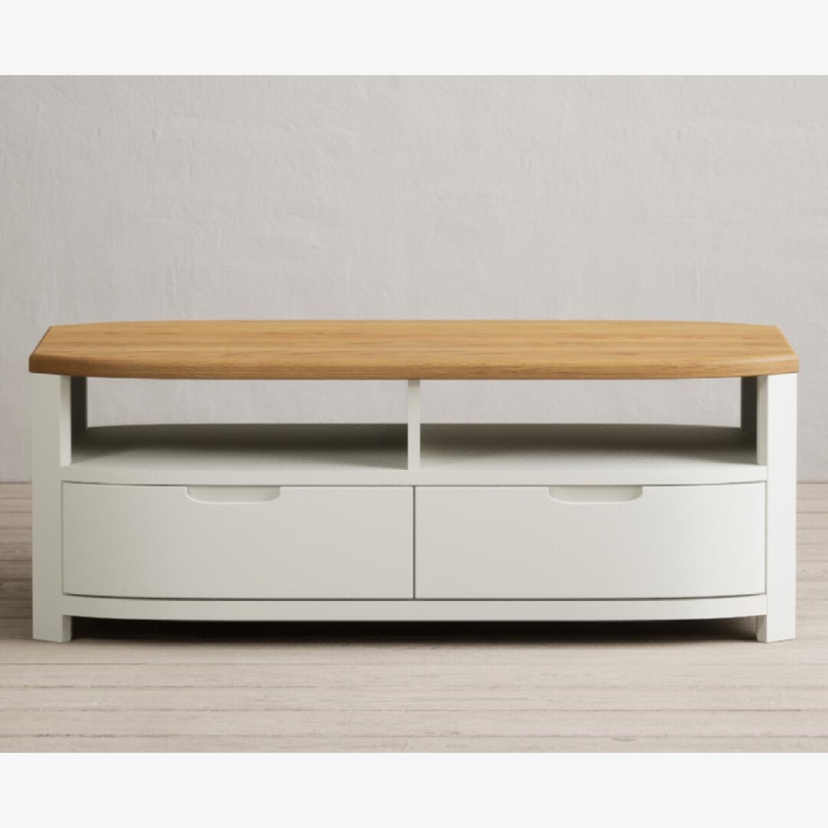 The Bradwell Oak and Chalk White Painted 4 Drawer Coffee Table is crafted from solid hardwood with a chalk white painted finish and rustic solid oak top.