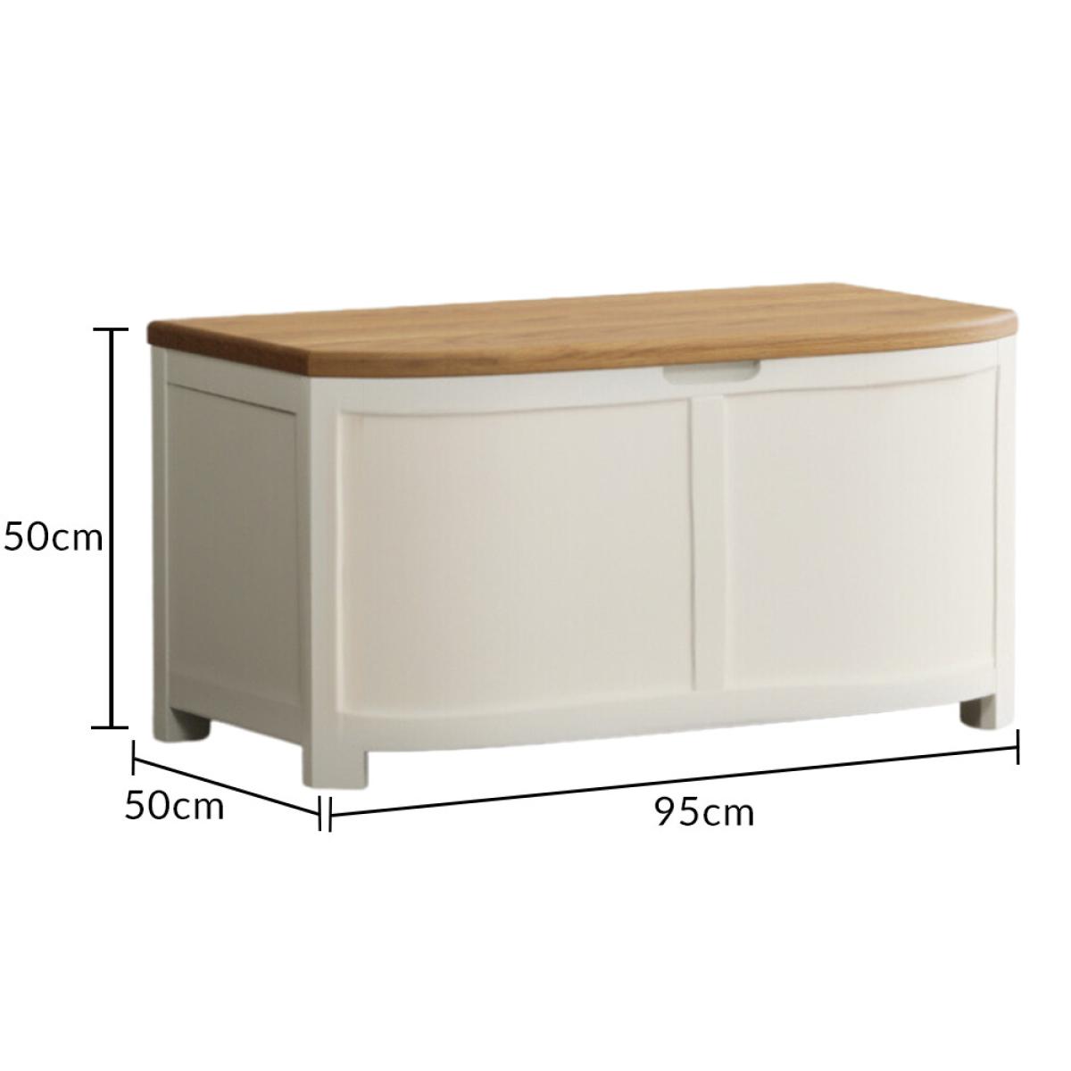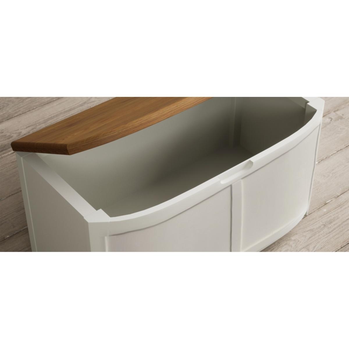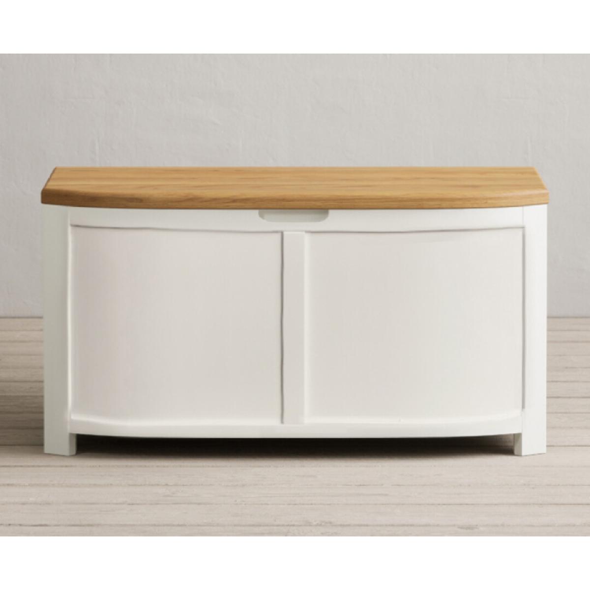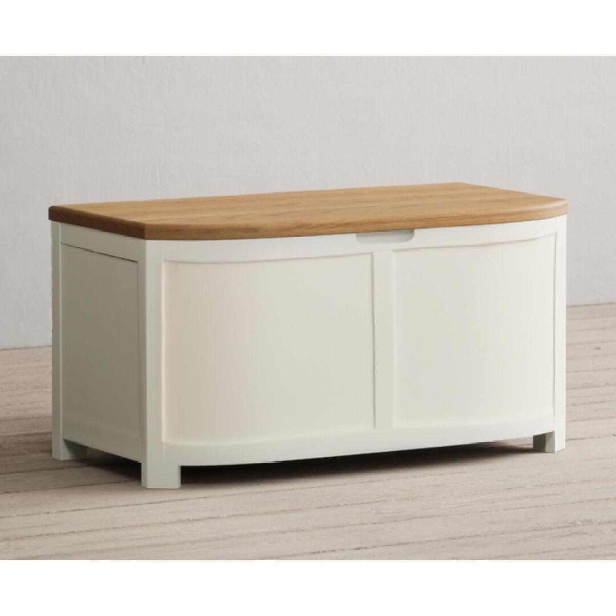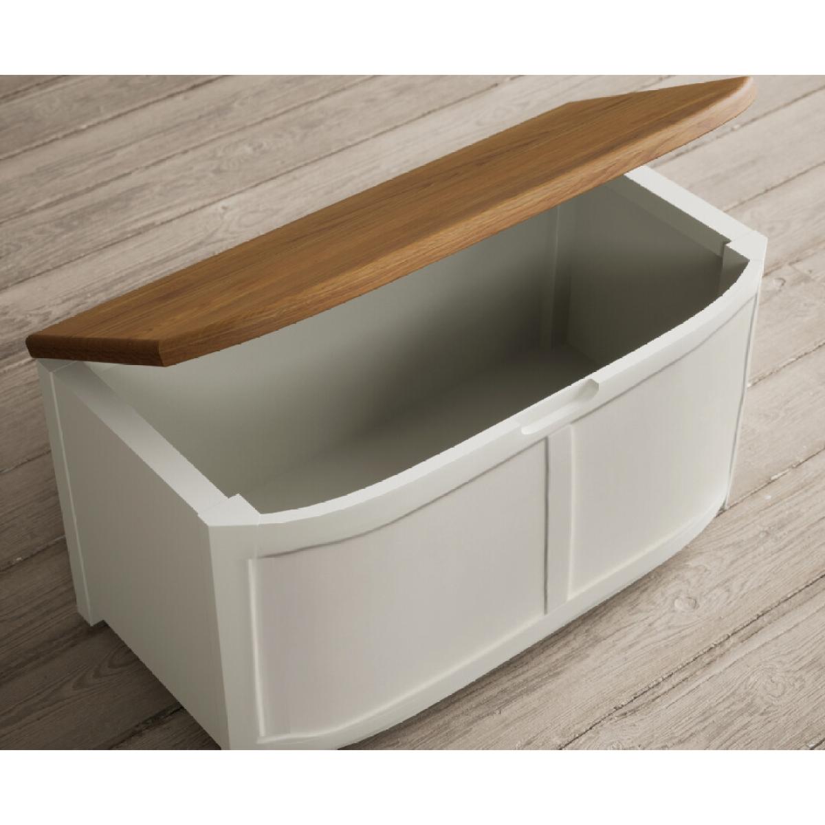 The Bradwell Oak and Signal White Painted Blanket Box is crafted from solid hardwood with a white painted finish and topped with rustic 100% solid oak.