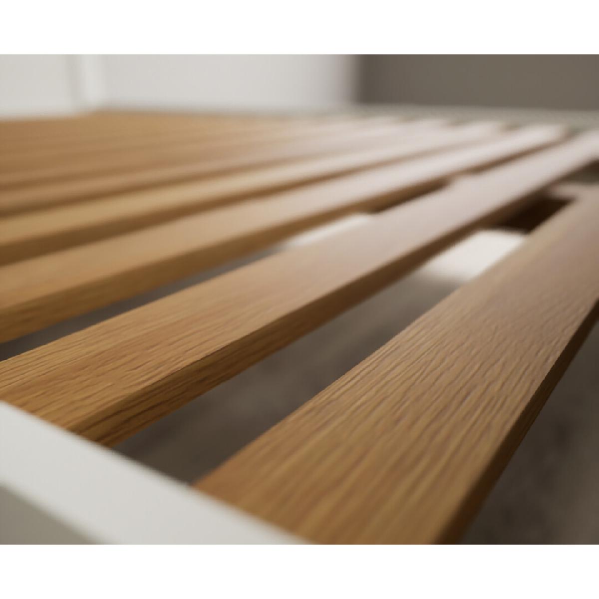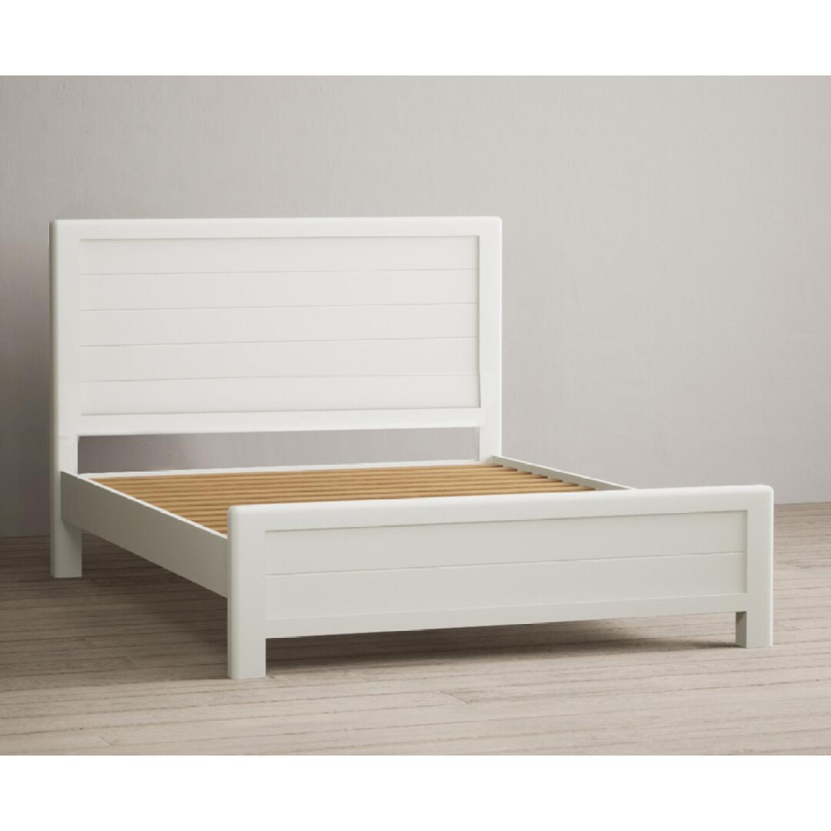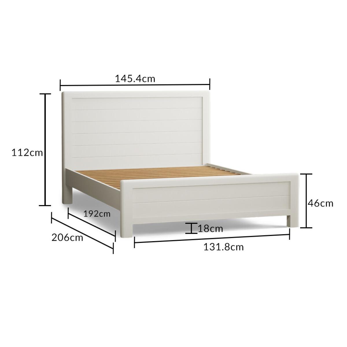 The Bradwell Oak and Signal White Painted Double Bed is crafted from solid hardwood with a white painted finish and features solid wood slats.