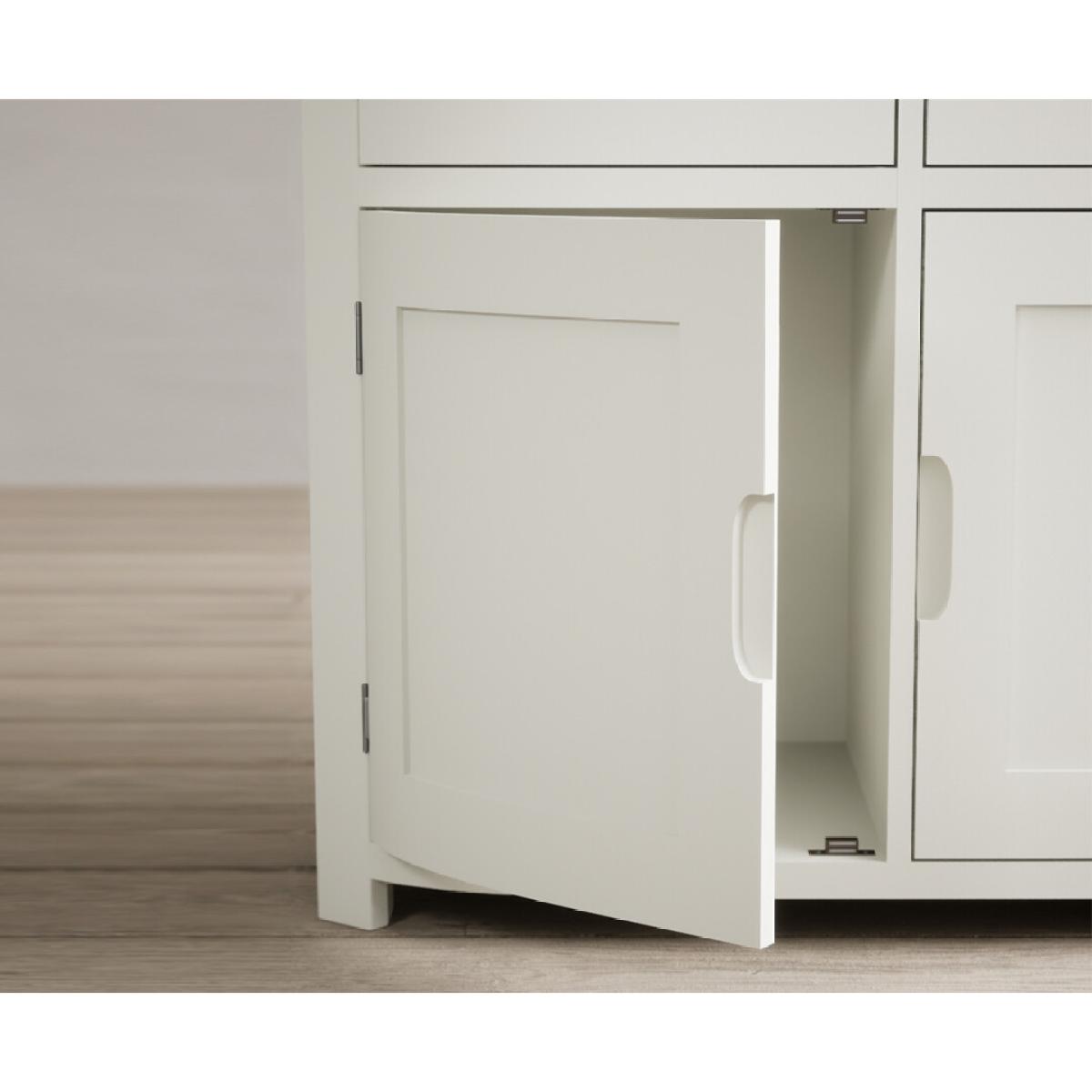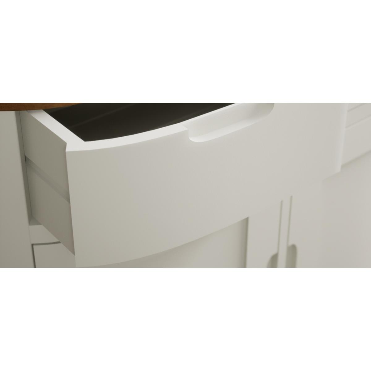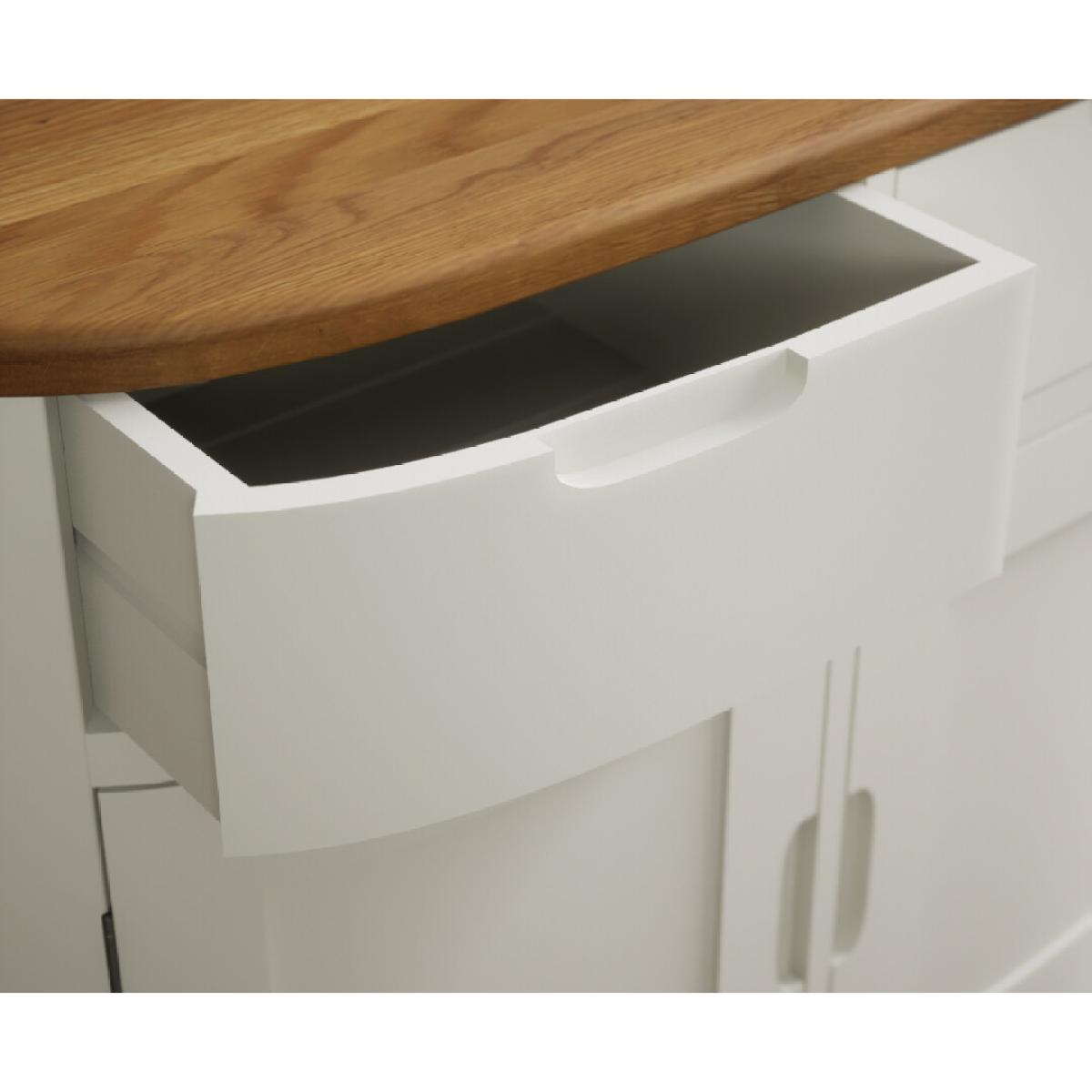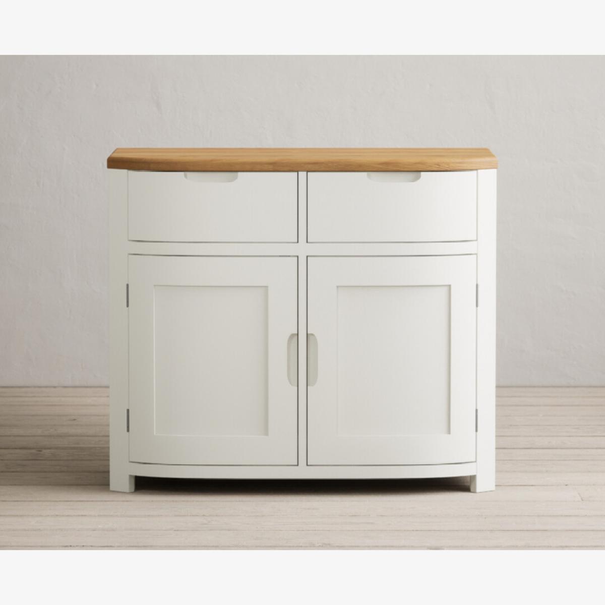 The Bradwell Oak and Chalk White Painted Small Sideboard features a white painted solid hardwood frame and solid oak top, with Dovetail drawers and recessed handles.