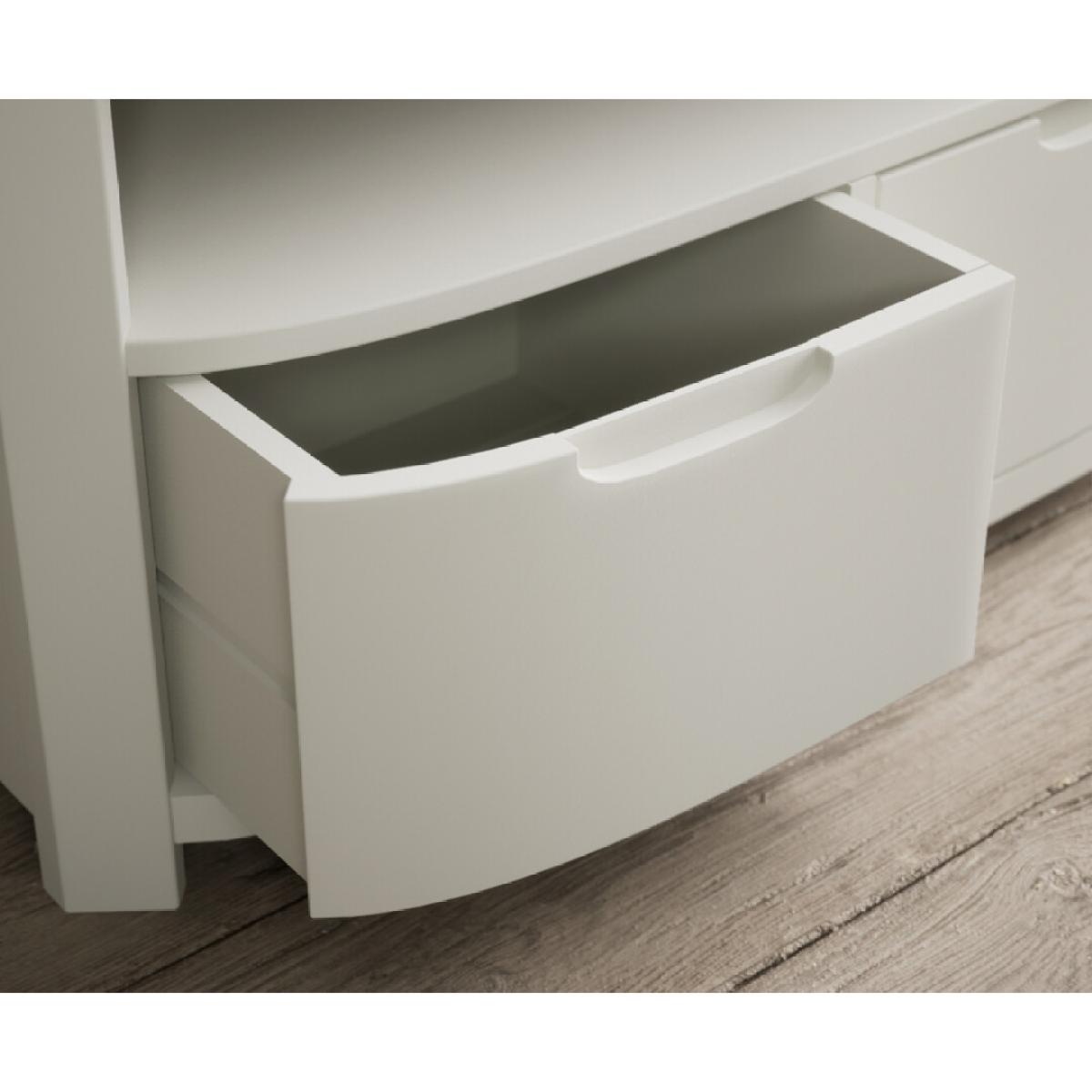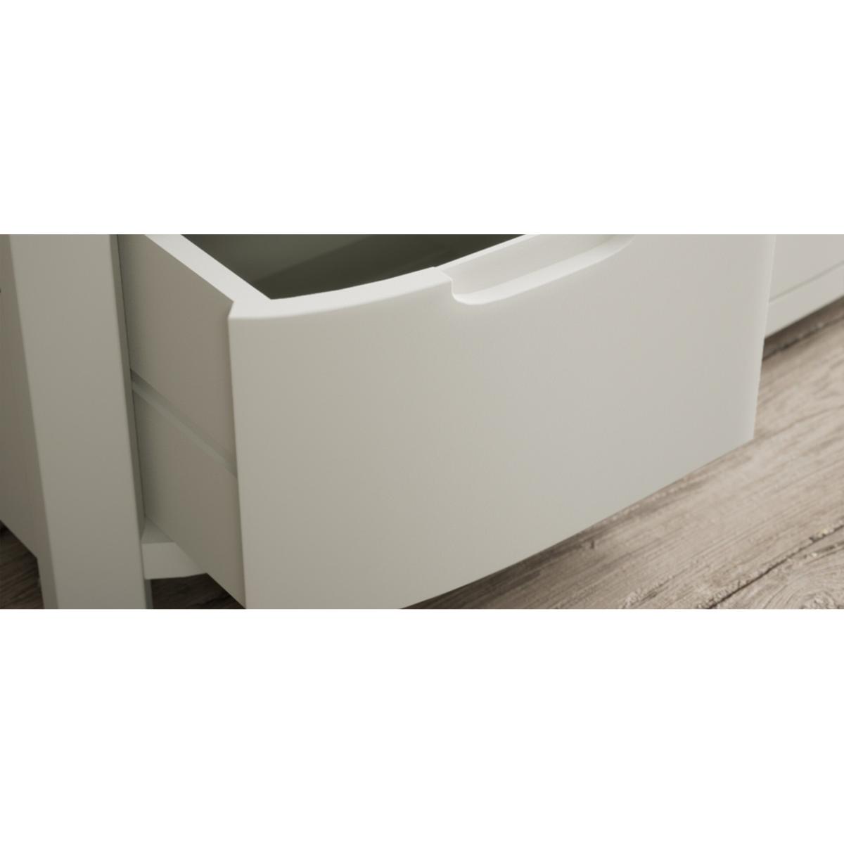 I love this small TV unit because of its versatile look and practical design. The mix of oak and chalk white paints makes it easy to incorporate into both contemporary and cottage-style interiors. It's ideal for a cosy living room or a spacious open-plan space, providing ample storage with its drawers and open shelf for remotes, DVDs, or decorative accessories. Styling tips include adding a sleek tray for organisation on top, or placing a few books and small plants on the open shelf to soften the look. Its compact size means it works well in smaller rooms or as part of a layered furniture scheme, ensuring both function and style go hand in hand.