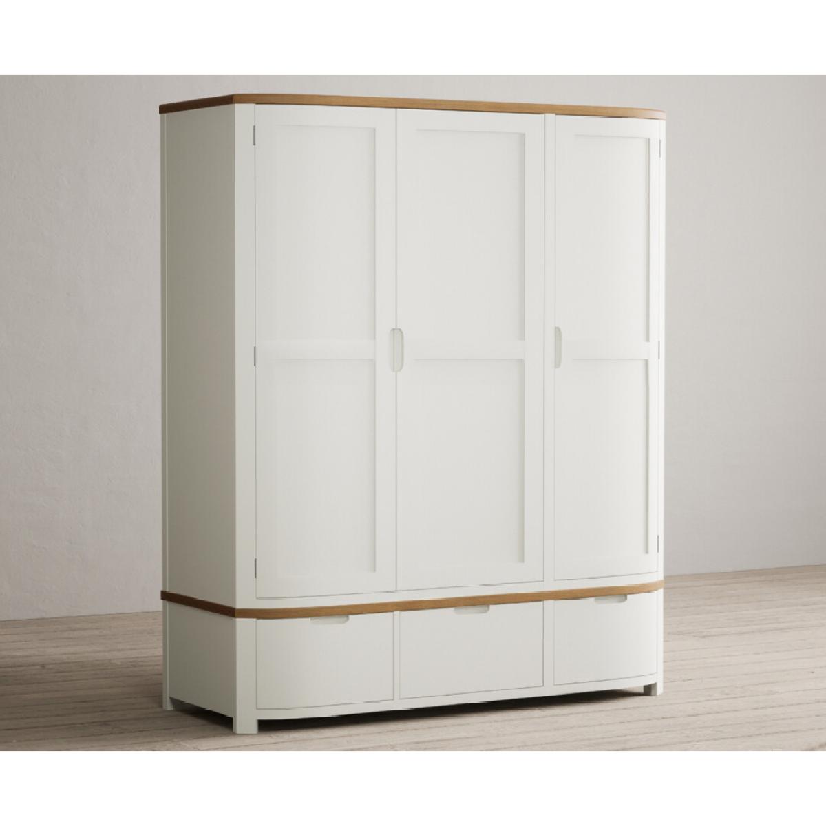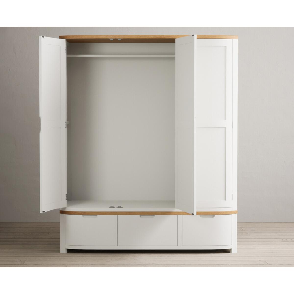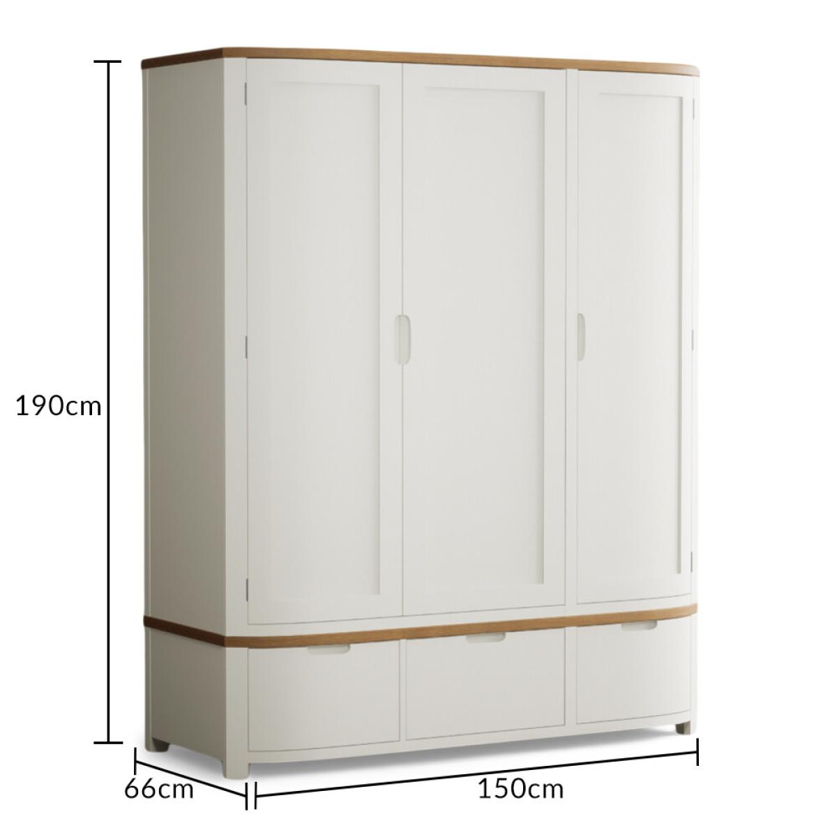 The Bradwell Oak and Signal White Painted Triple Wardrobe is crafted from solid hardwood with a Signal White painted finish and topped with 100% solid oak.