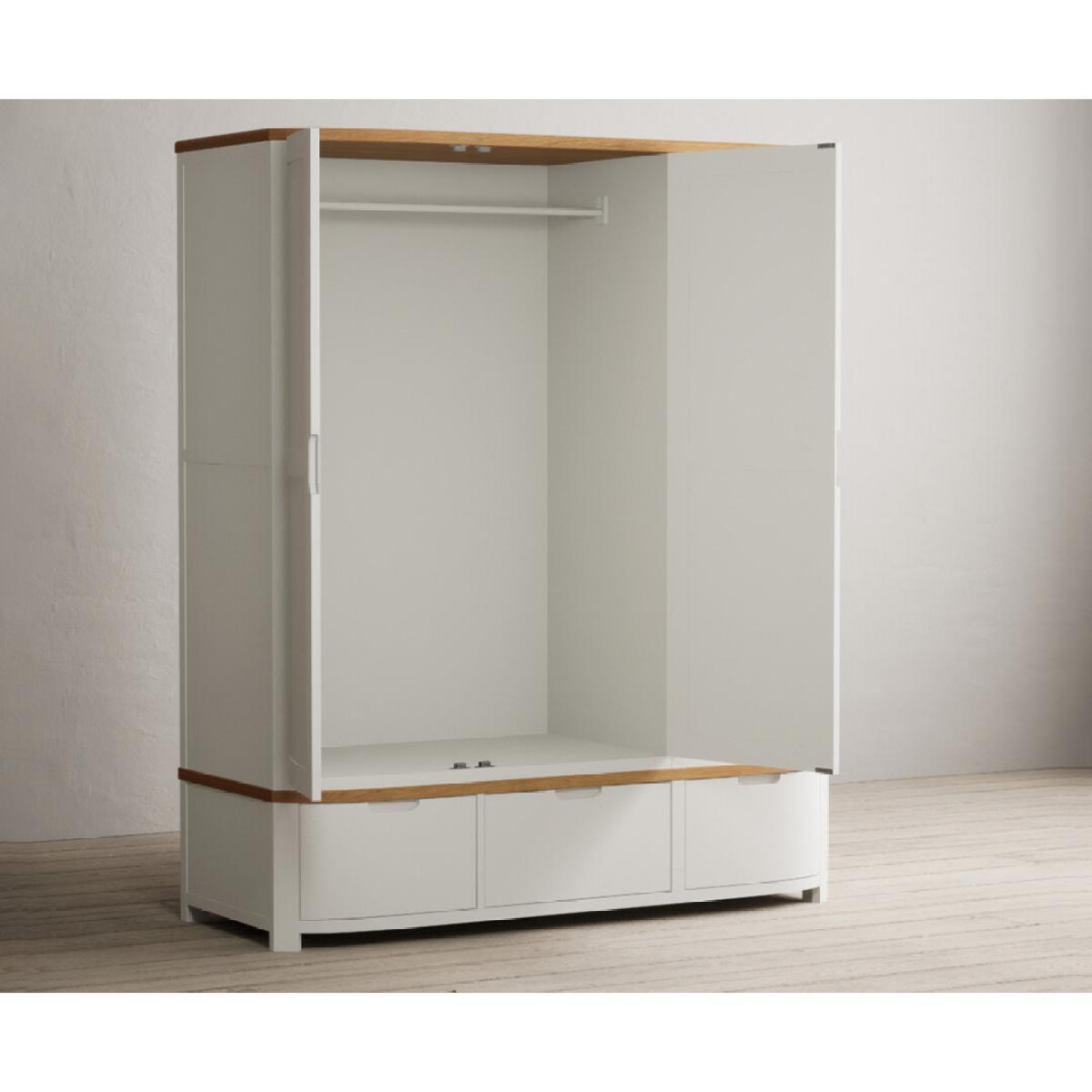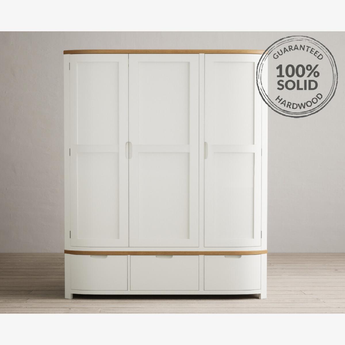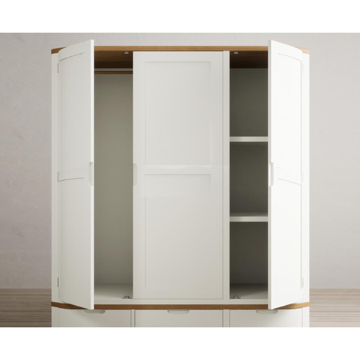 The Bradwell Oak and Signal White Painted Triple Wardrobe is crafted from solid hardwood with a Signal White painted finish and topped with 100% solid oak.