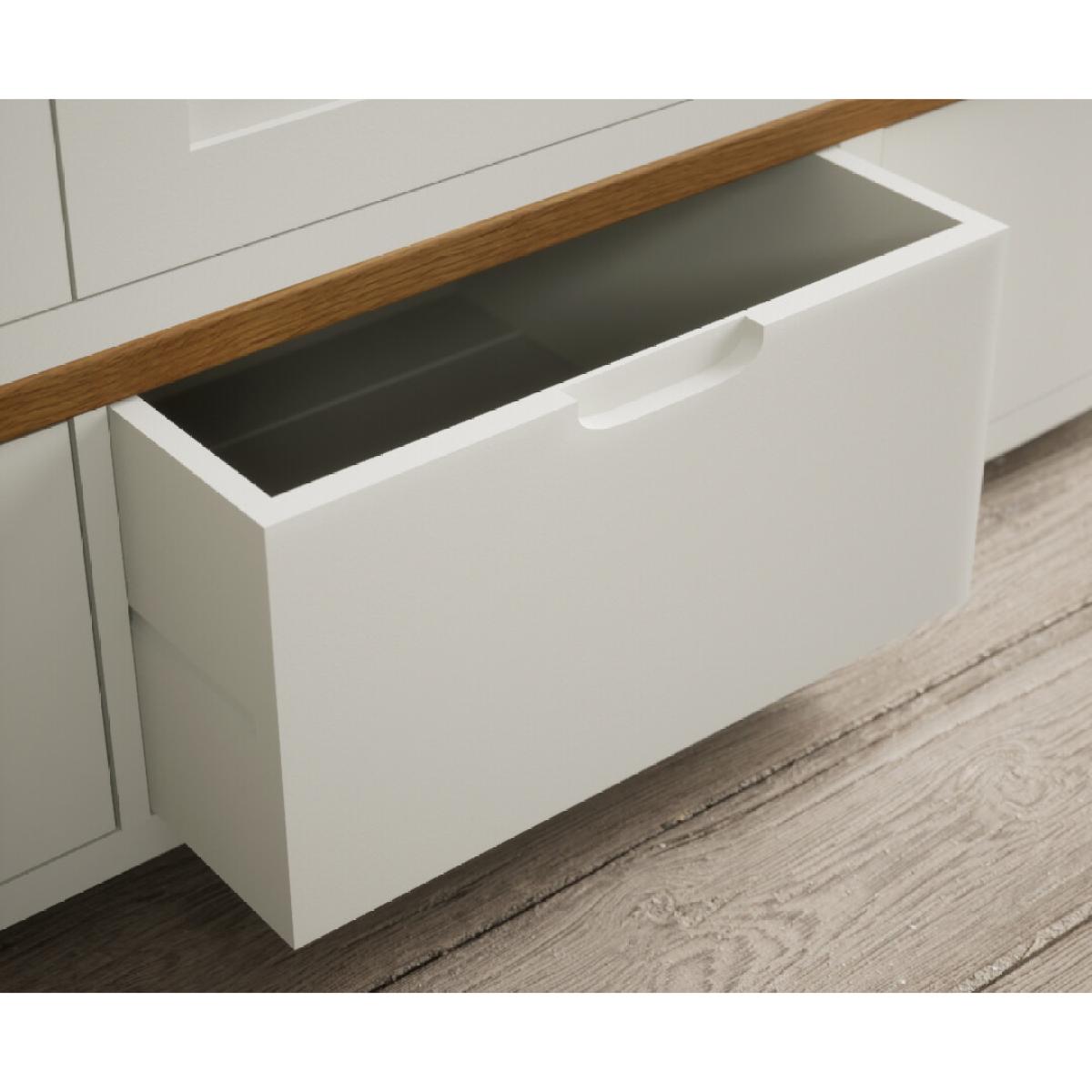 I love this wardrobe for its versatile coastal-inspired look, combining the timeless appeal of oak with the fresh, clean feel of chalk white paint. It works particularly well in interiors designed with a light, neutral palette or Scandinavian style, where its understated elegance complements rather than overwhelms. Practical styling tips include pairing it with woven or linen textiles for a relaxed vibe or adding warmth with natural accessories like cane baskets or wooden trays. The multiple drawers at the base also offer handy extra storage, making it a functional piece that balances style and practicality effortlessly.