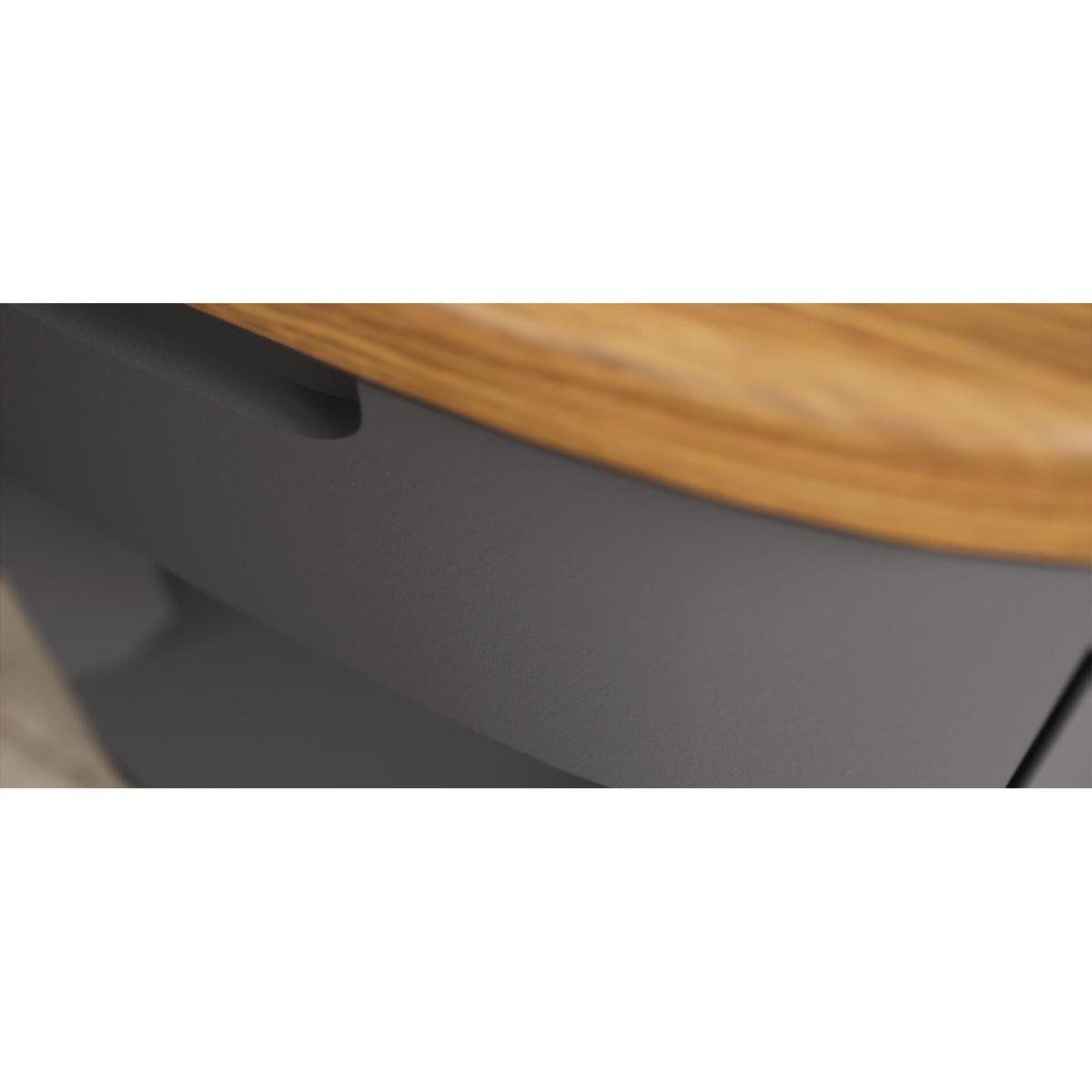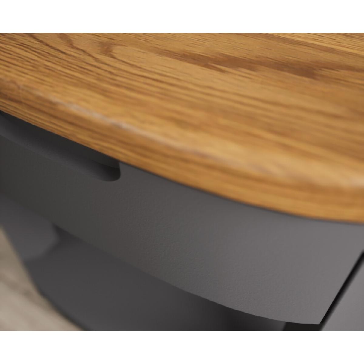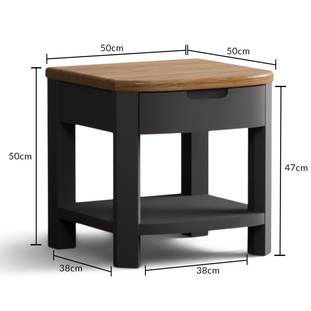 The Bradwell Oak and Charcoal Grey Painted 1 Drawer Lamp Table is crafted from solid hardwood with a grey painted finish, topped with rustic 100% solid oak.