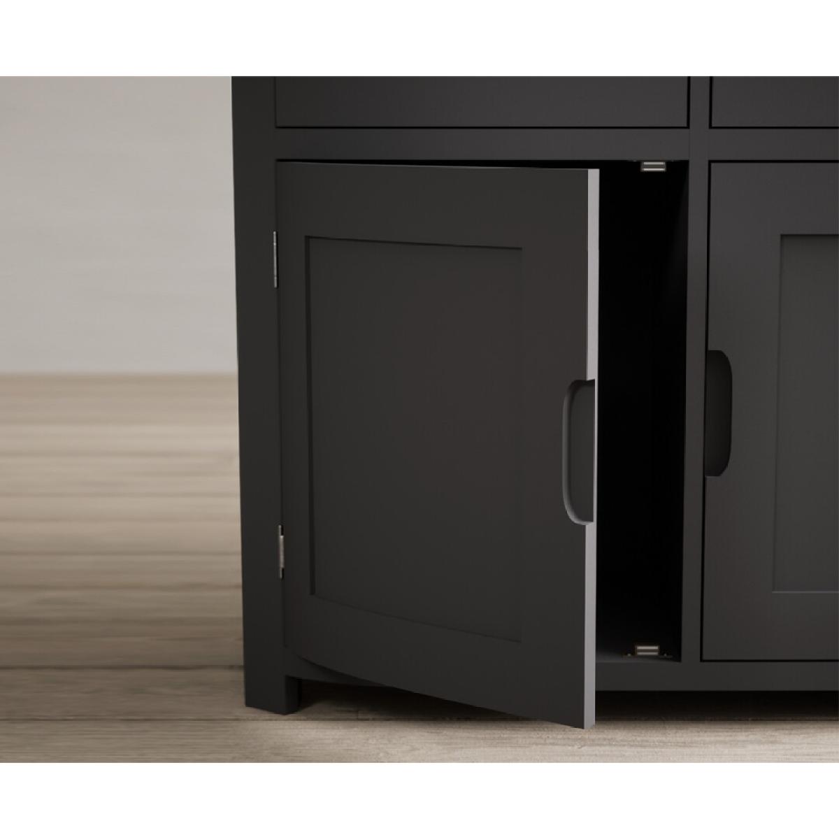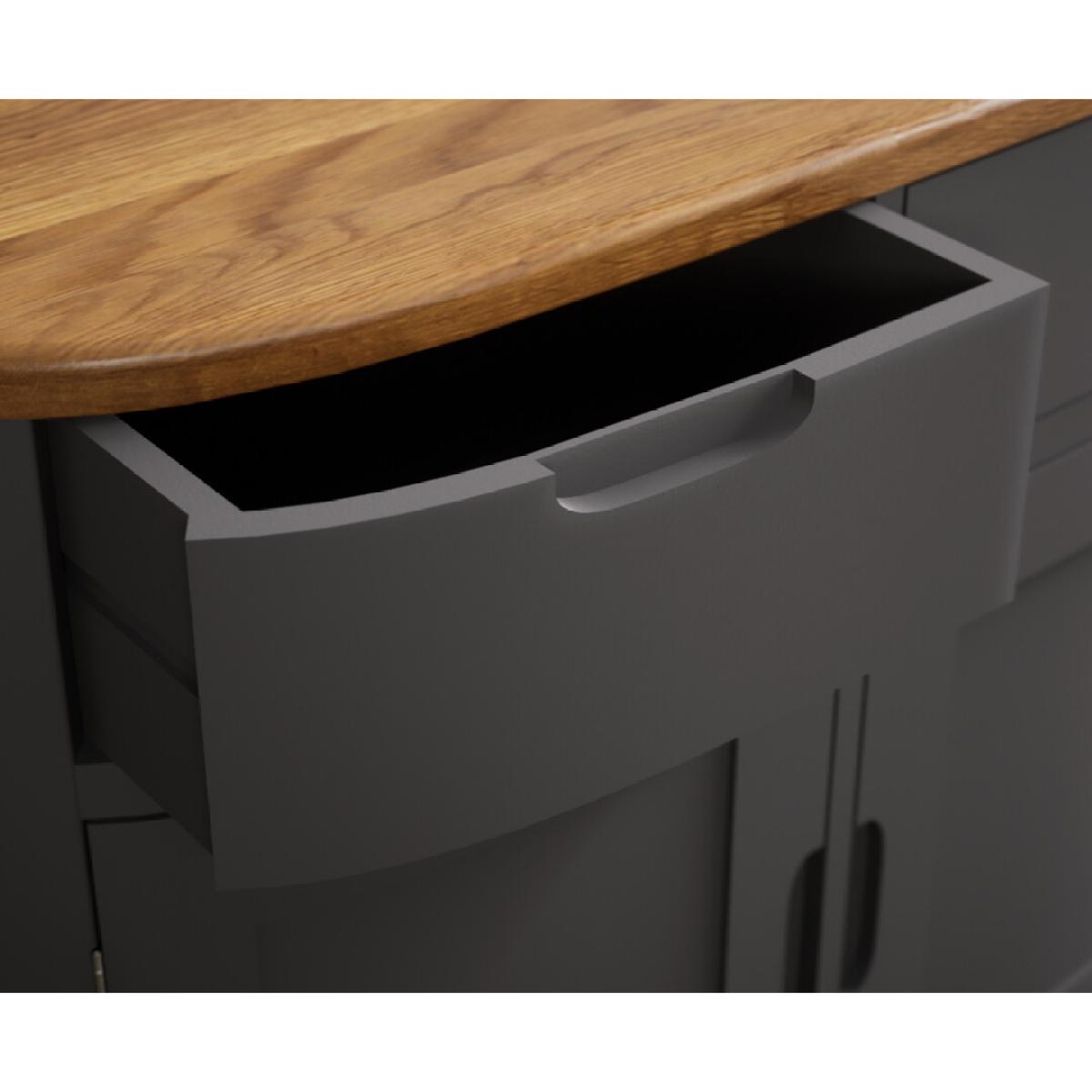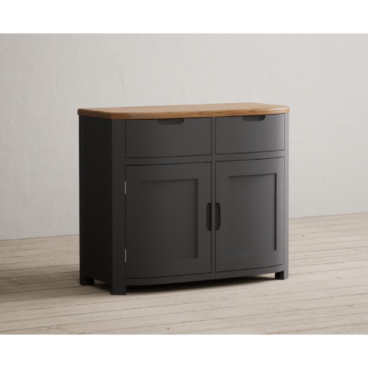 The Bradwell Oak and Charcoal Grey Painted Small Sideboard features a grey painted solid hardwood frame and solid oak top, with Dovetail drawers and recessed handles.