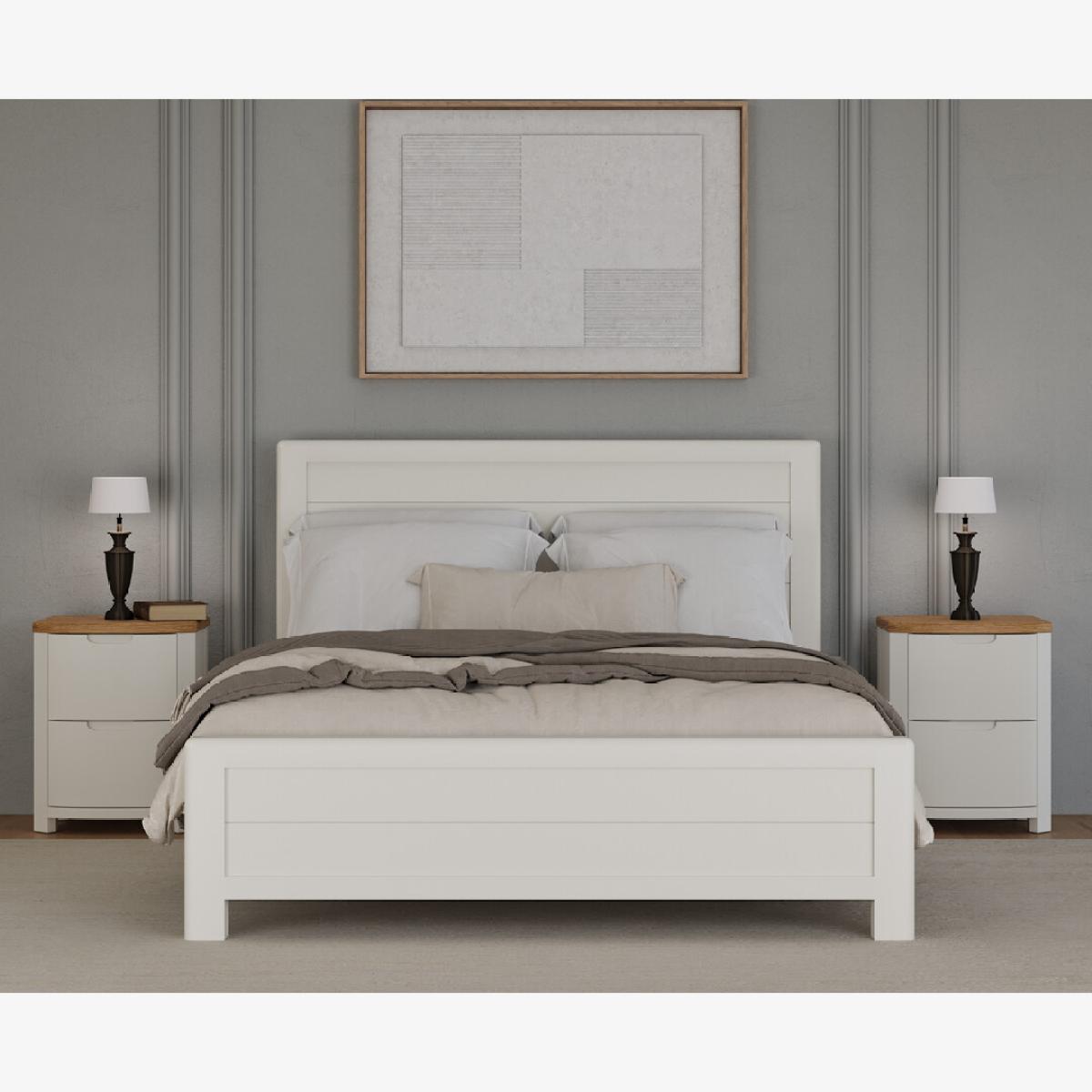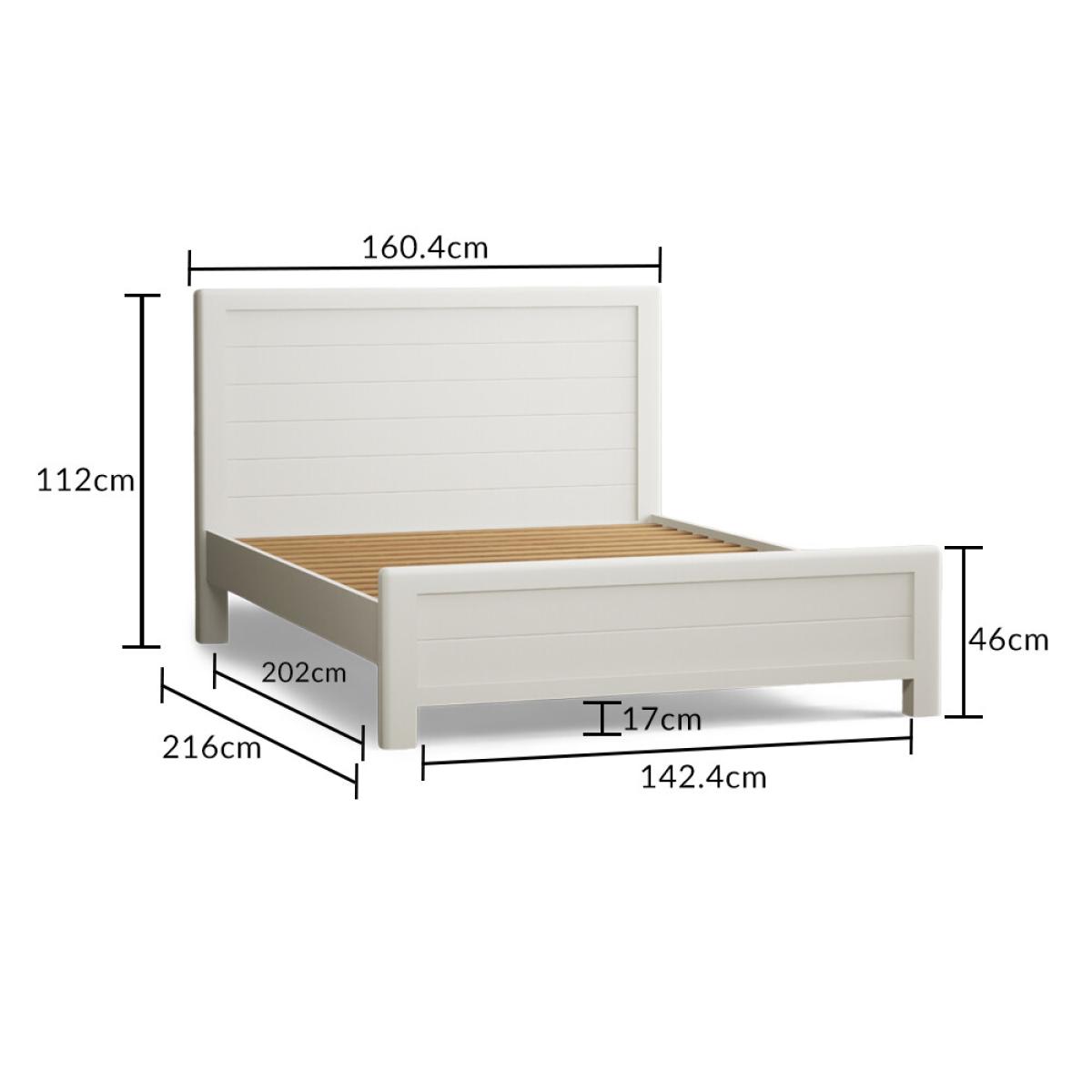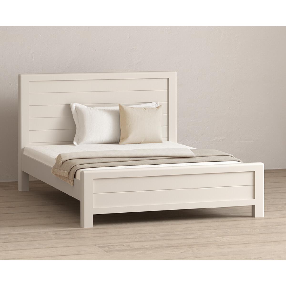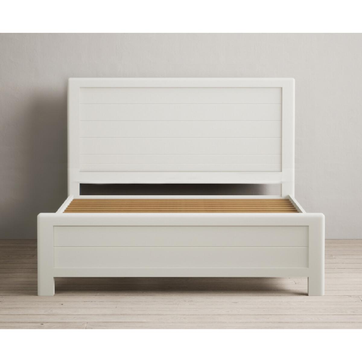 The Bradwell Oak and Signal White Painted King Size Bed is crafted from solid hardwood with a white painted finish, featuring a panelled design and sturdy slats.