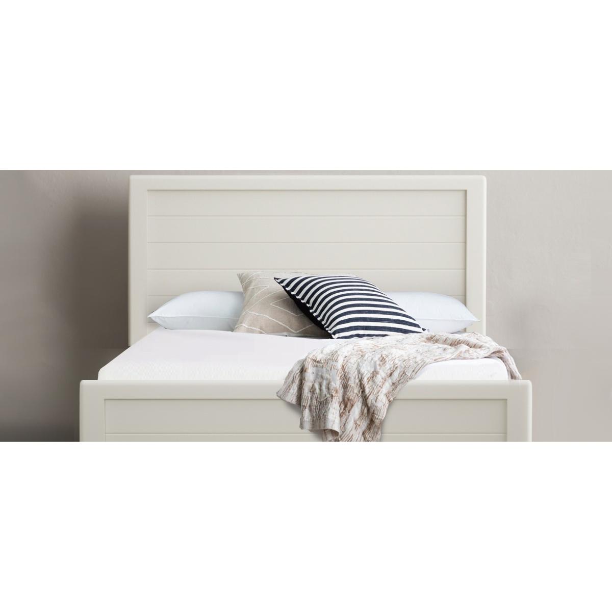 I’m a fan of this oak-and-white bed for its clean, unfussy lines and the way the oak top rails add a touch of warmth without overwhelming the space. It sits equally well in Scandinavian, coastal or modern-farmhouse schemes, and the neutral palette means you can swap out linens or accessories any season. Styling tips: layer natural-fibre bedding in soft greys or muted pastels, then introduce contrast with a pair of dark-metal or brass bedside lamps. A jute rug underfoot and wicker baskets at the foot of the bed reinforce the relaxed, airy feel. Above the headboard, a simple framed print or mirror helps balance the low profile, and a folded woollen throw adds texture and a cosy finish.
