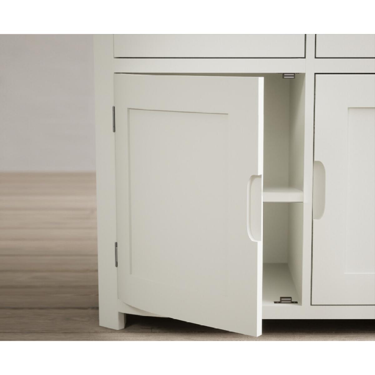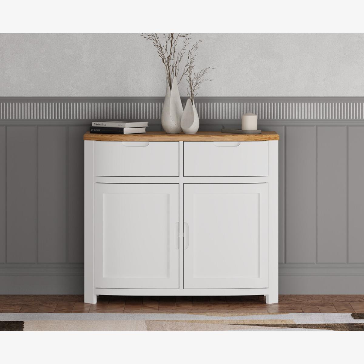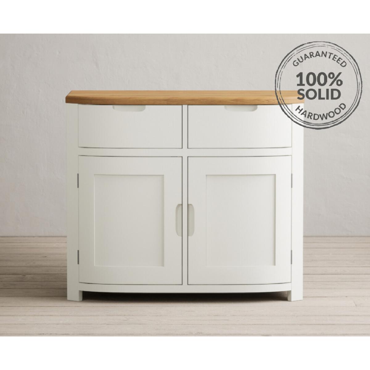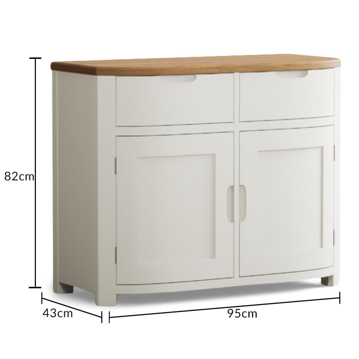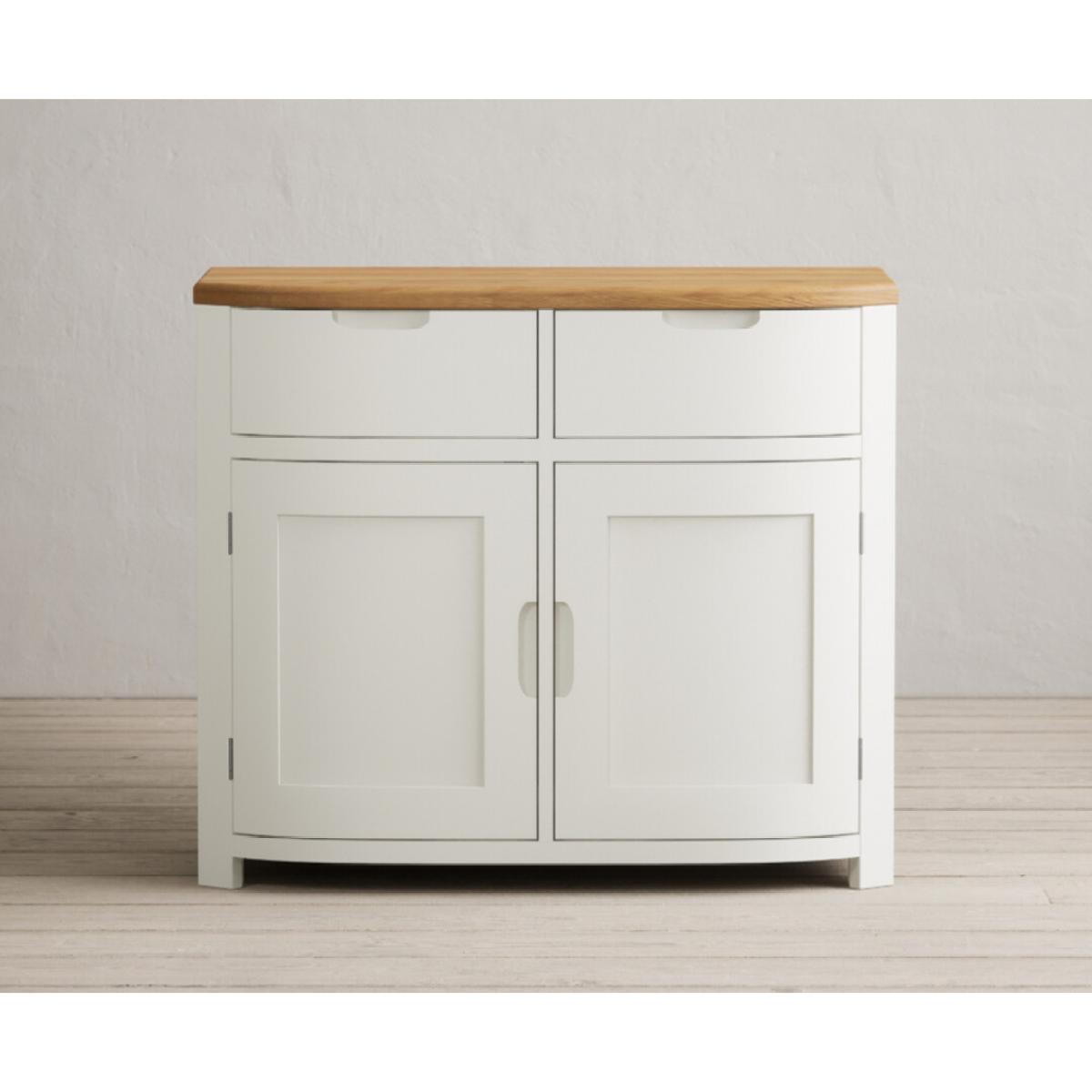 The Bradwell Oak and Signal White Painted Small Sideboard features a white painted solid hardwood frame and solid oak top, with Dovetail drawers and recessed handles.