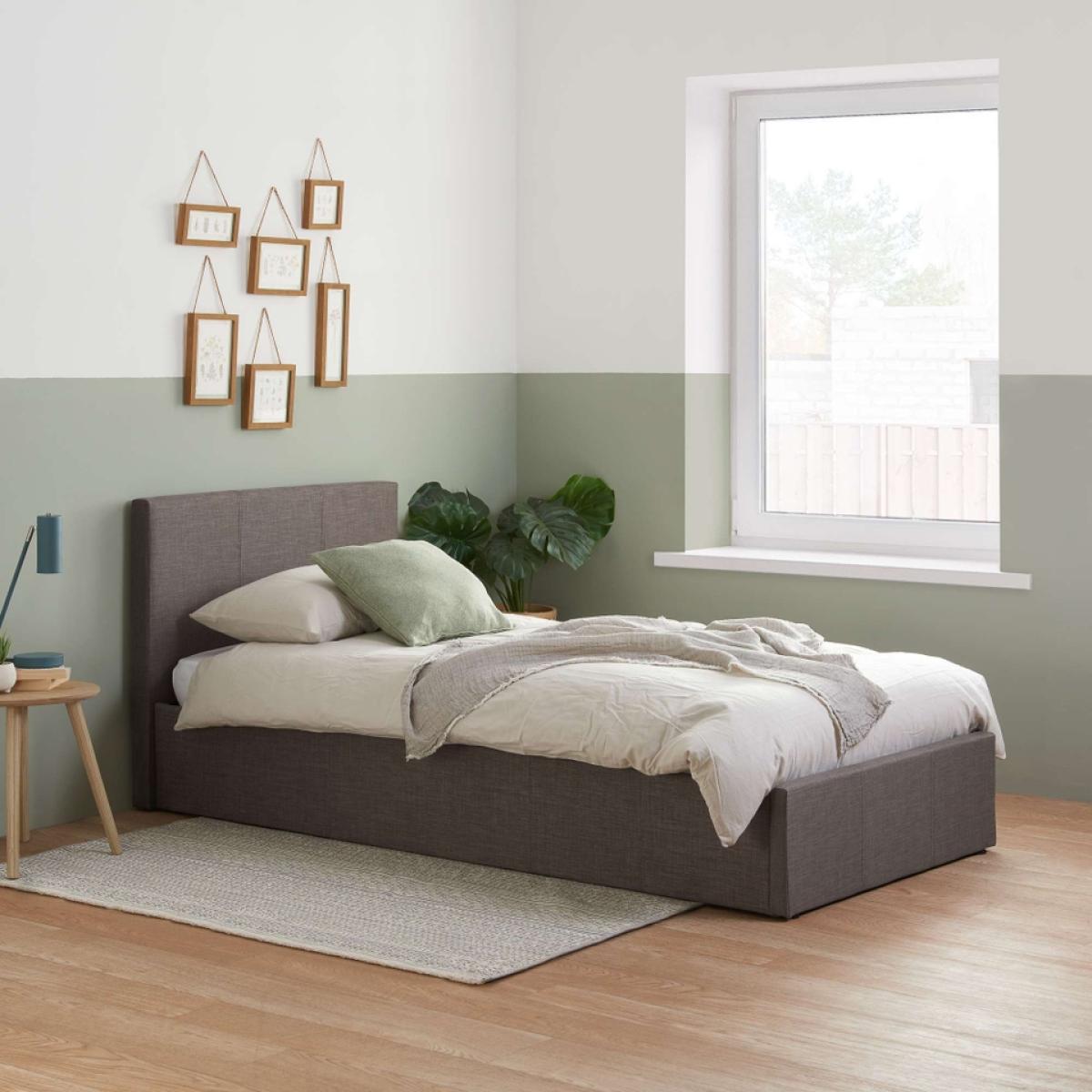 Classically designed, the Bradwell grey single ottoman frame, covered in stylish fabric, adds both style and versatility to any space. With strong gas-lifts to access the storage space, this frame is available upholstered in steel, black crushed velvet and grey polyester. The Berlin Fabric Ottoman frame now includes a protective base sheet. With a sprung slatted base for natural bounce, the frame adjusts to where pressure is exerted most, providing greater comfort. The gas piston strength on this frame is 600 N and can support mattresses up to the weight of 45 kg. The maximum weight load for the 3' frame is 150 kg, all other frames are 200 kg. Please note the mattress needs to be on the bed for the pistons to work.