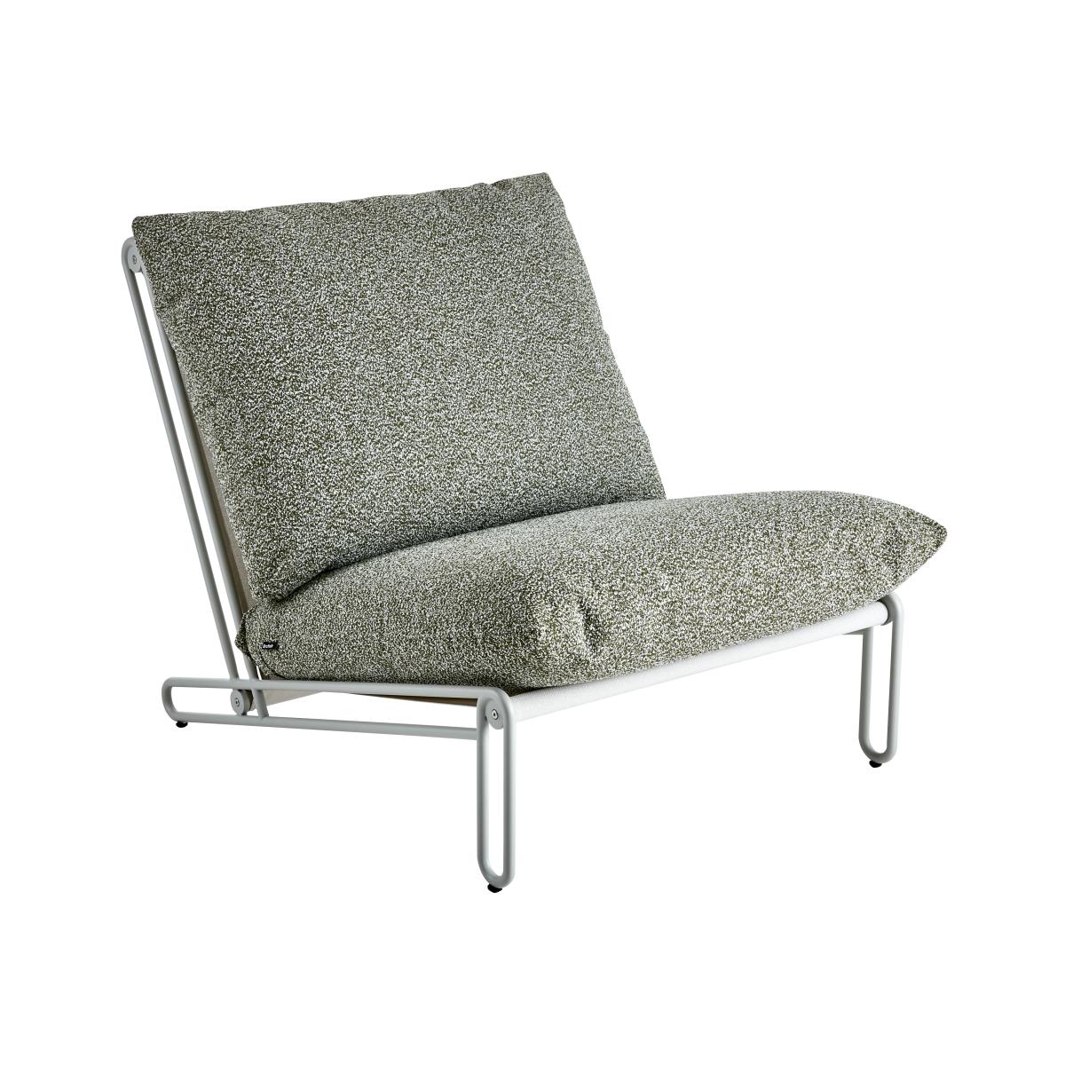 Blixt lounge chair from Brafab combines elegant angles with high comfort and is perfect for various outdoor environments. With a frame in aluminum and water-resistant cushions in olefin fabric, it is available in several different colors. It includes connecting fittings to form a sofa with multiple chairs. The inside of the cushions is lined for extra water resistance, making them ideal for all-weather use.