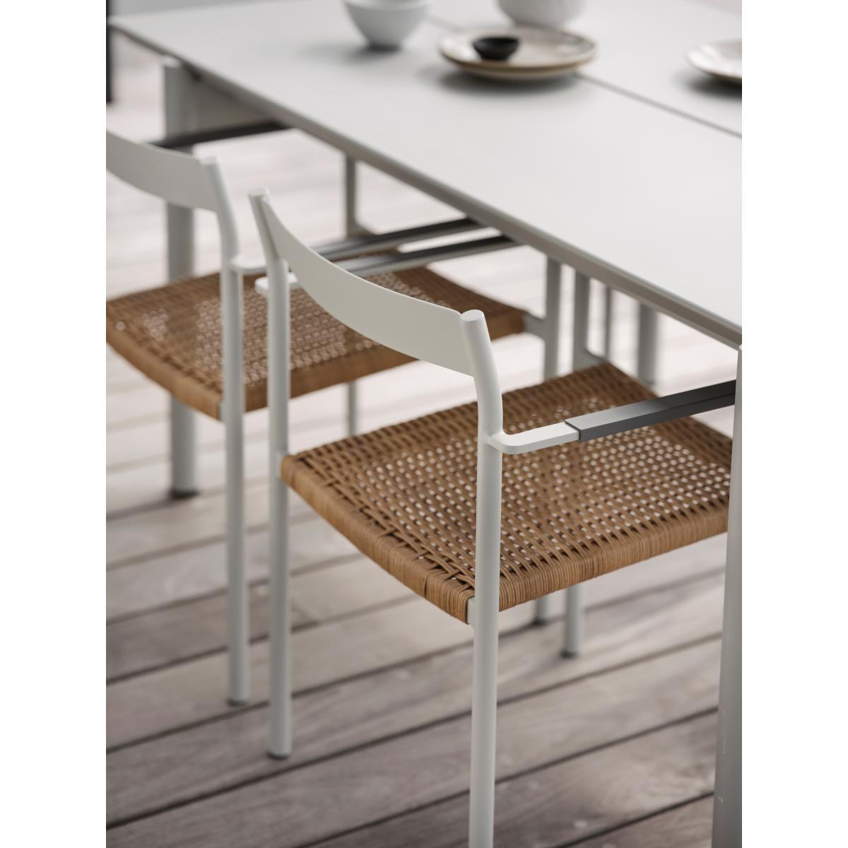 DK armchair from Brafab offers a tribute to Scandinavian design with a style inspired by the 1950s. The chair features a sturdy aluminum frame and contrasting details in the armrests and synthetic rattan. The chair is stackable and available in several color combinations. DK is available as a dining chair, lounge chair, and bench, offering a light, airy feel that can easily be combined with other furniture in your environment.