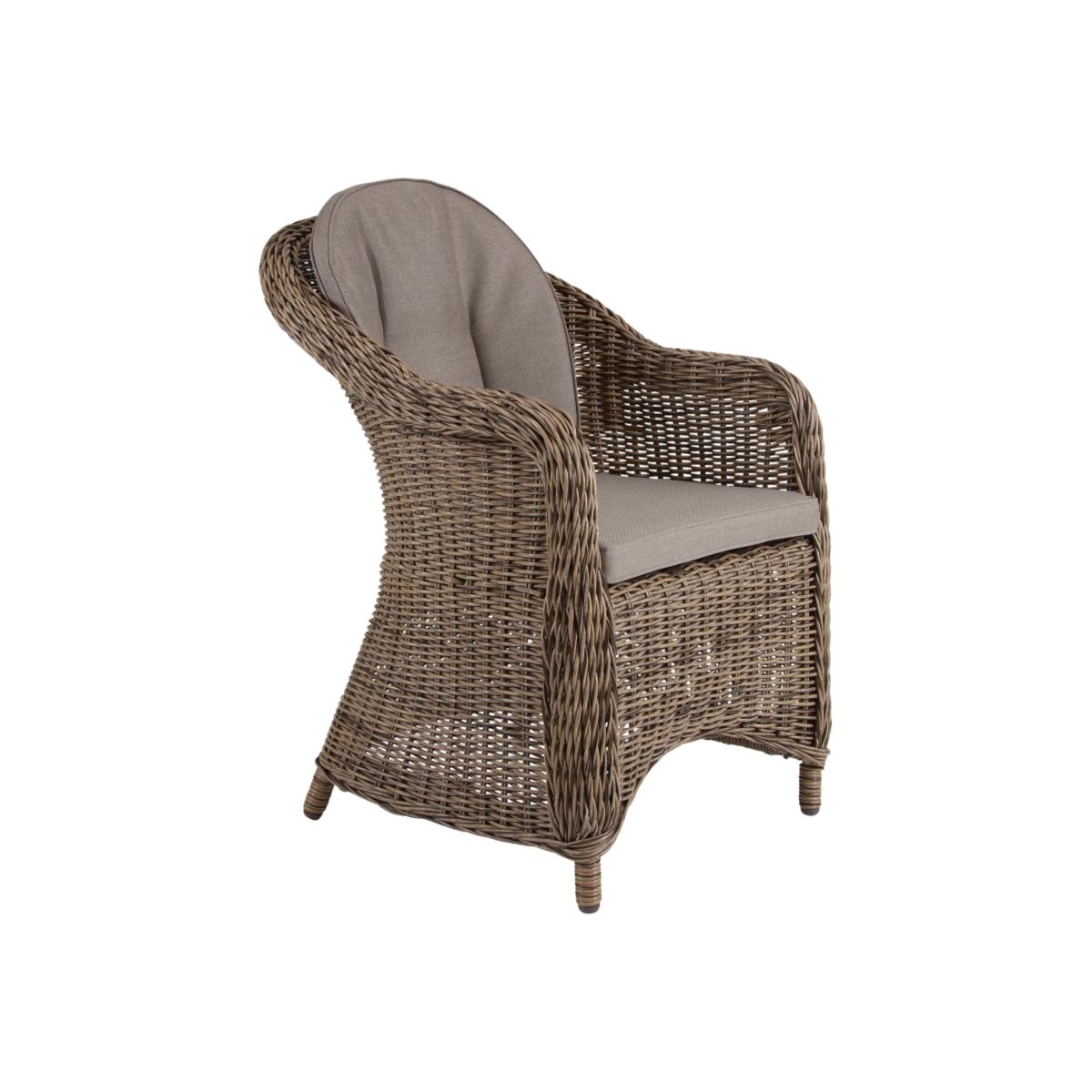 Kamomill armchair with seat cushion from Brafab is the ideal addition to your teak dining table. Made from durable synthetic rattan, it perfectly harmonizes with the natural and gray palette of the Rosita series. The seat cushion is included, while the back cushion is purchased separately, allowing for personal customization. Create an inviting outdoor environment with this multifunctional armchair.