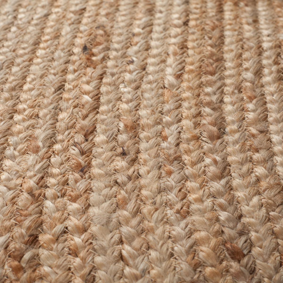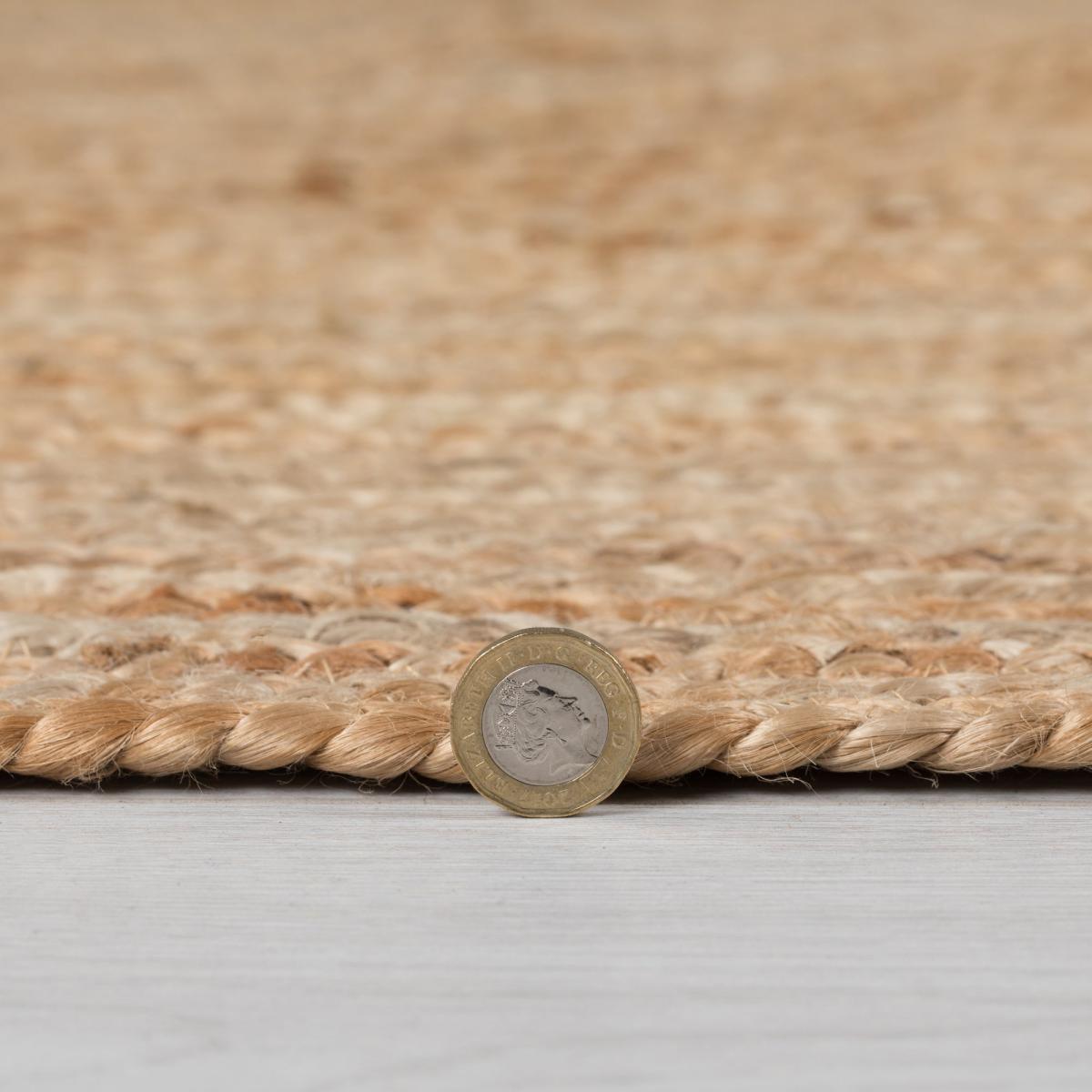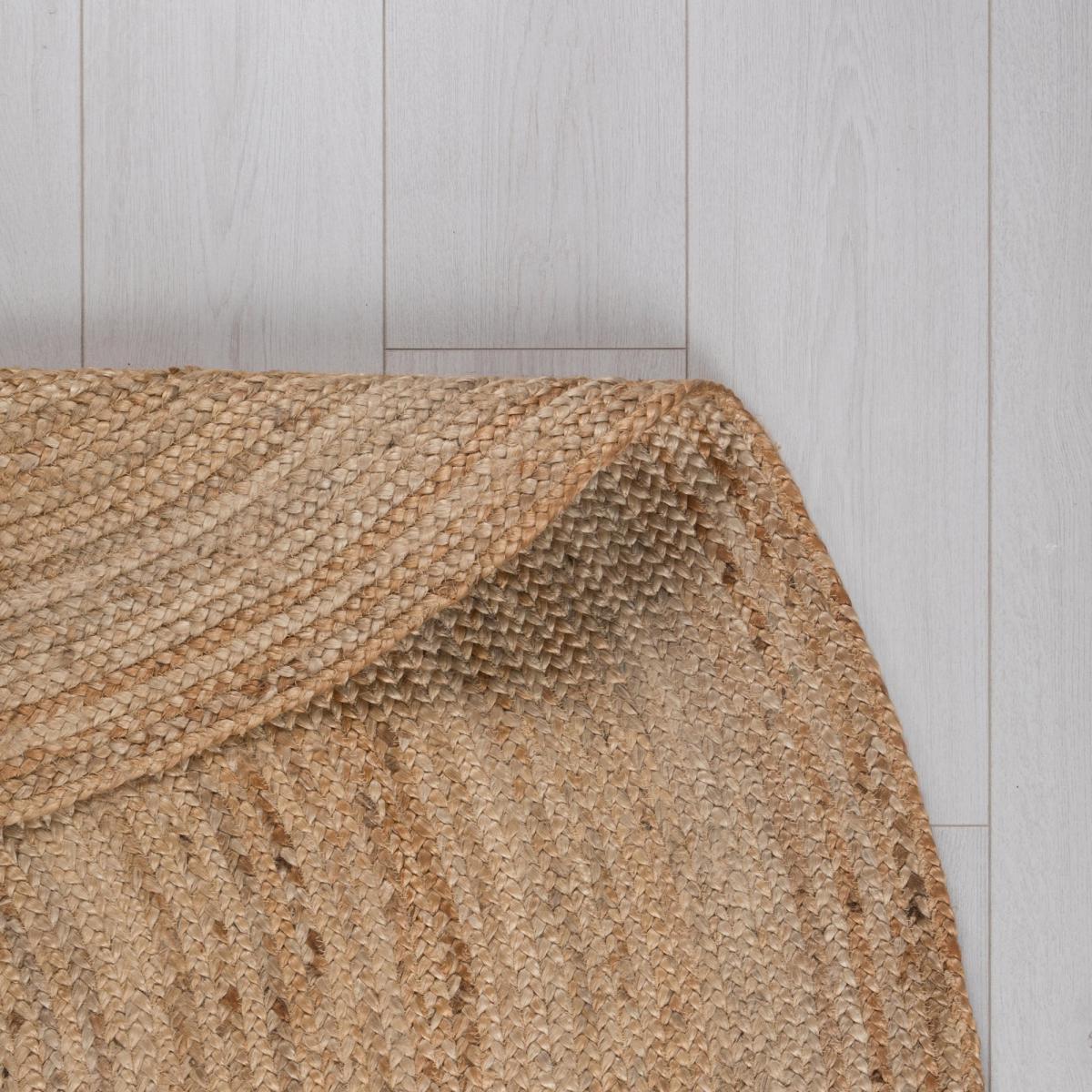 Inject natural textures into your space with our simple Braided Jute Oval rug. The natural shades and braided texture will create the perfect centrepiece. Hand-woven by skilled rug artisans in Northern India, the 100% jute pile maximises durability. The Braided Jute Oval rug maximises versatility and durability with it's flatweave and reversible composition, perfect for on-the-go homes. Don’t forget to buy our anti-slip mat[here](https://www. dunelm. When opening, re-roll your rug pile out and leave in a warm room for 24 hours before putting in place, this will help to reduce wrinkles and curling from packing. Do not pull any loose threads, please cut them carefully with scissors to remove. Turn your rug regularly to ensure even wear and to reduce pressure marks from furniture. Suitable for use with a heated floor. Before using any cleaning products on your rug, test on an inconspicuous area first to ensure it does not affect the colour. Clean spills immediately by blotting with a clean dry white cloth - do not rub as this may stain the fibres. Vacuum your rug regularly to remove everyday dirt, we recommend the use of a suction type vacuum cleaner or change your roller setting to the highest setting to reduce contact with the pile. Keep away from fire, do not leave children unattended on this rug.