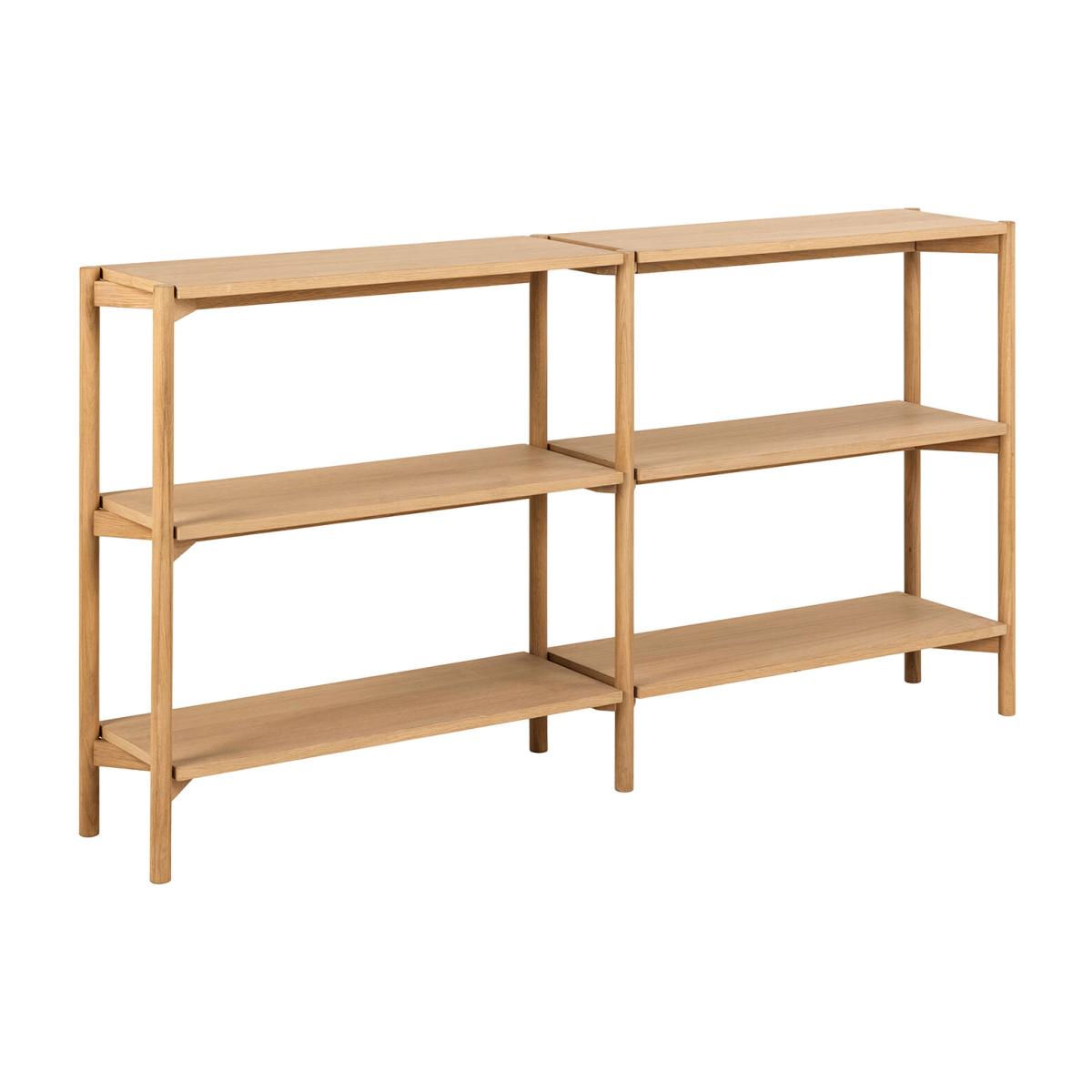 Experience the understated elegance of the Braidwood Low Bookcase. It features a sturdy oiled oak frame and base, complemented by four spacious oak veneer shelves, ideal for displaying your favourite books and treasures. This bookshelf is a fantastic addition to your living space or office, offering a sleek and contemporary design.
