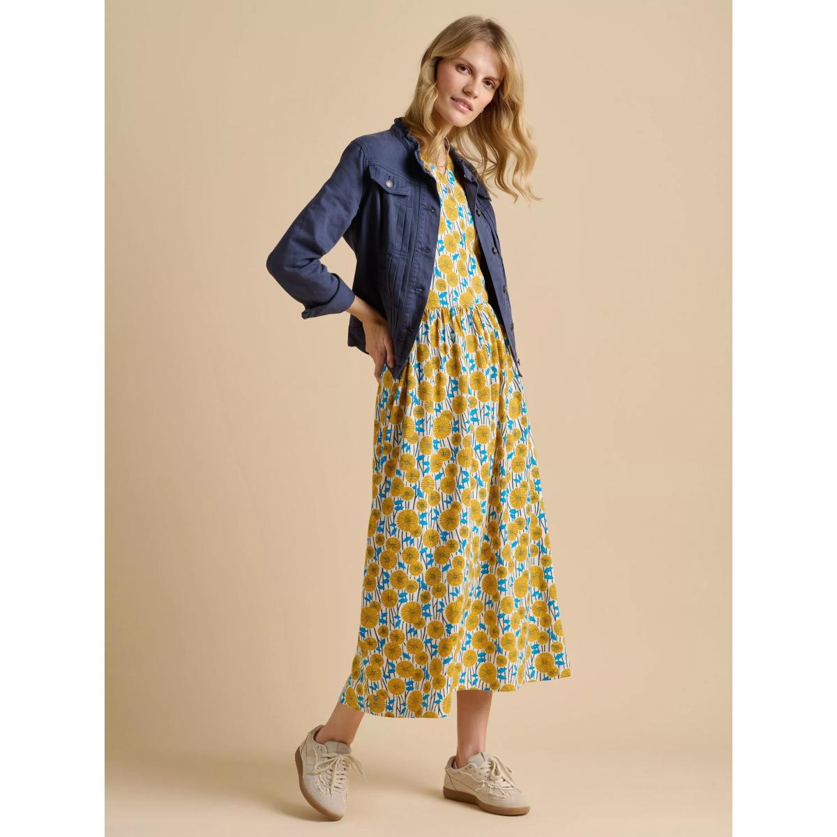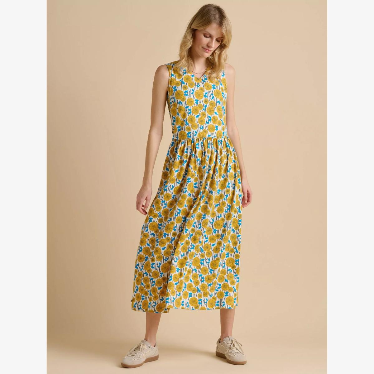 The Brakeburn Parasol Maxi Dress in yellow is a vibrant, summery piece that adds a cheerful pop of colour to any space. As an interior stylist, I love how its sunny hue and cheerful floral pattern can brighten up a neutral or minimal setting, making it ideal for casual, laid-back environments or sunlit kitchens and living rooms. It works particularly well in spaces with natural materials like rattan, wicker, or light wood accents that complement its organic, garden-inspired vibe. To style it practically, consider pairing it with neutral accessories or even throw in some matching yellow cushions or throws to echo the dress’s cheerful tone-it's a versatile piece that lends itself to relaxed, inviting interiors perfect for lazy weekends at home or outdoor gatherings.