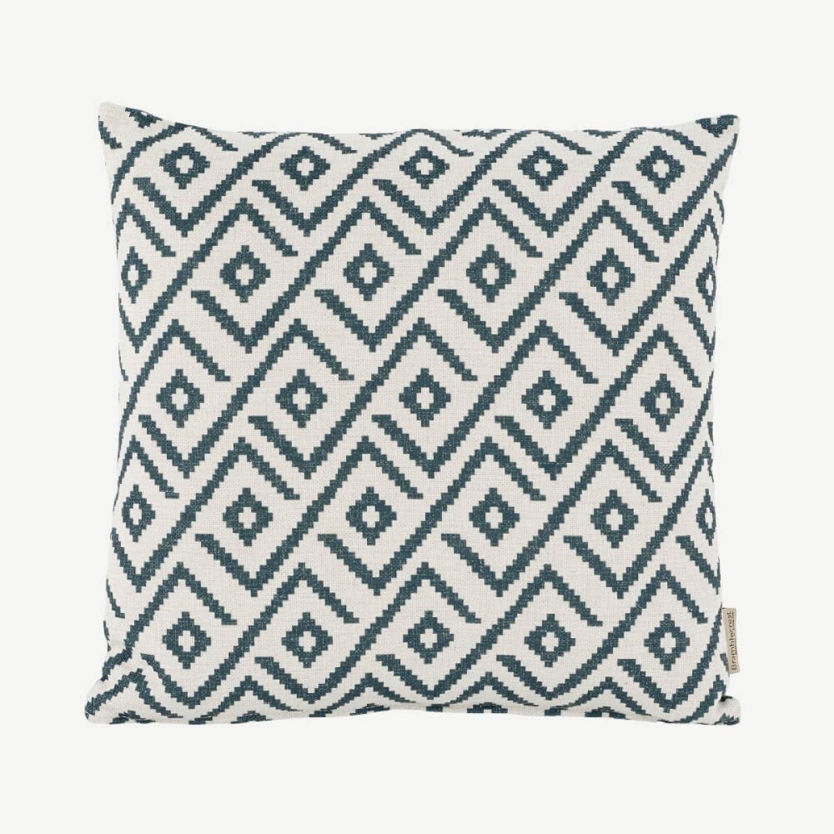 About:. This handsome Bramblecrest outdoor scatter cushion offers a chance to inject some colour and pattern into your garden furniture arrangements. The interesting geometric green pattern is a lovely means to break up colour blocking of greys and beiges. Bramblecrest have created a garden furniture cushion range which have cushion covers made from season-proof fabric so can withstand light showers, just store indoors when not in use and certainly during winter. The zip cover is removable so it’s easy to clean. Key features:.