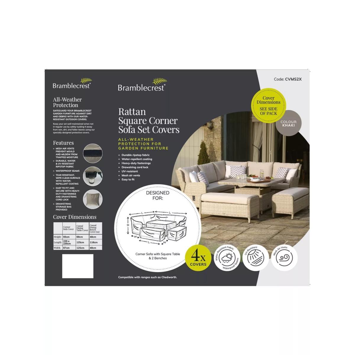 Bramblecrest Rattan Square Corner Sofa Set Weathersure Water Repellent Garden Furniture Covers, Khaki