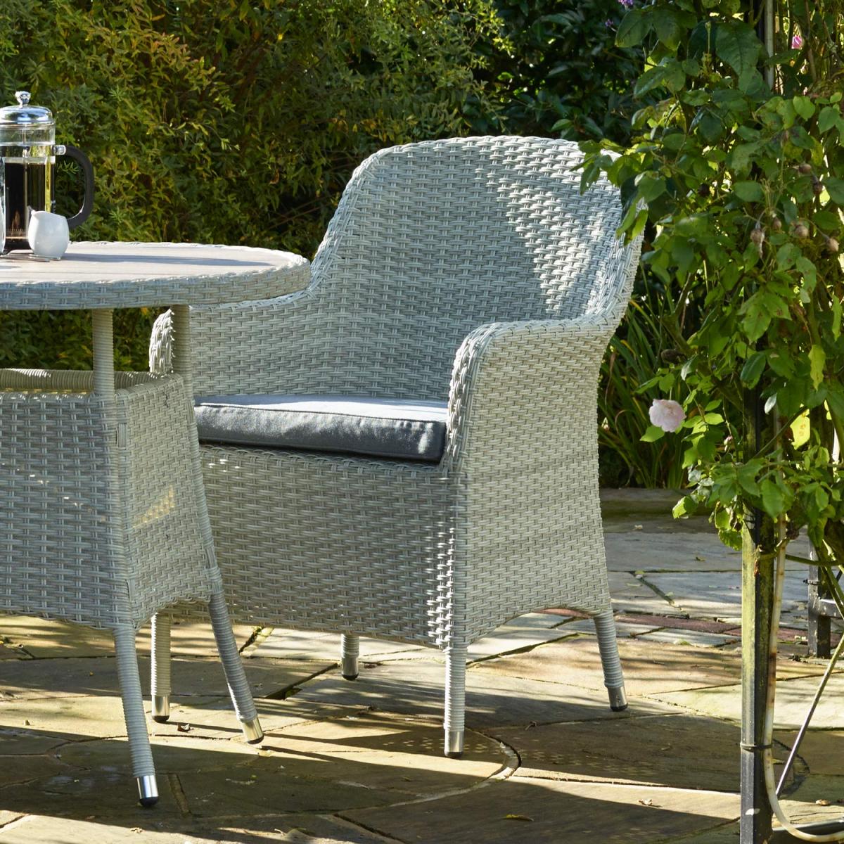 1 x Bramblecrest Tetbury Armchair with Season-Proof Eco Cushion –Cloud. Bramblecrest's Tetbury Armchair will make a fine addition to any garden stylish and comfortable it is made from hardy weather resistant rattan. This chair comes topped with a season proof seat cushion.
