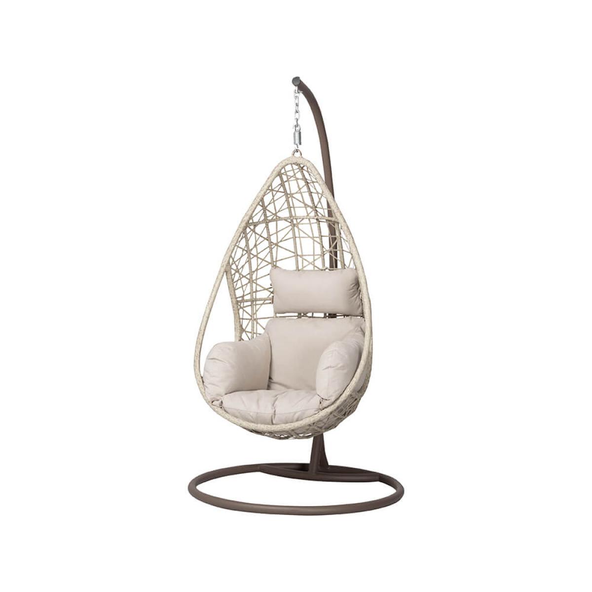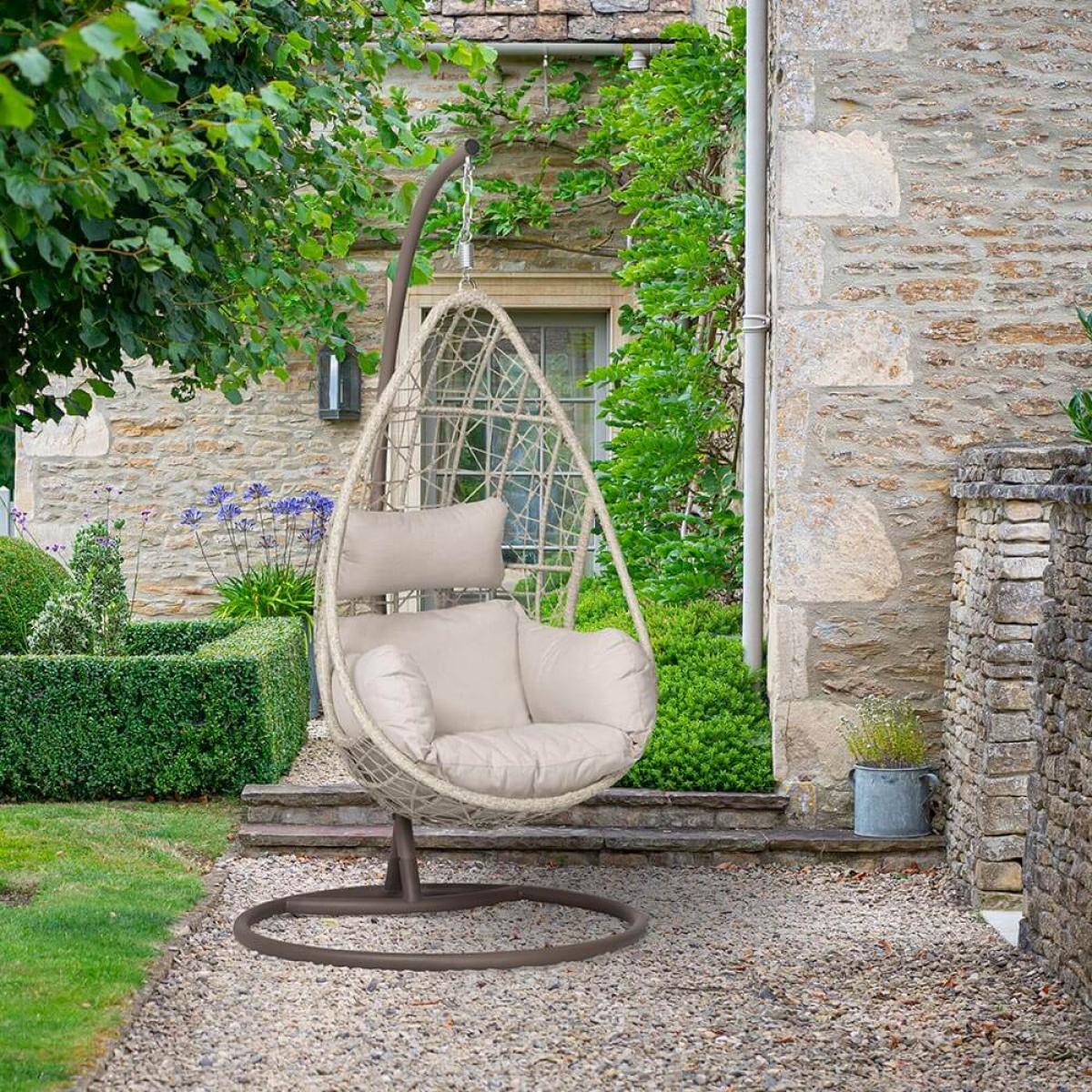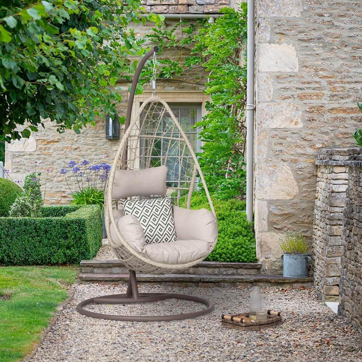 Set consists of:. About:. Whisk yourself away with a good book and into the safe sanctuary of this gorgeous Bramblecrest Tetbury Teardrop Single Cocoon. This rattan hanging chair will soon become a favourite corner of the garden to carve out those relaxing moments earned. The wider weave of rattan will suit those who like to soak up the sun no matter the angle in which they position the chair, this rattan is synthetic and therefore largely repellent against moisture, perfect for an unpredictable climate. We do still, however, recommend using a protective cover to shield this chair from the worst of the autumn and winter months, a link to this is beneath this description. A season proof cushion set accompanies the chair, plump and comfortable yet resistant against light showers, frost and flash downpours. For the harsher weather months and for anything heavy store these indoors, or within a. Cushion box. A hang frame comes with this gorgeous teardrop shaped chair, this steel frame is both lightweight and sturdy, plus powder coated ready for life outdoors. The lovely nutmeg colour will complement many patios and decking alike. Key features:. Further protect the integrity and finish of your teardrop shaped cocoon from frost, bird droppings and tree debris with a Bramblecrest protective cover made from durable polyester. This has been designed to specifically fit this shape chair. Follow the link below to be take to this, sold separately:.