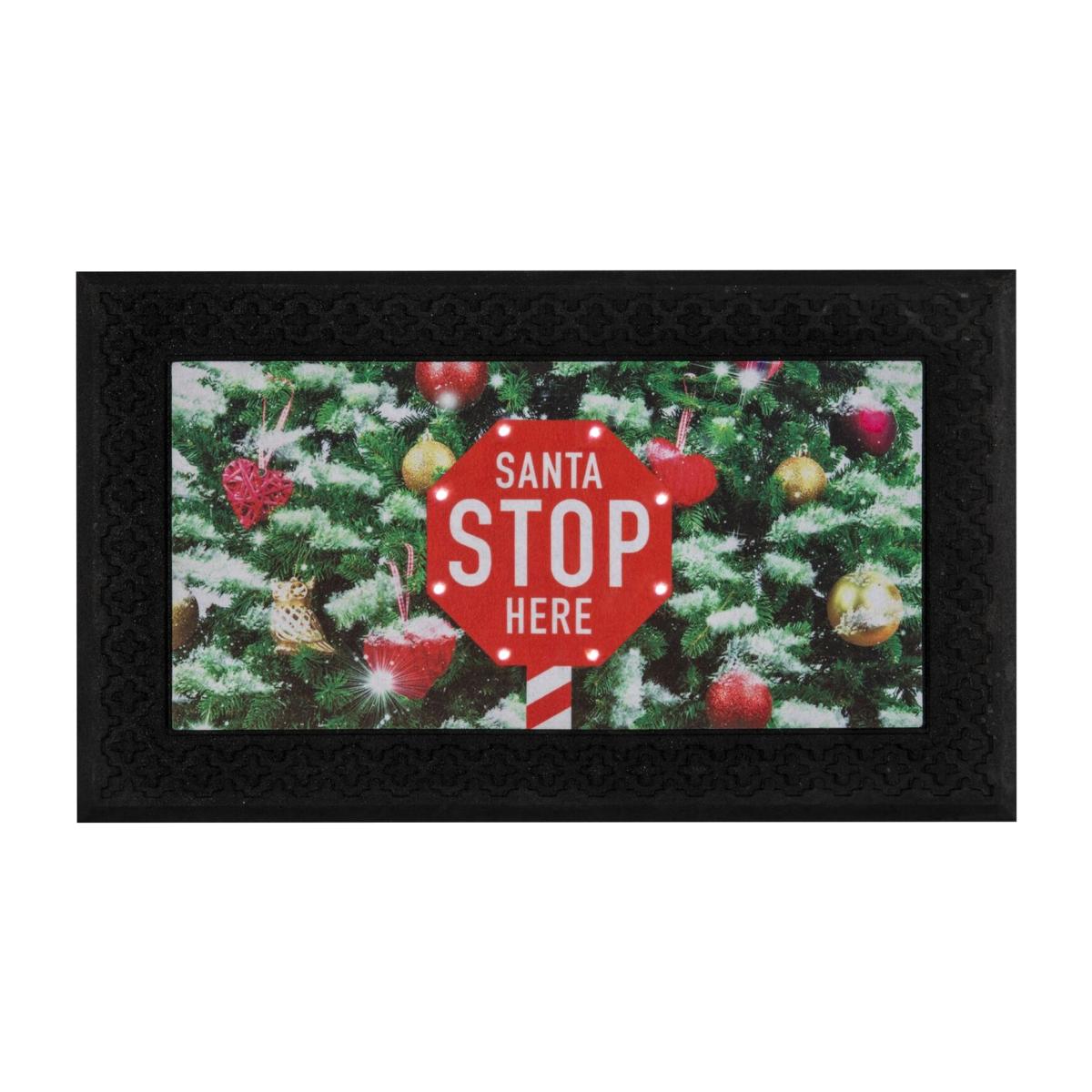 Bramhall 45x75cm LED Santa Stop Here Mat - Black