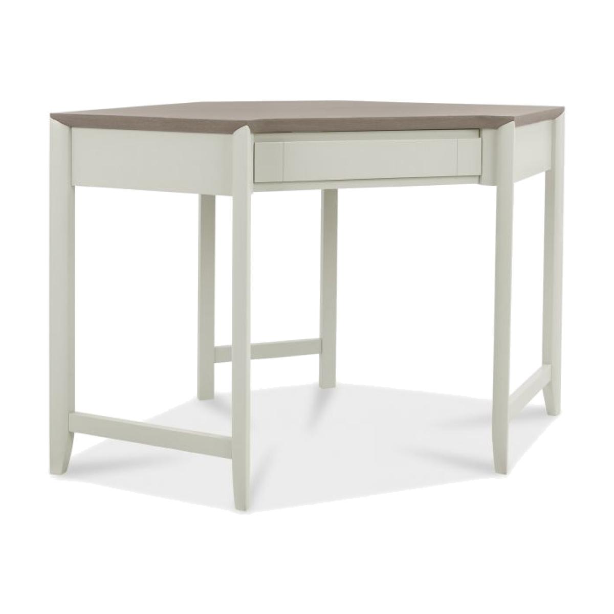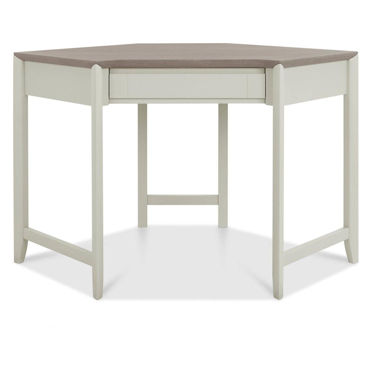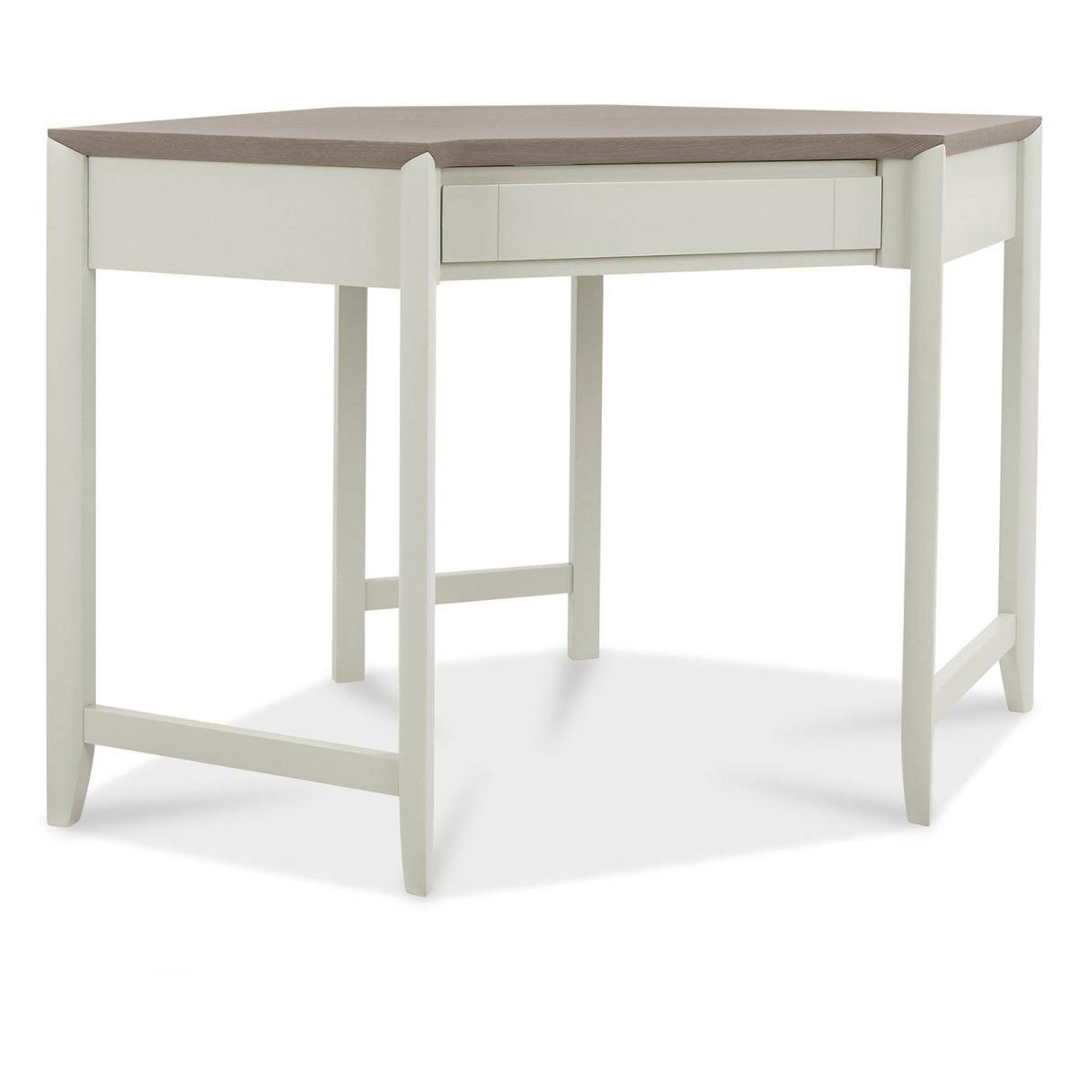 Brampton is a strikingly contemporary, modular-based collection of dining, living room & home office furniture that offers flexibility and practicality in tune with today's lifestyles.  The contemporary and simple Scandinavian style corner desk from Bentley Designs offers a beautiful combination of Oak and grey painted quality furniture. The Product features 1 drawer on soft-close Blum runners, perfect for storing stationery. Why not upgrade your home office with more from the Brampton range.  Assembly required - all instructions, tools, and fittings provided. Product Dimensions: Height:79cm, Width:128cm, Depth:79cm.