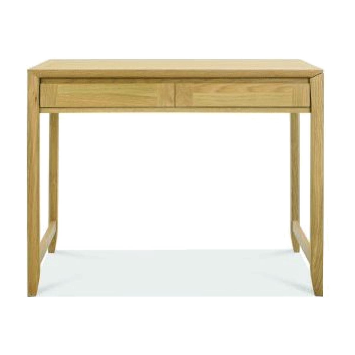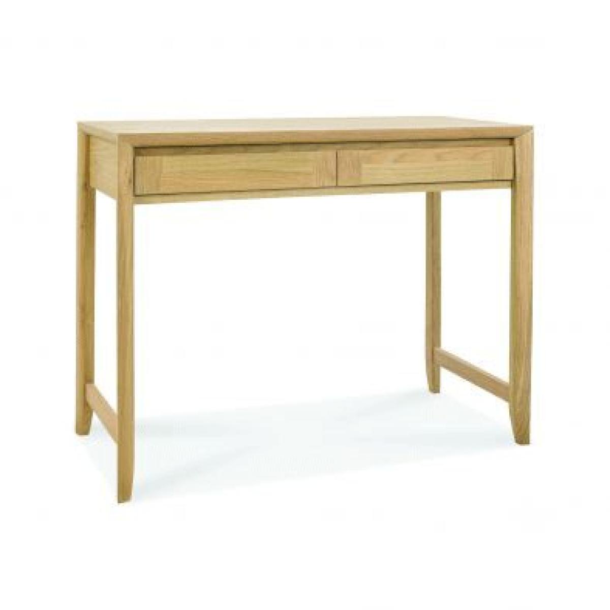 I’m a fan of this oak desk for its clean lines and warm timber tone - it sits well in Scandi, mid-century or contemporary schemes. Its neat footprint makes it ideal for a small study corner or as a hallway console; pair with a low-profile chair to keep the room feeling airy. Style it with a slim desk lamp and a tidy pencil pot, stack a couple of design books and introduce a small plant to soften the look. Don’t forget to use the shallow drawers for stationery and run cables under the top with adhesive clips to keep the surface clutter-free.