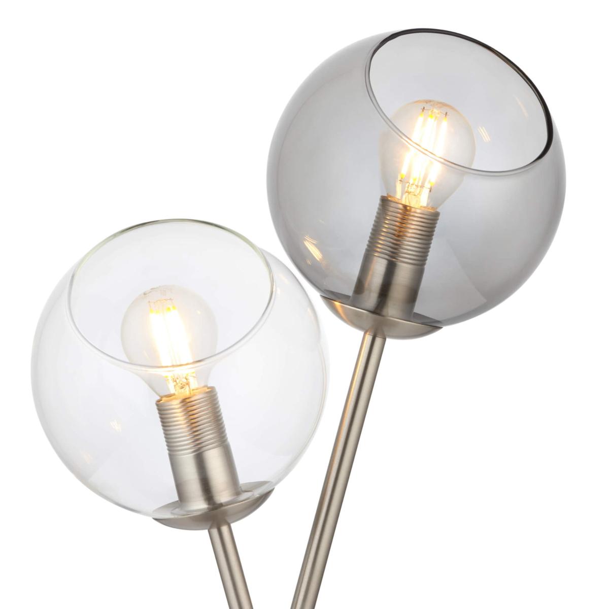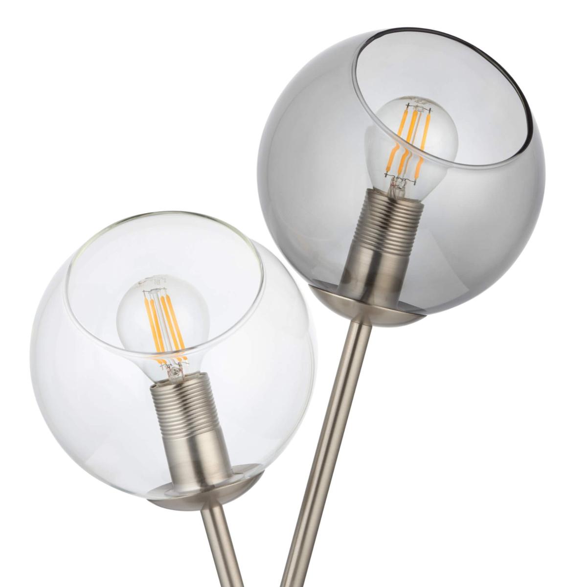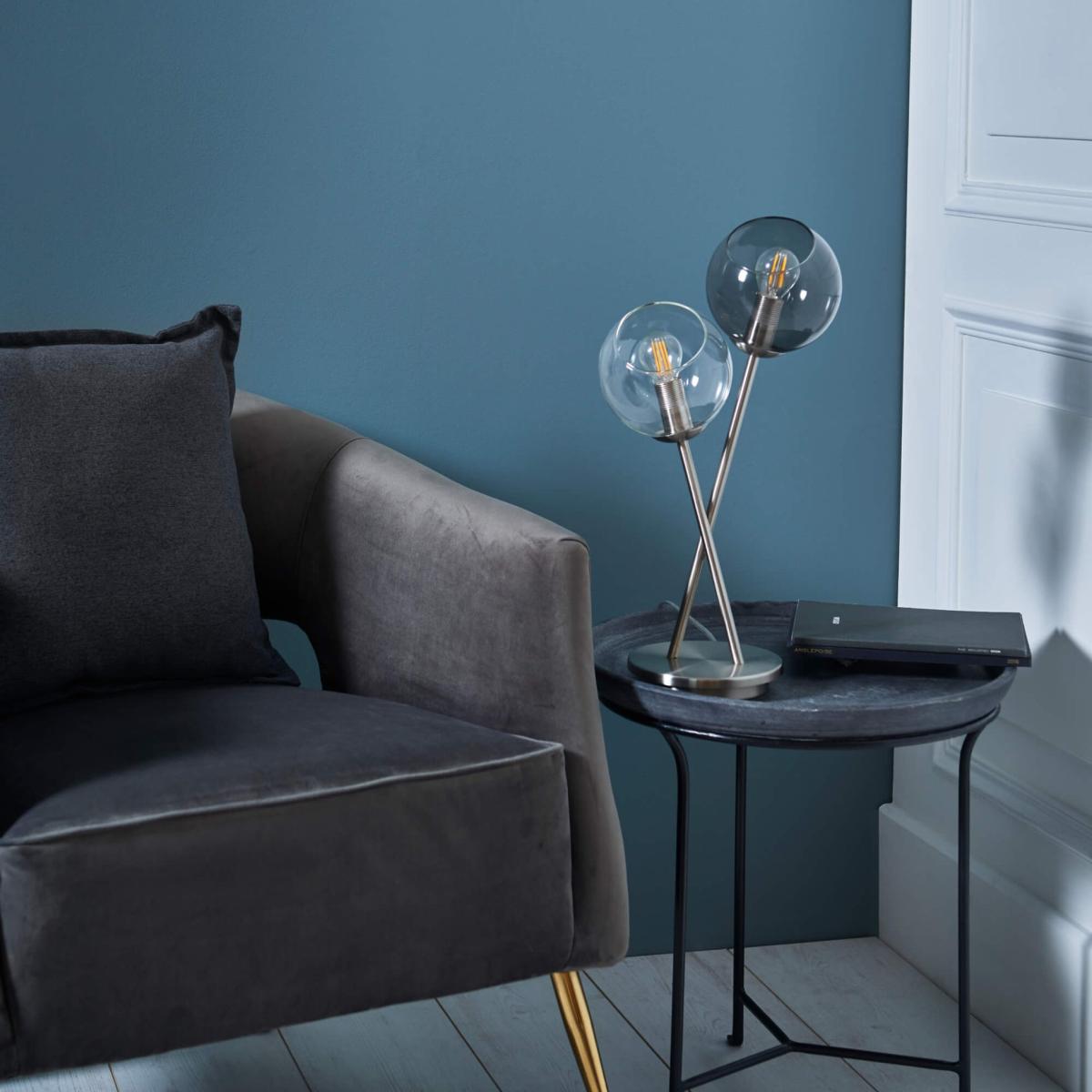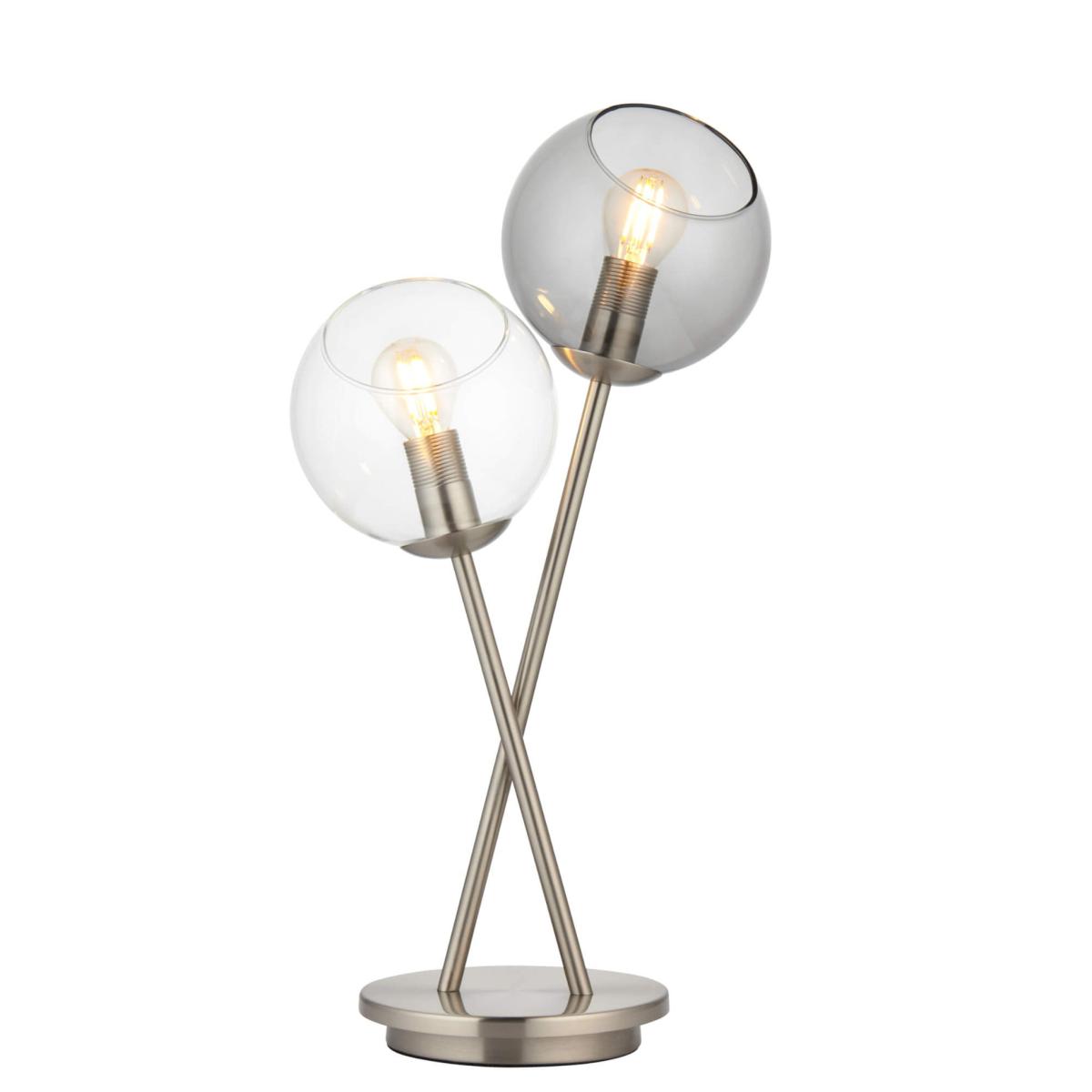 Stunningly simple but striking design contrasting a satin nickel body with smoked glass lampshades. The Branco Table Lamp can be easily placed as a finishing touch to complete a modern, classic aesthetic. Matching ceiling and floor lamp available. Stunningly simple but striking design contrasting a satin nickel body with smoked glass lampshades. The Branco Table Lamp can be easily placed as a finishing touch to complete a modern, classic aesthetic. Matching ceiling and floor lamp available.