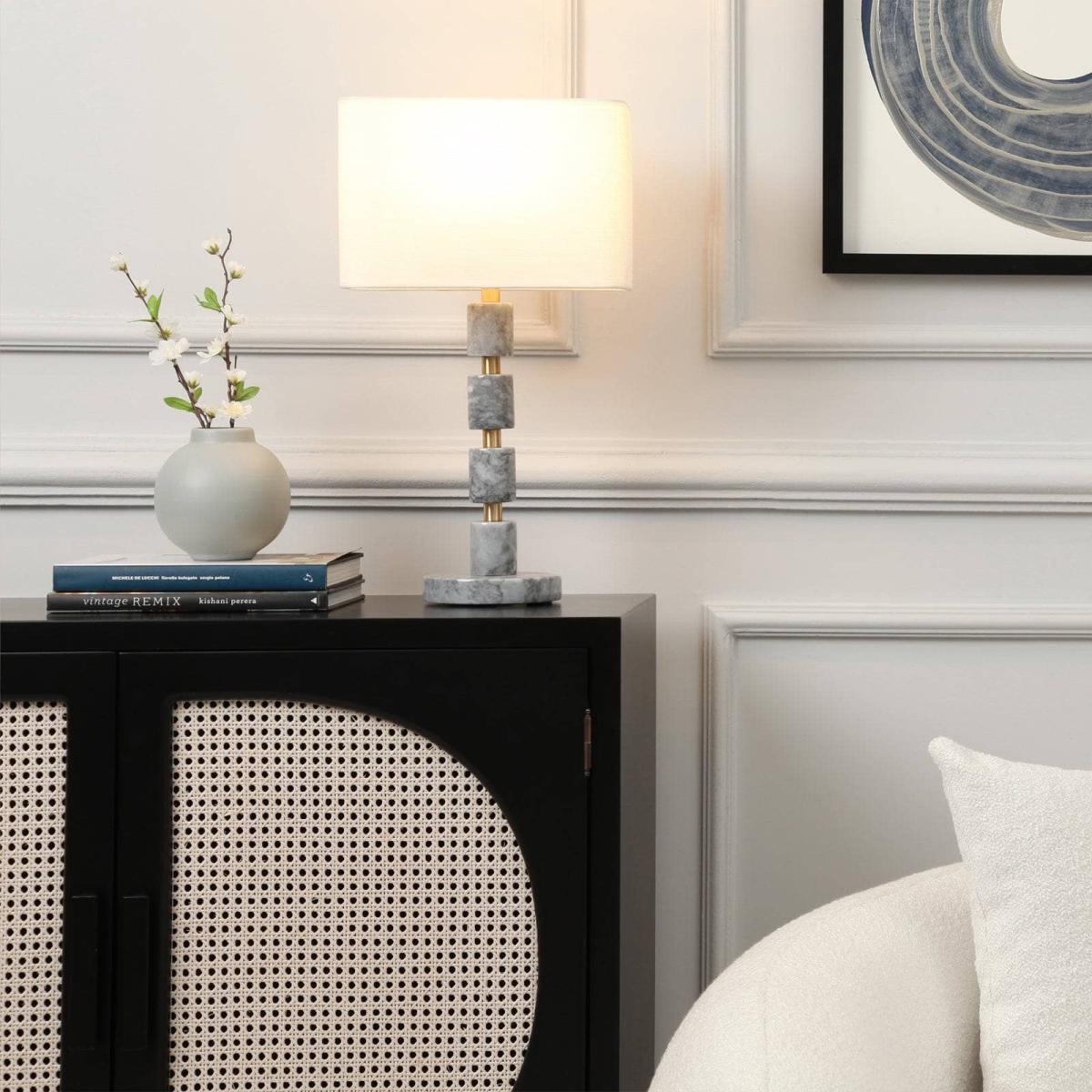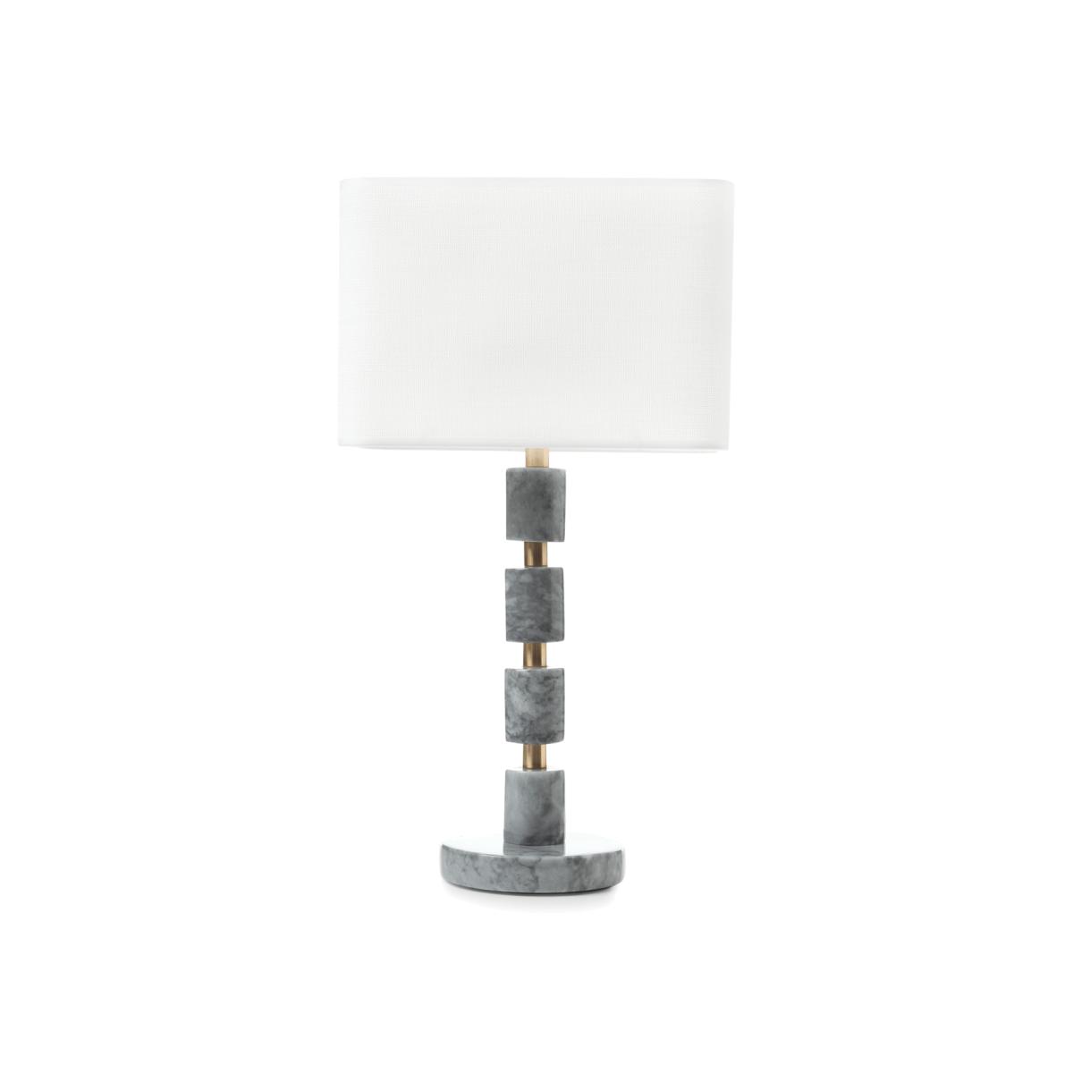 Our Brancusi marble table lamp was inspired by Art Deco and made by hand. It has a glamorous shape that is made up of a base and a square shade. This modern update on a classic desk lamp pairs equally well with super-sleek furniture as it does with a more traditional style. Handmade by skilled craftsmen, it's made from grey Afyon marble and comes with a linen lampshade. Marble, as a natural material, has veins that distinguish each piece of stone. This is not a flaw, but rather a part of the organic beauty of this lamp.