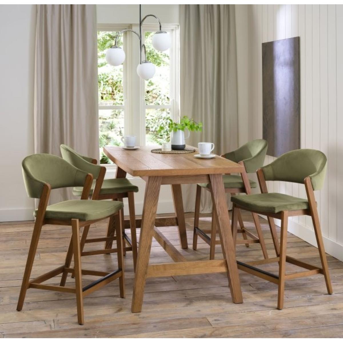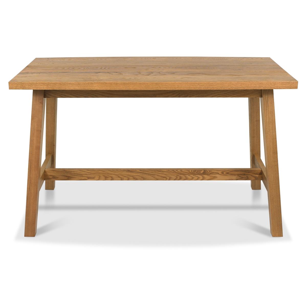 Brandon Rustic Oak Bar Table combines traditional forms with a contemporary edge by way of gently curved barrel shaped table tops and cabinet facias. The wire-brushed, saw-cut laminated oak table tops paired with solid ash "A" frame legs make a bold statement, while the rich oiled finish adds a touch of warmth to any dining space. This bar table features a rustic oak finish and is crafted from a combination of ash solid, rustic oak veneer, and beech solid materials. It comes with a 2-year manufacturer's guarantee and is manufactured in Vietnam. Features: Material - Solid Ash, Rustic Oak Veneer, Solid Beech Finish - Rustic Oak Self Assembly Required 2 Years Manufacturer Warranty Dimensions: Length 155cm Height 93cm Depth 80cm Please note: All screens vary in colour reproduction and whilst every effort has been made to display the colour as accurately as possible it is for guidance only.