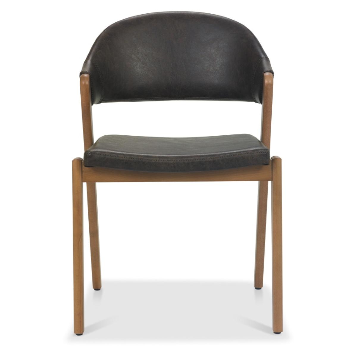 Here we have a pair of Dining Chairs that effortlessly blend the rugged appeal of Old West Vintage Brown leather with a striking mid-century flair. They are truly a sight to behold. These Brandon Rustic Dining Chairs are crafted from hard-wearing beech wood so they are certainly robust. You may be wondering how such materials could be used to achieve those elegantly curved backrests, the secret to that is moulded plywood which is upholstered with the same sumptuous faux leather. These are the perfect material choices for creating unique chairs that combine retro charm with contemporary style. The rich brown vintage leather fabric exudes a sense of history and character. It's as if these chairs have tales to tell, Imagine gathering around the rustic dining table from the Brandon Furniture range, as you sink into these inviting chairs. The collection offers a harmonious blend of styles that effortlessly bridges the gap between past and present. So, if you're looking to bring a new lease of life to your dining room or kitchen, these rustic dining chairs with their old west vintage brown leather upholstery and retro-inspired form are the perfect choice. Don’t forget to check out the matching items from this impressive range too. Features: Pair of upholstered dining chairs. Mid-century style with a contemporary retro edge. Fabric - Ivory Bonded Leather Beech wood legs & frames with moulded plywood curved backs. Rich oiled rustic oak finish. Assembled. 2 year manufacturers guarantee. Dimensions: Height: 82cm Width: 56cm Depth: 58cm Seat Height: 49cm Seat depth 49cm Please note: All screens vary in colour reproduction and whilst every effort has been made to display the colour as accurately as possible it is for guidance only.