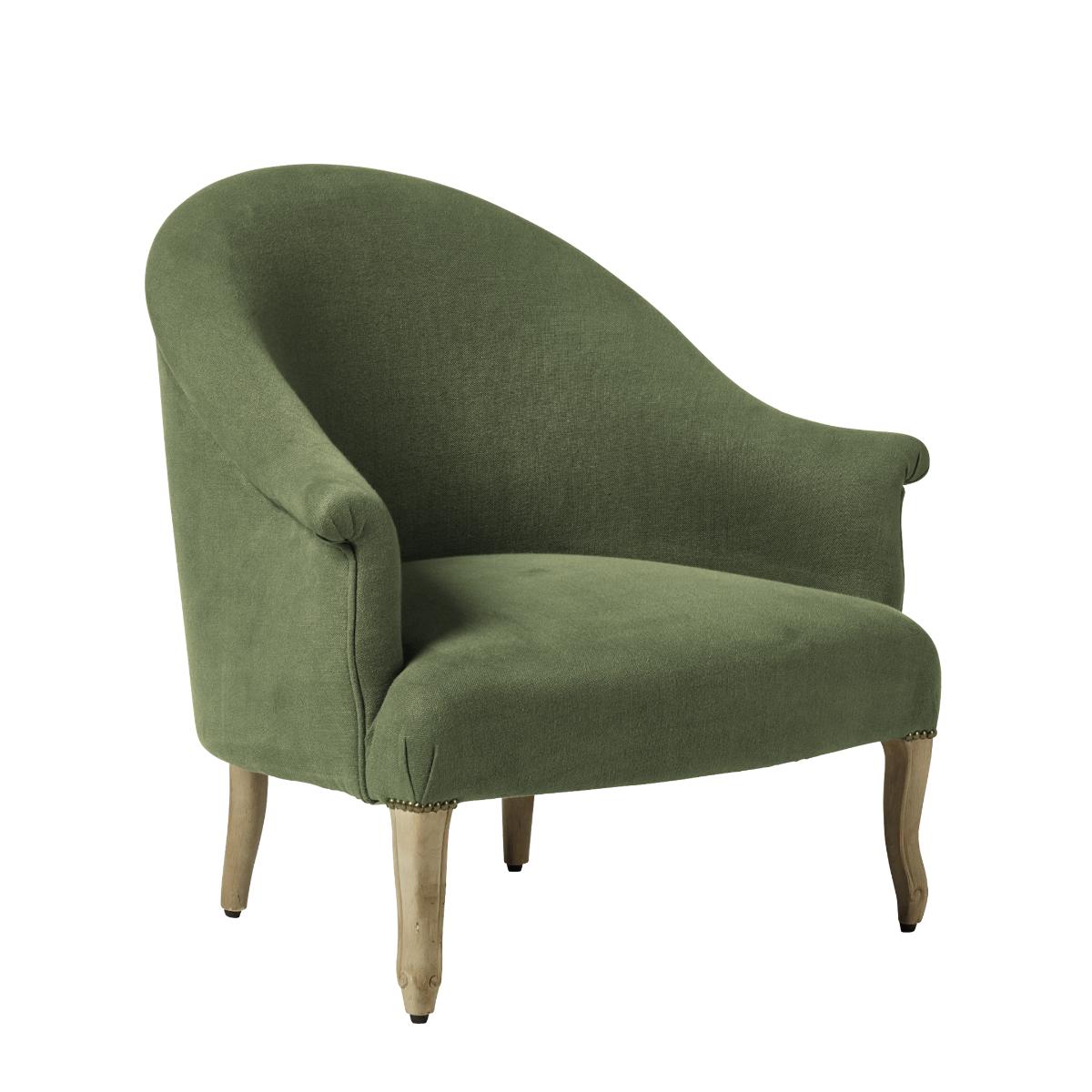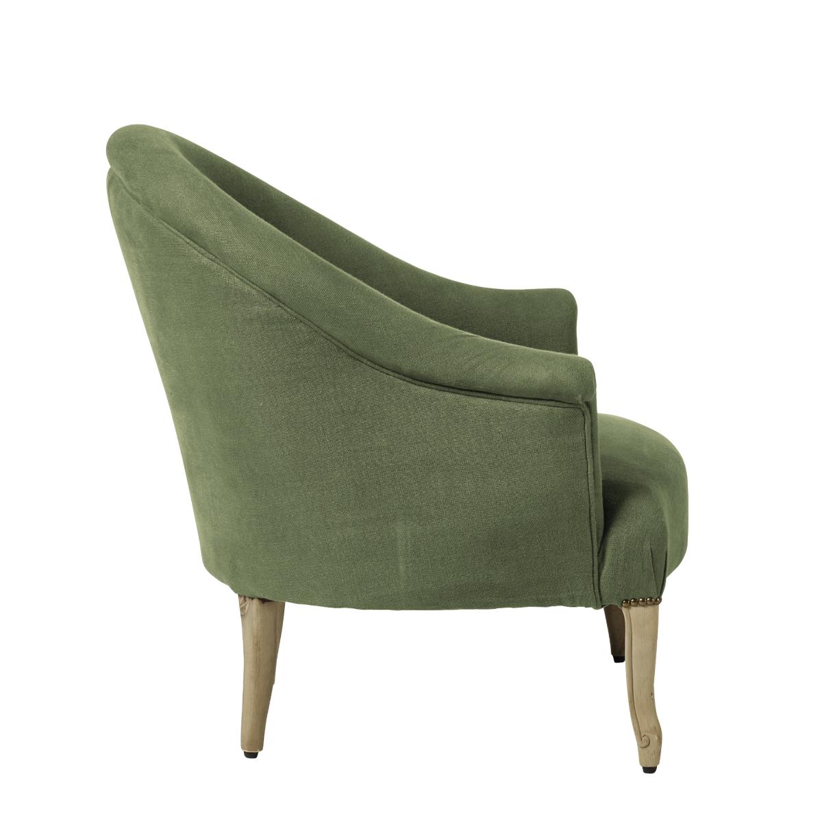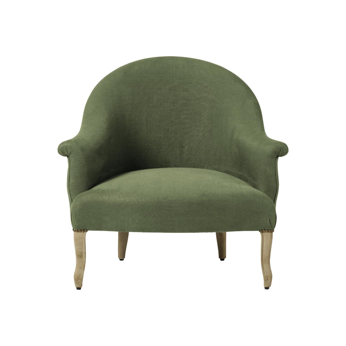 The Brantwood may resemble a simple parlour chair, but look closely and you'll notice the fine craftsmanship that goes into making this deep seat's sweeping curves. Pay special attention to the turn of the arms, which complements the armchair's grooved, sabre-style legs (topped with neat rows of brass-coloured studs). Finished in sage-green linen, inspired by the natural world, you can sit in comfort while feeling a connection to the great outdoors.