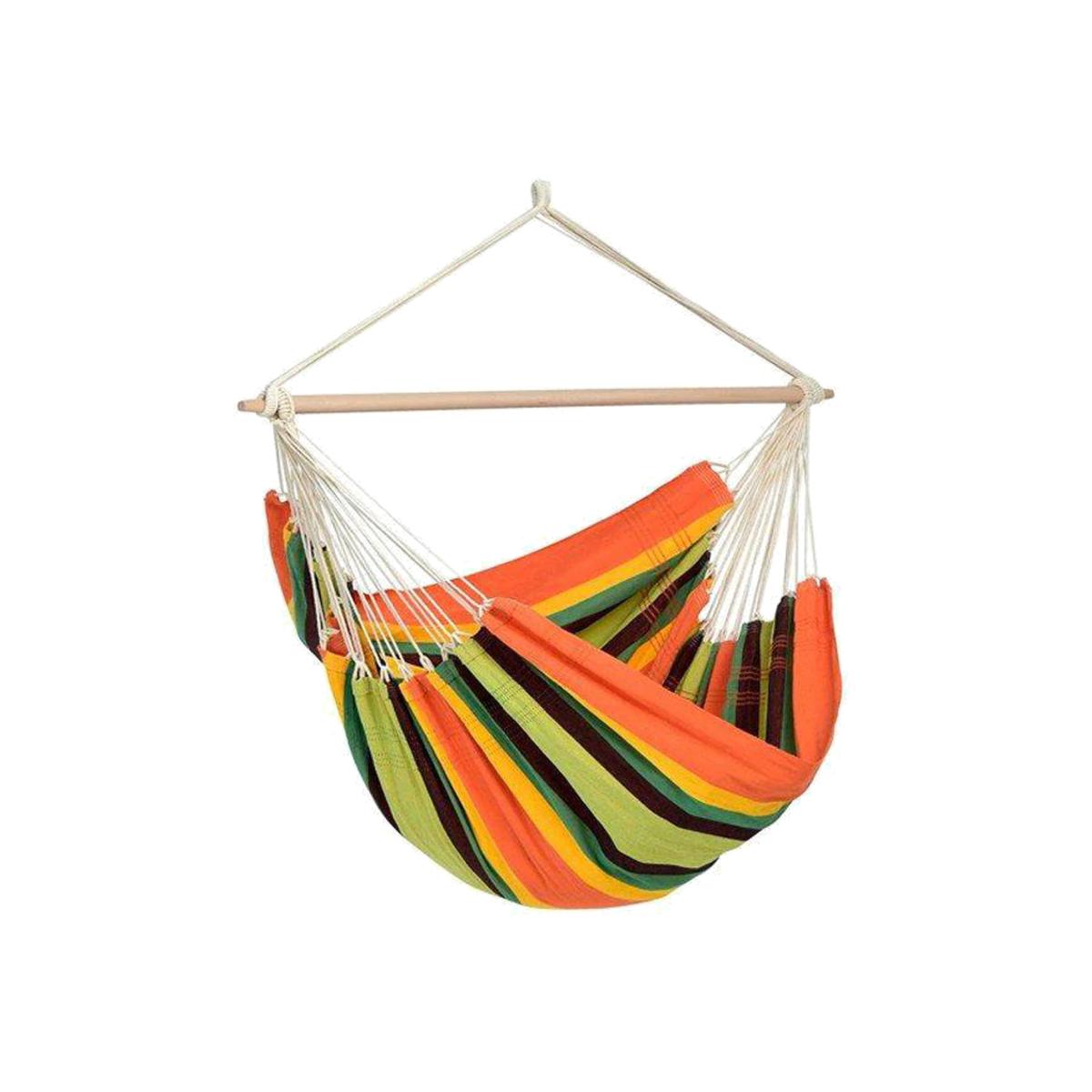 The Brazil hammock chair makes a stylish addition to any living room area. Its beige and cream stripes are neutral and fit any style. The hammock chair is also easy to take outside and relax in the sunshine! The Brasil Hammock Chair is supported by a sturdy piece of beech wood, and with extra thick woven cotton fabric, stitched at the edges. It is incredibly strong (in fact, it will hold weights of up to 150kg) and it's very comfortable.