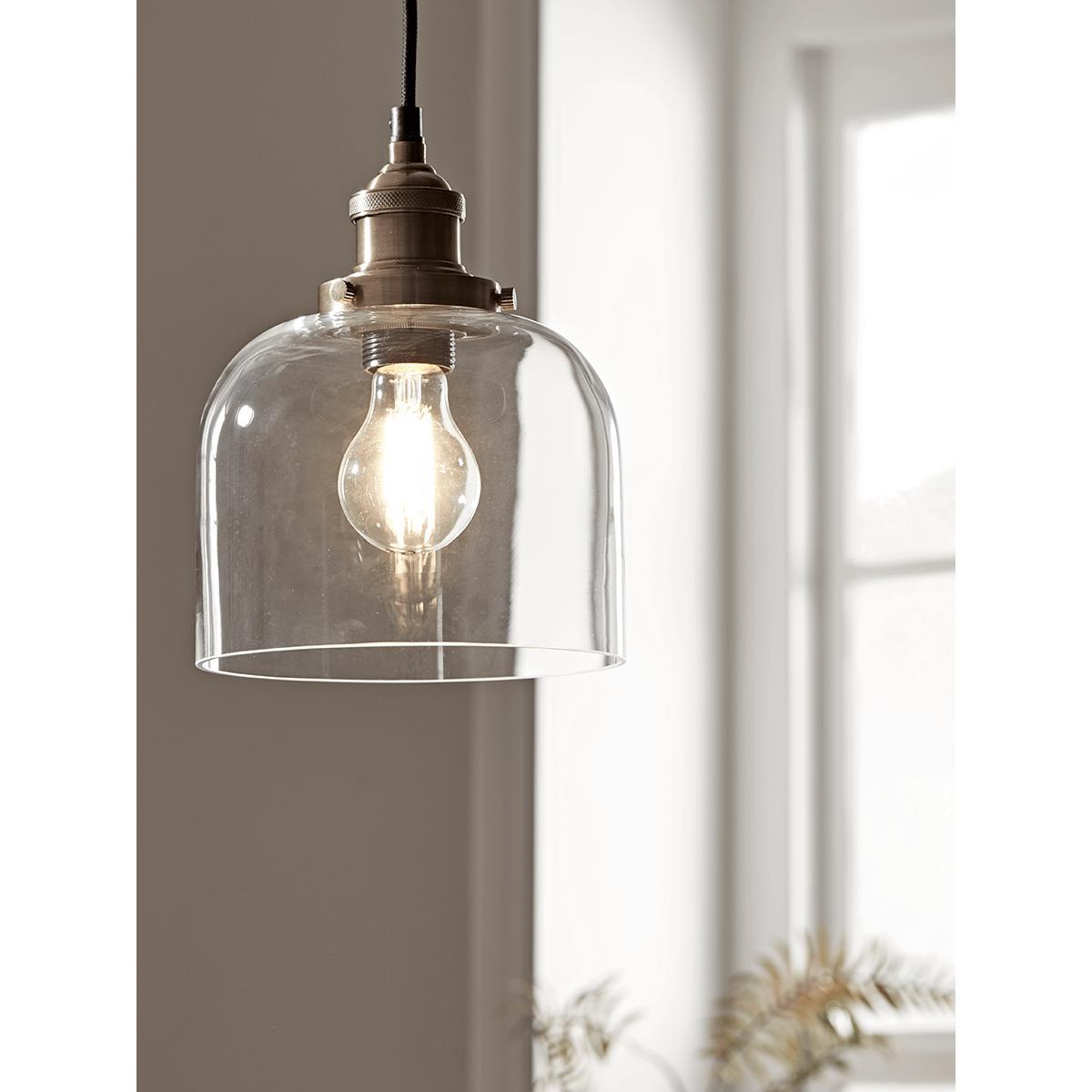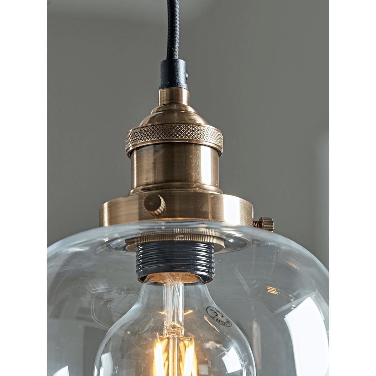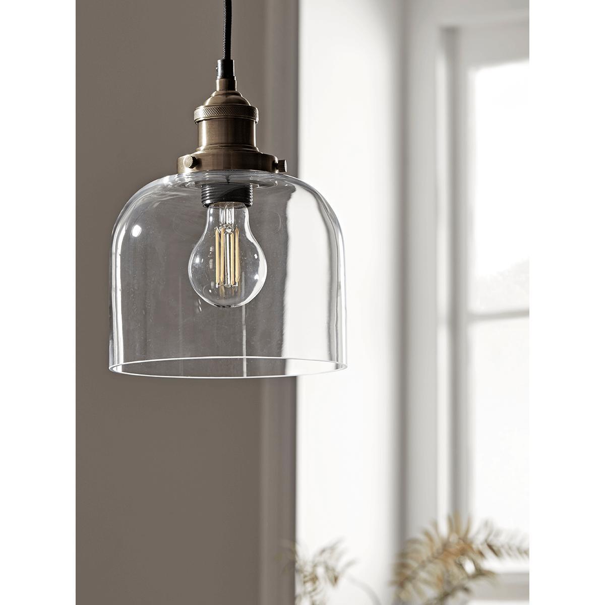With a clear shade and brass fittings, our glass pendant will add a touch of the industrial to your living space. The Antique Brass detailing adds warmth to any interior, while the domed glass shade will illuminate your space.