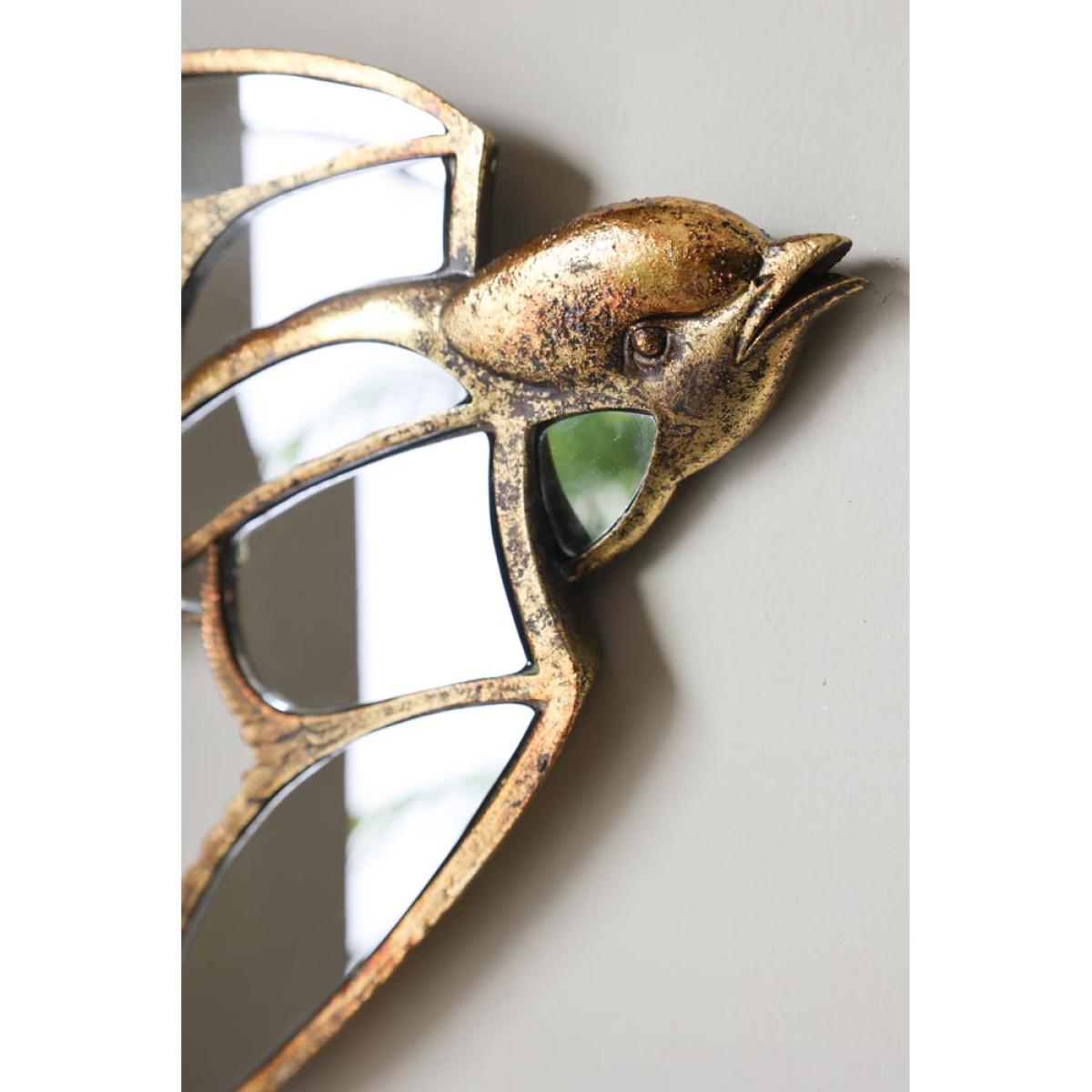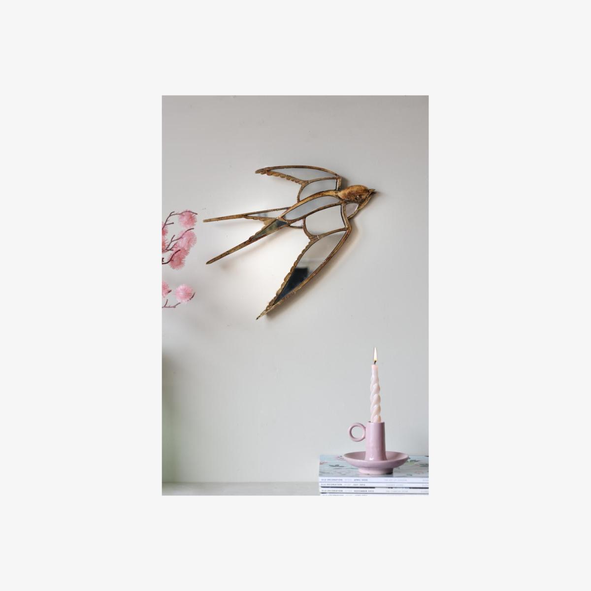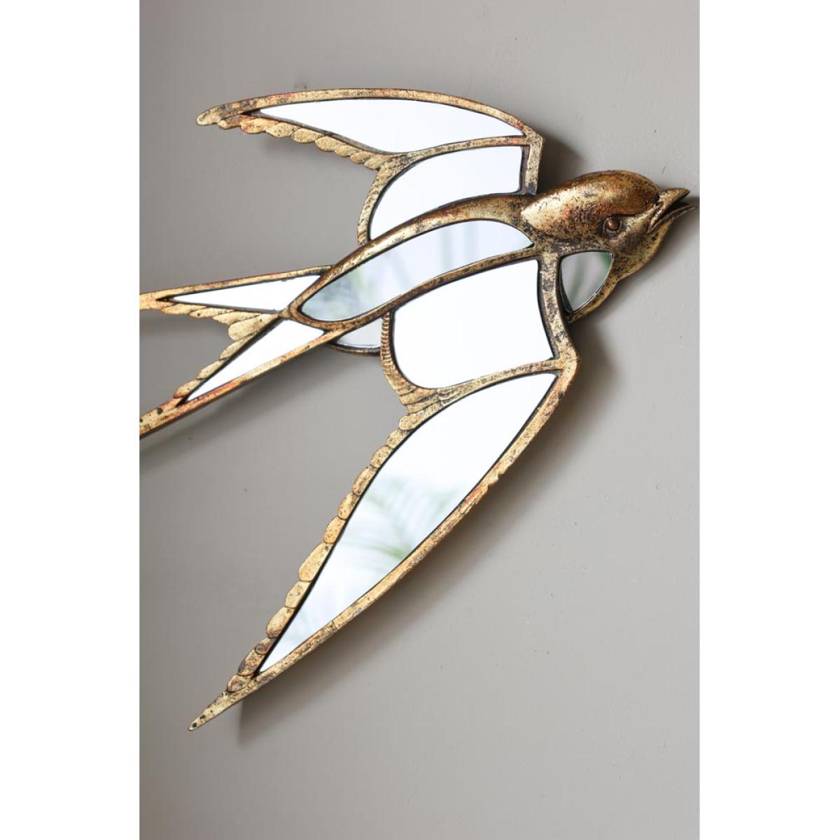 About The Brass & Mirror Swallow Wall Decoration A fabulous piece of wall art, the Brass & Mirror Swallow Wall Decoration promises to make an elegant statement on your walls. Made from polyresin with an antique brass finish, the swallow features beautiful attention to detail and is designed with mirrored panels that will catch the light. Measuring H331cm x W39cm x D3cm, this piece features fixings on the back to hang on a wall. Why We Think You’ll Love The Gold Metal Wall Art Swallow Introducing intrigue to your walls, this is unique wall art design is a great alternative to art prints when it comes to celebrating nature in your home. Designed in the shape of a swallow, the scalloped wing details and aged brass finish give this piece a vintage feel that will blend right in amongst the rest of your treasures. Plus, the mirrored panels will reflect light back into the room and create a feeling of space in even the smallest of spaces. How To Style The Brass & Mirror Swallow Wall Art The Brass & Mirror Swallow Wall Decoration looks stunning styled solo on the wall; however, we love the idea of adding this design to a wider display. So, why not try hanging this amongst a few favourite prints and pieces from your art collection for a unique take on the classic gallery wall. Or, introduce the gold metal wall art design amongst vintage style mirrors, large or small to create a gorgeous wall of glass.