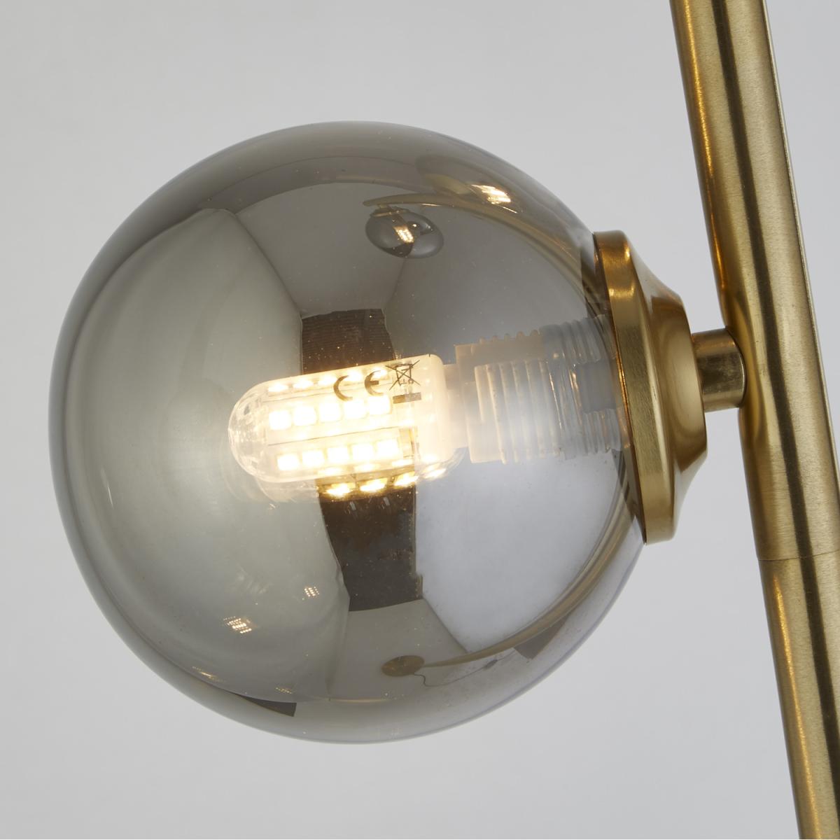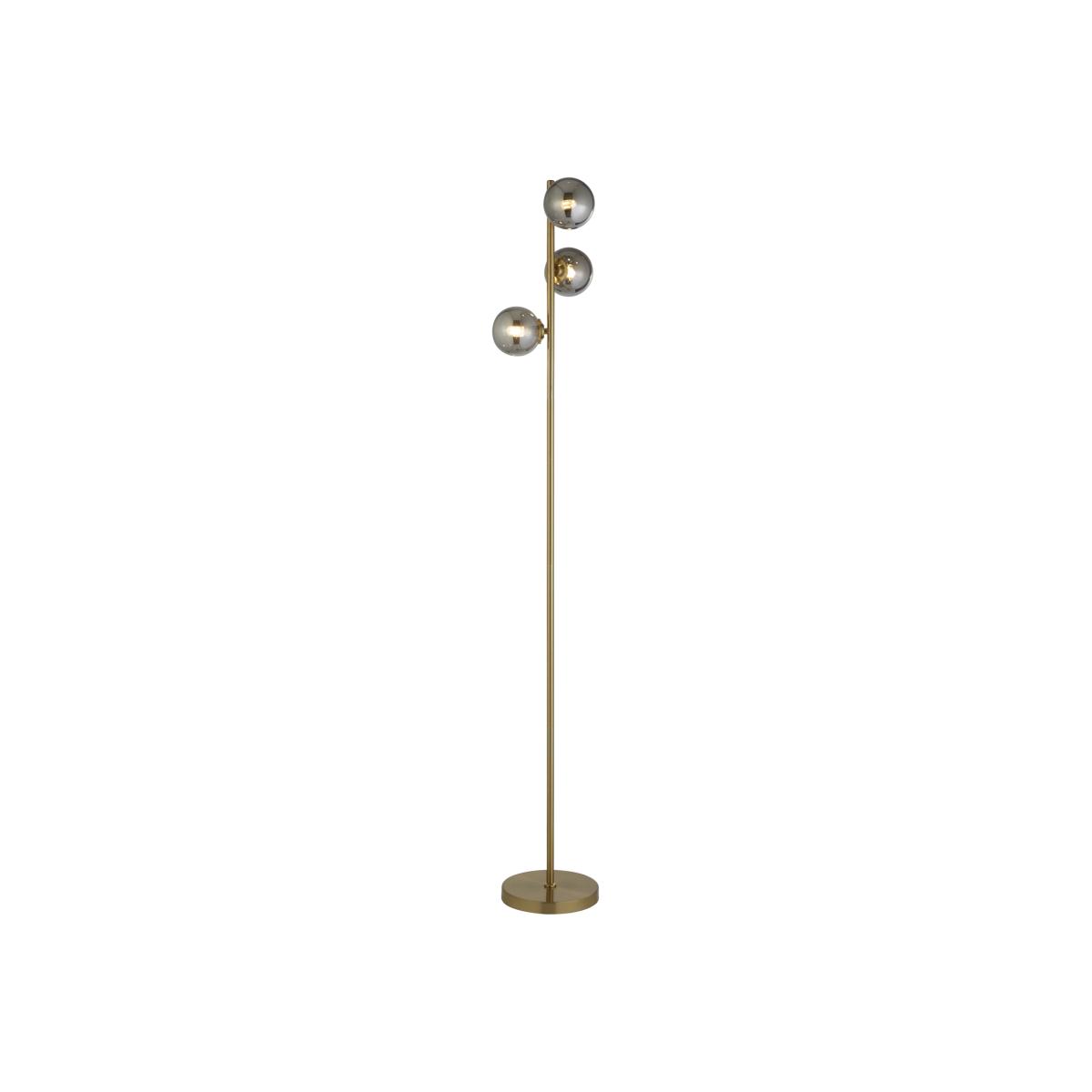 Add a touch of retro elegance to your space with this 3 light multi head floor lamp Featuring a brass frame with smoke glass shades this floor lamp will fit seamlessly into any home space Display on its own or as a set with the matching pieces available